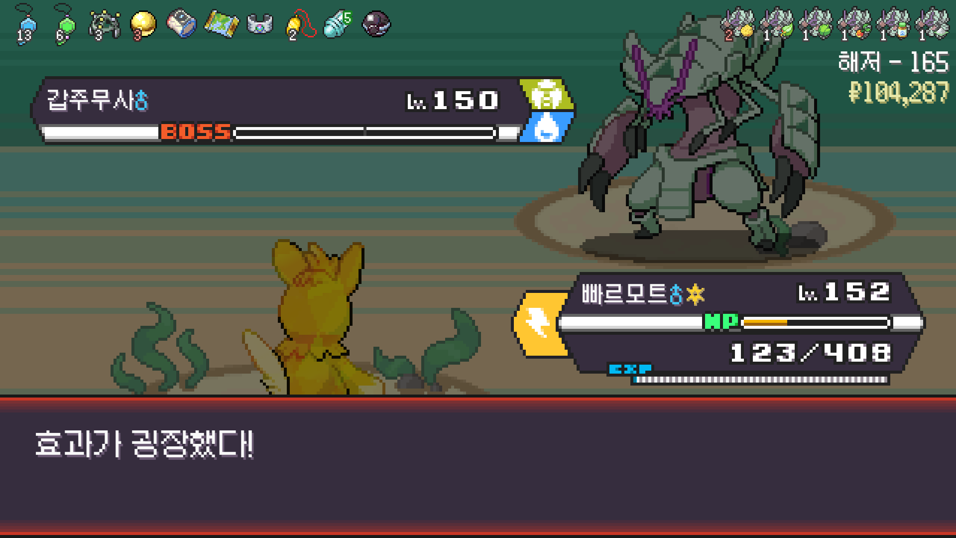 죽창 빠르모트까지 잡아서 6마리 스쿼드 완성