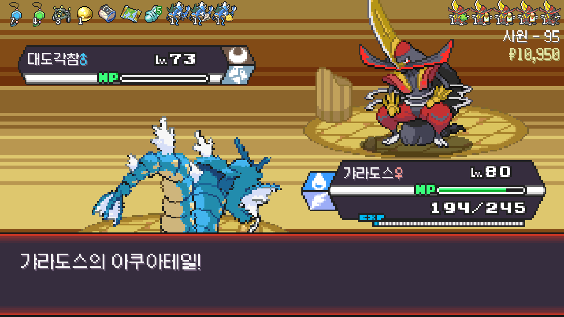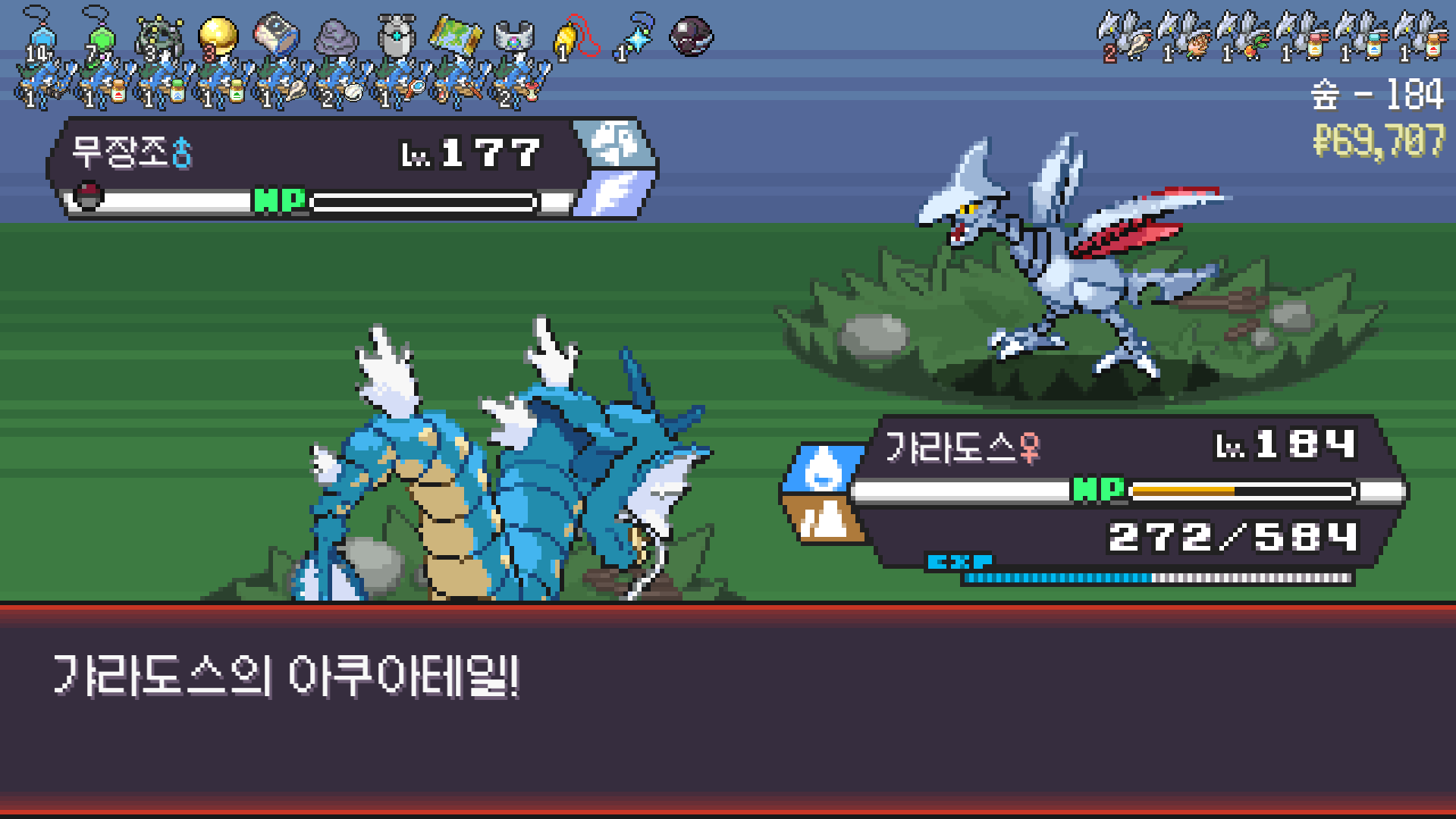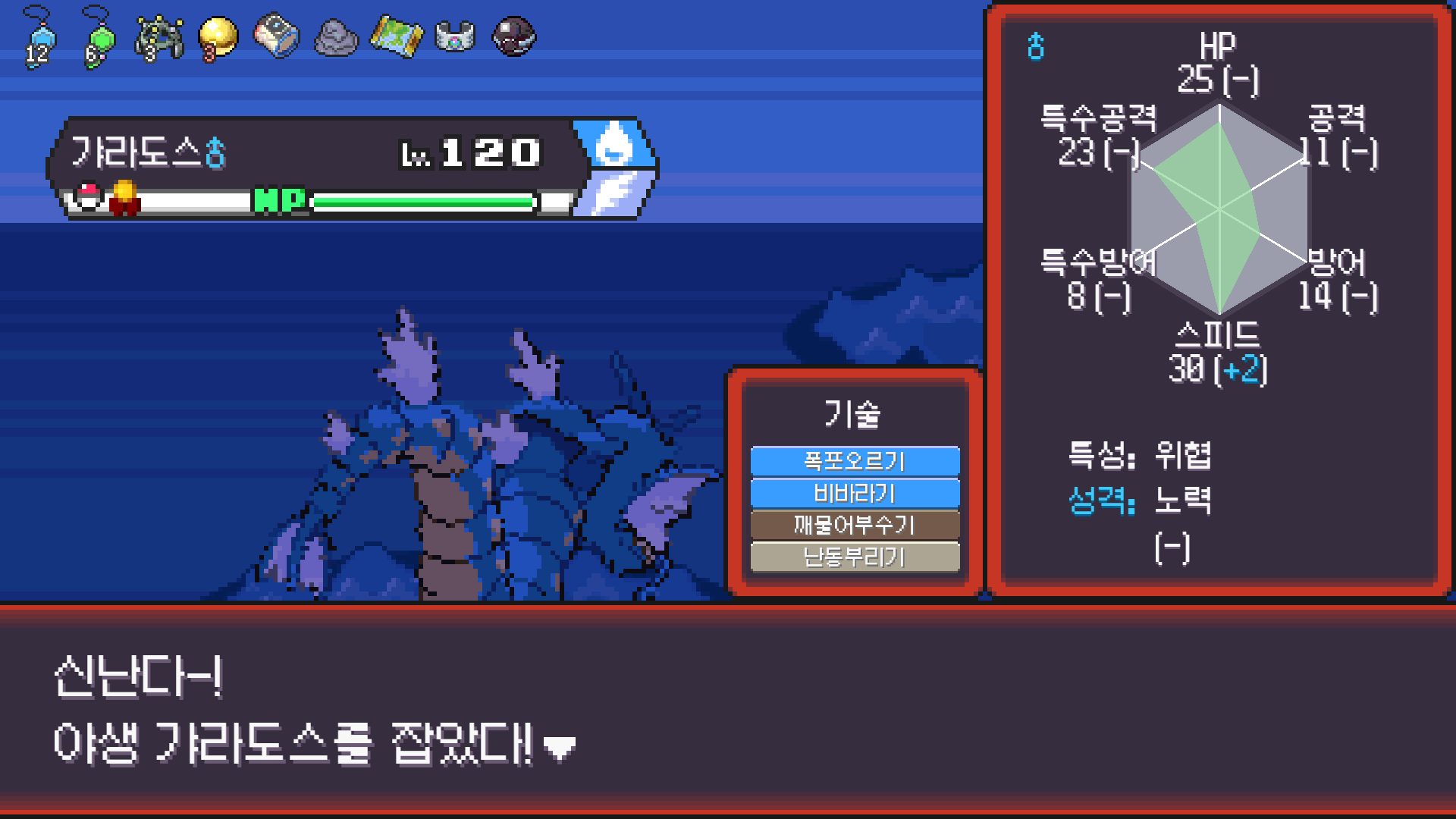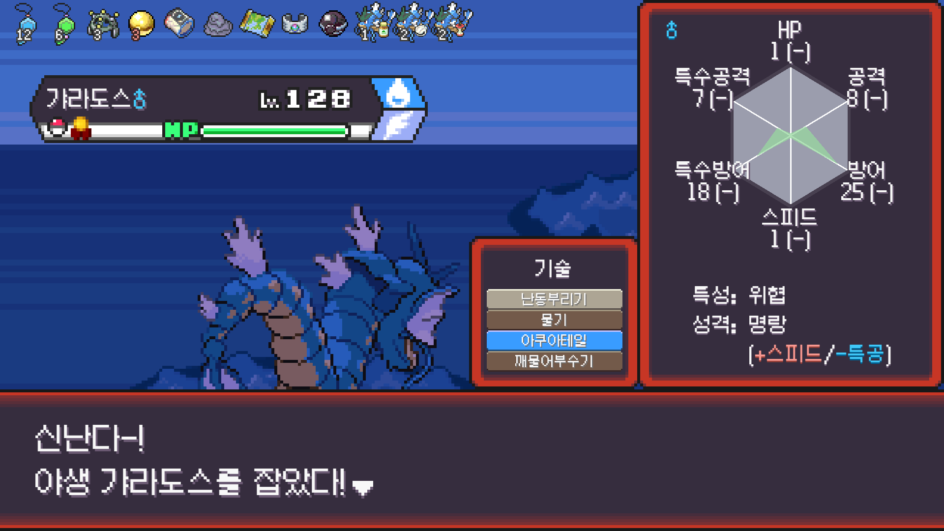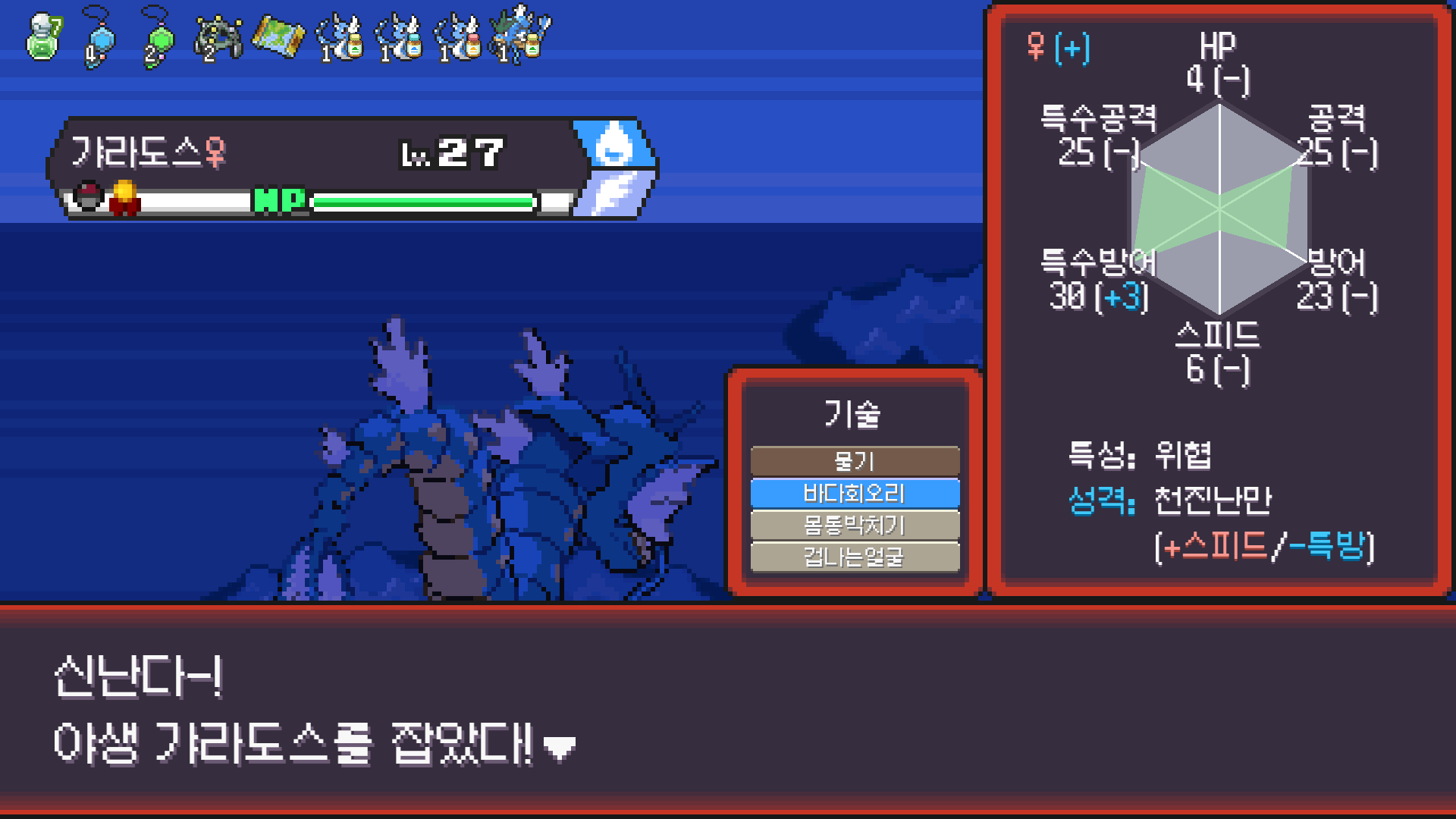 한 마리 더잡아서 물/비행, 물/땅, 물/악 3종류가 된 갸라도스