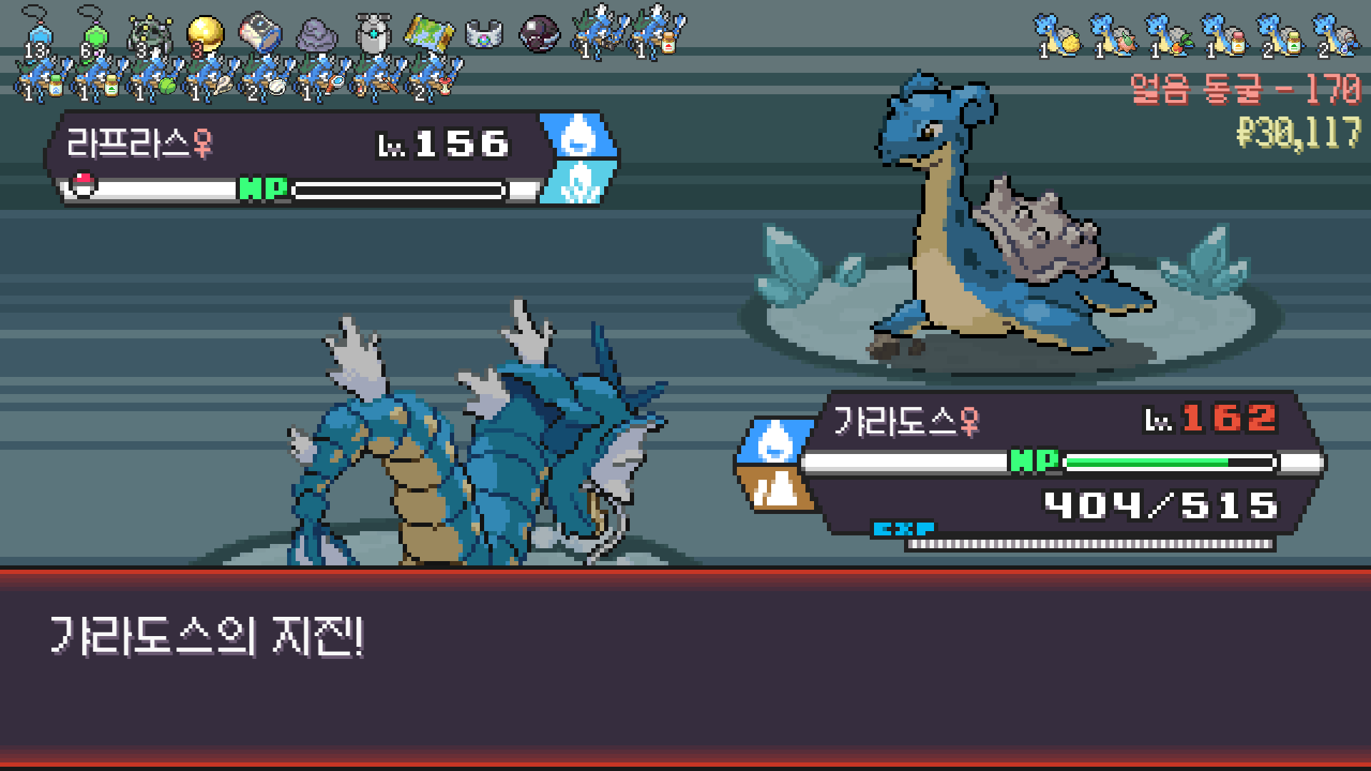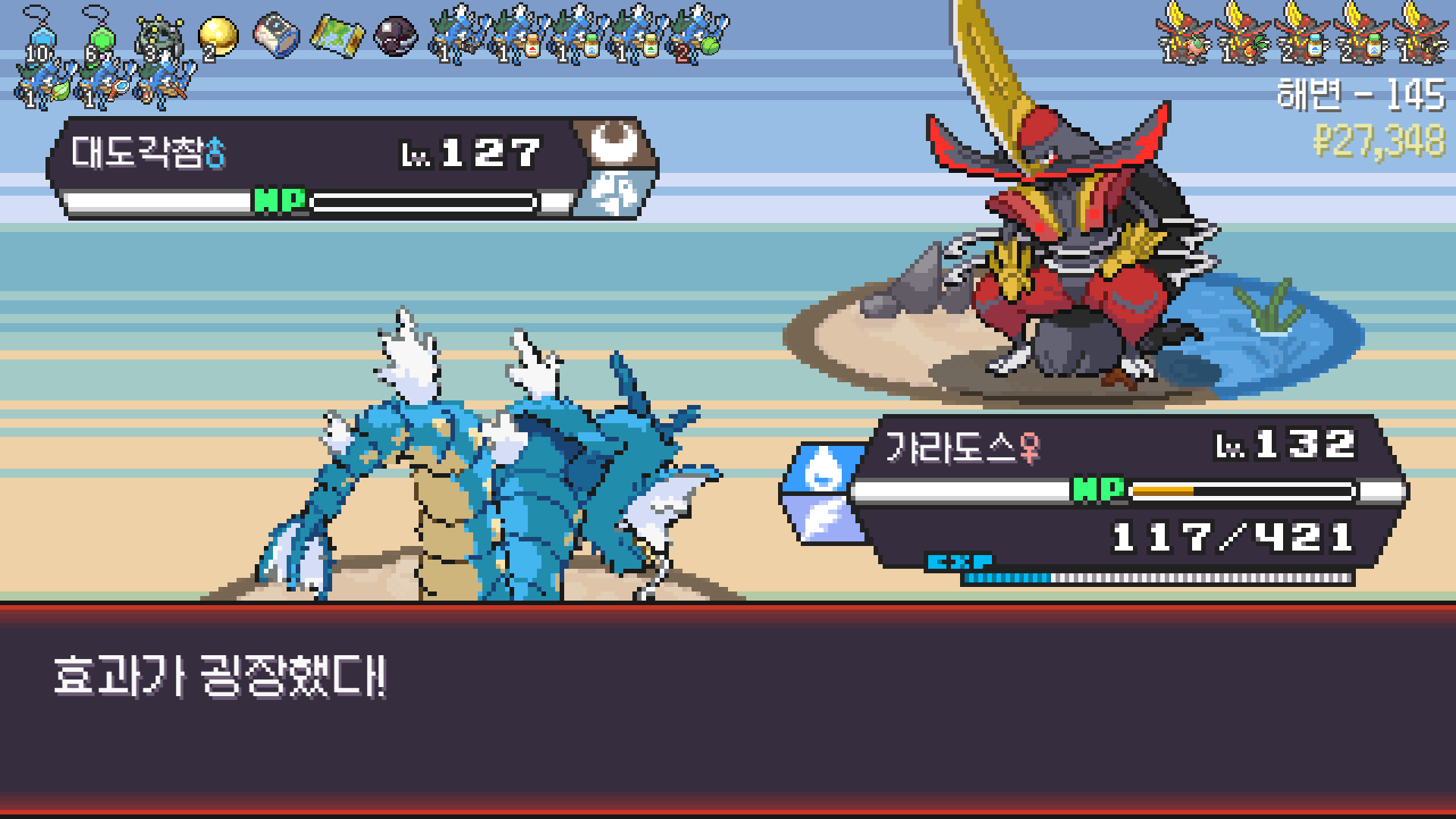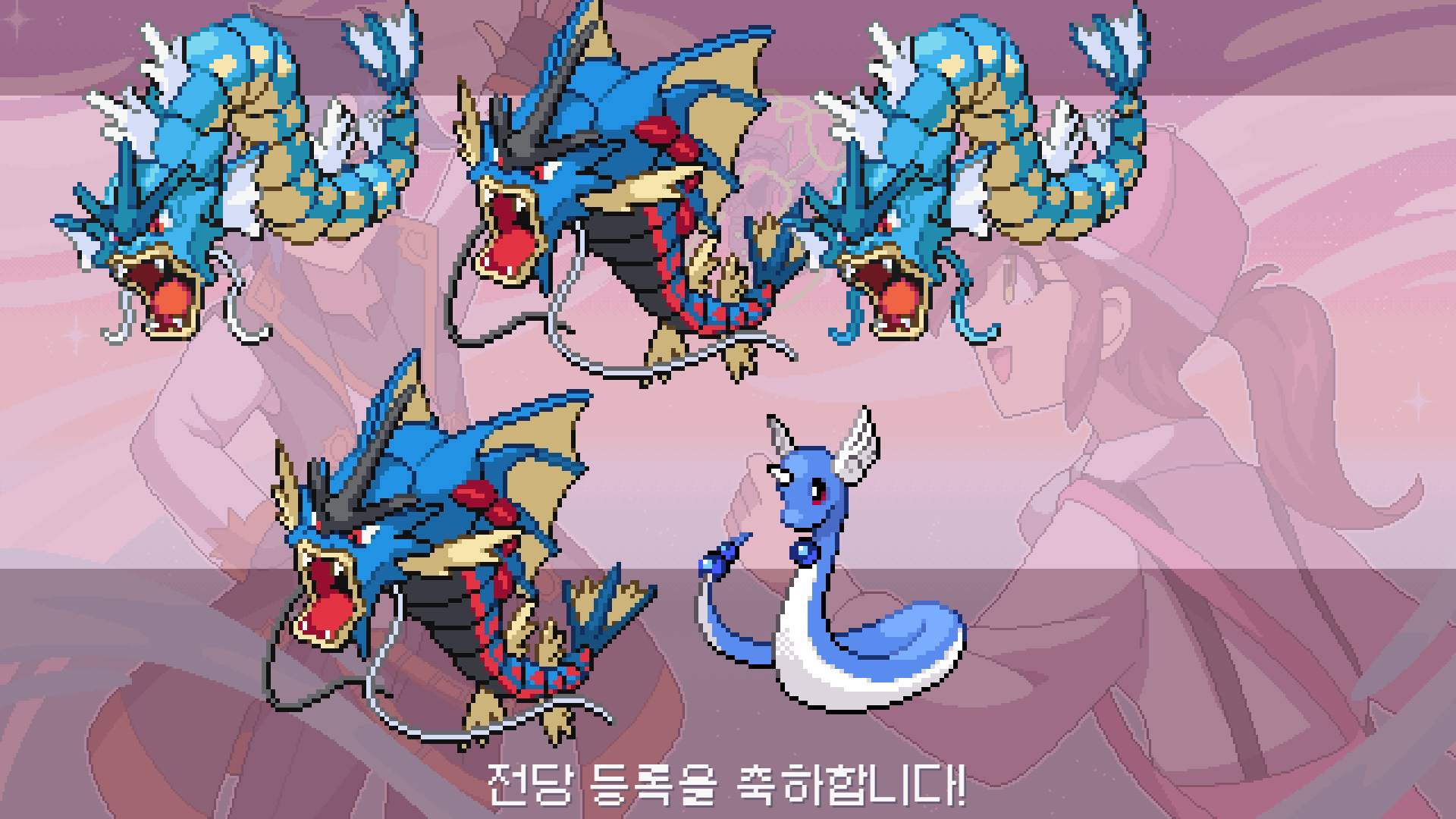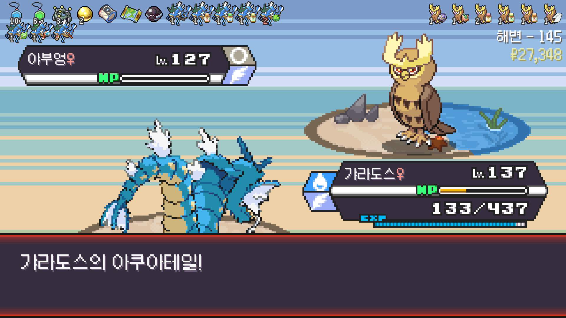 한 마리 더잡아서 물/비행, 물/땅, 물/악 3종류가 된 갸라도스