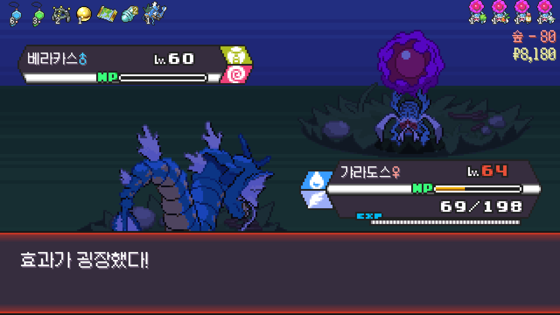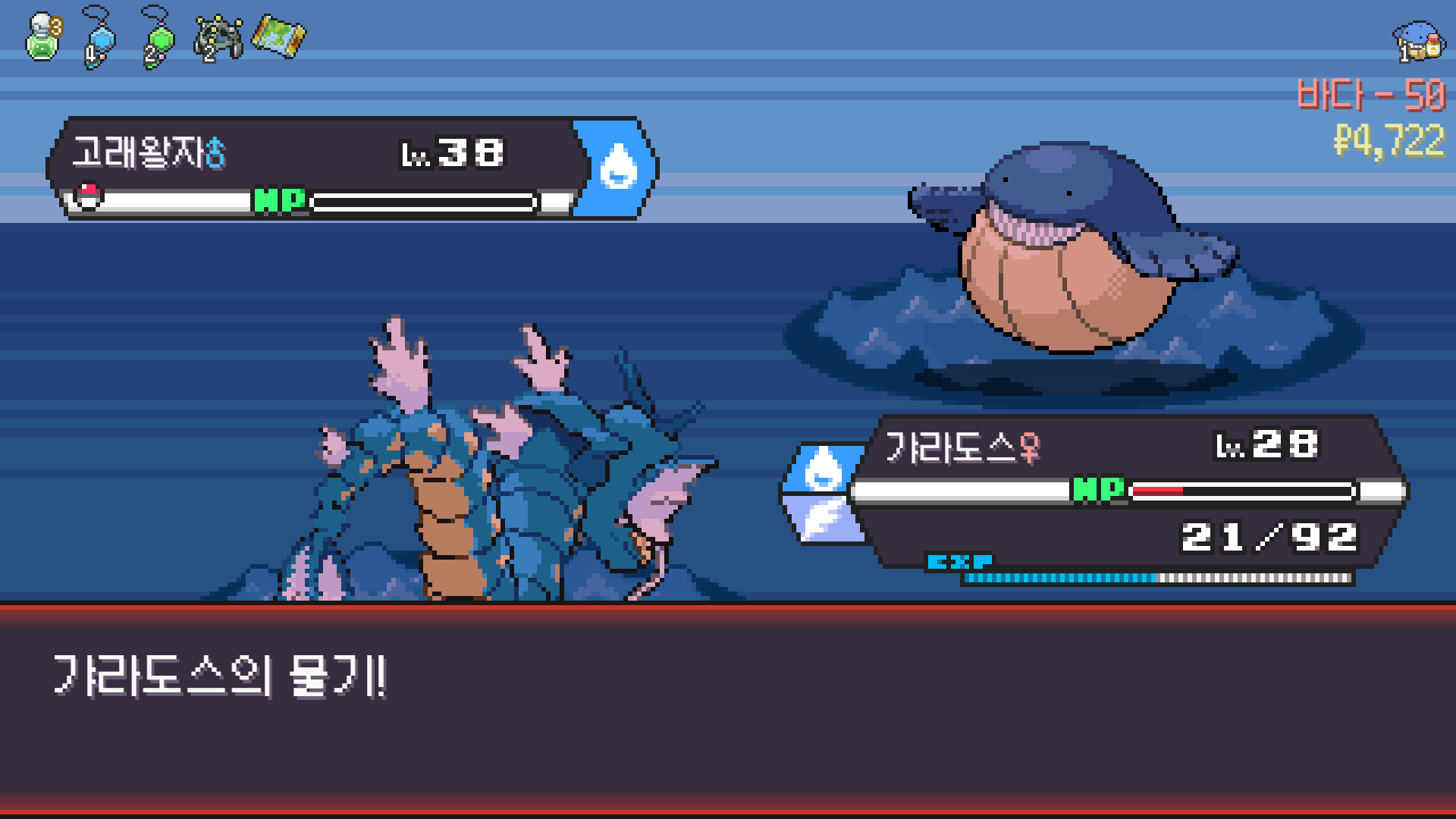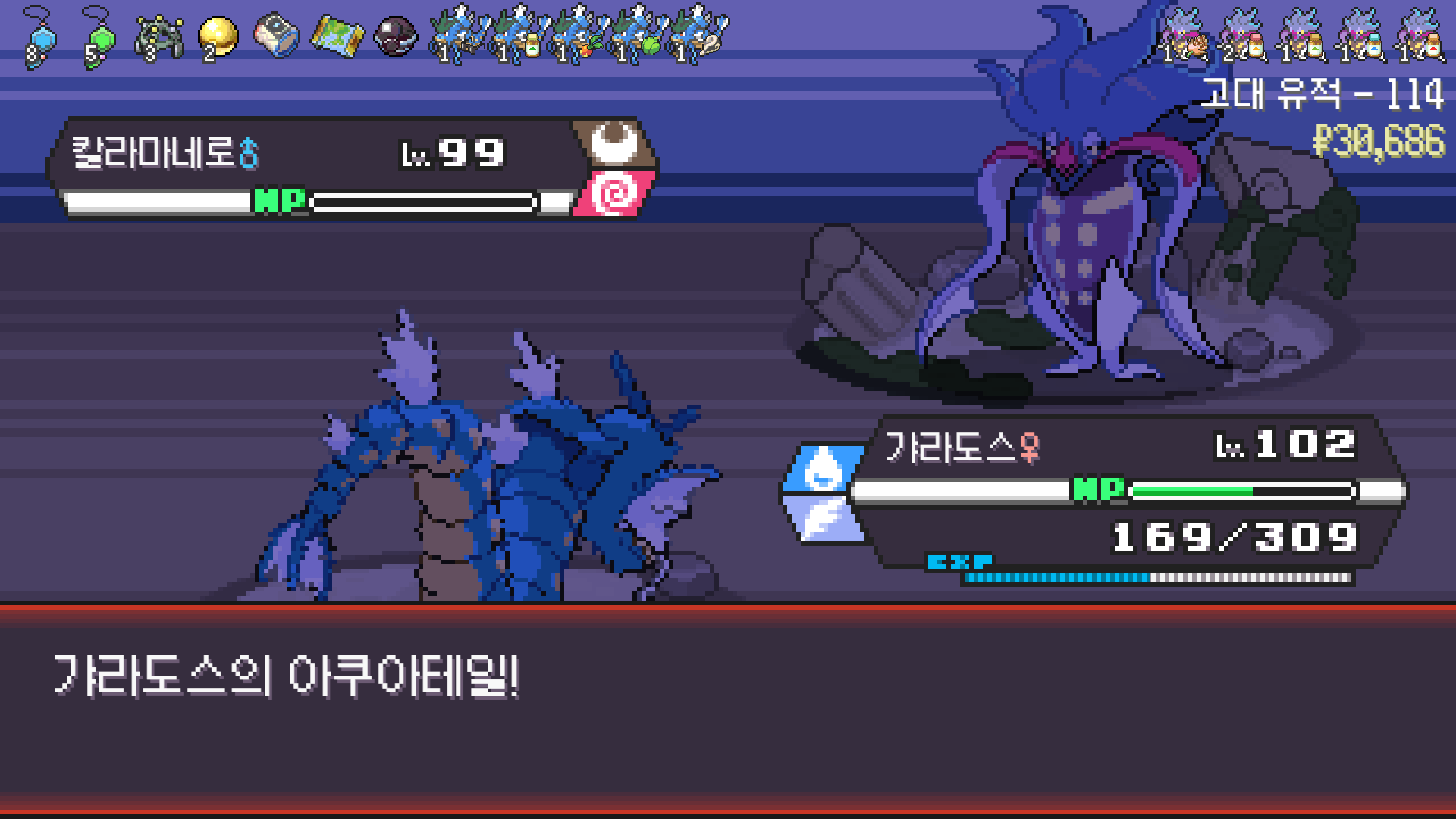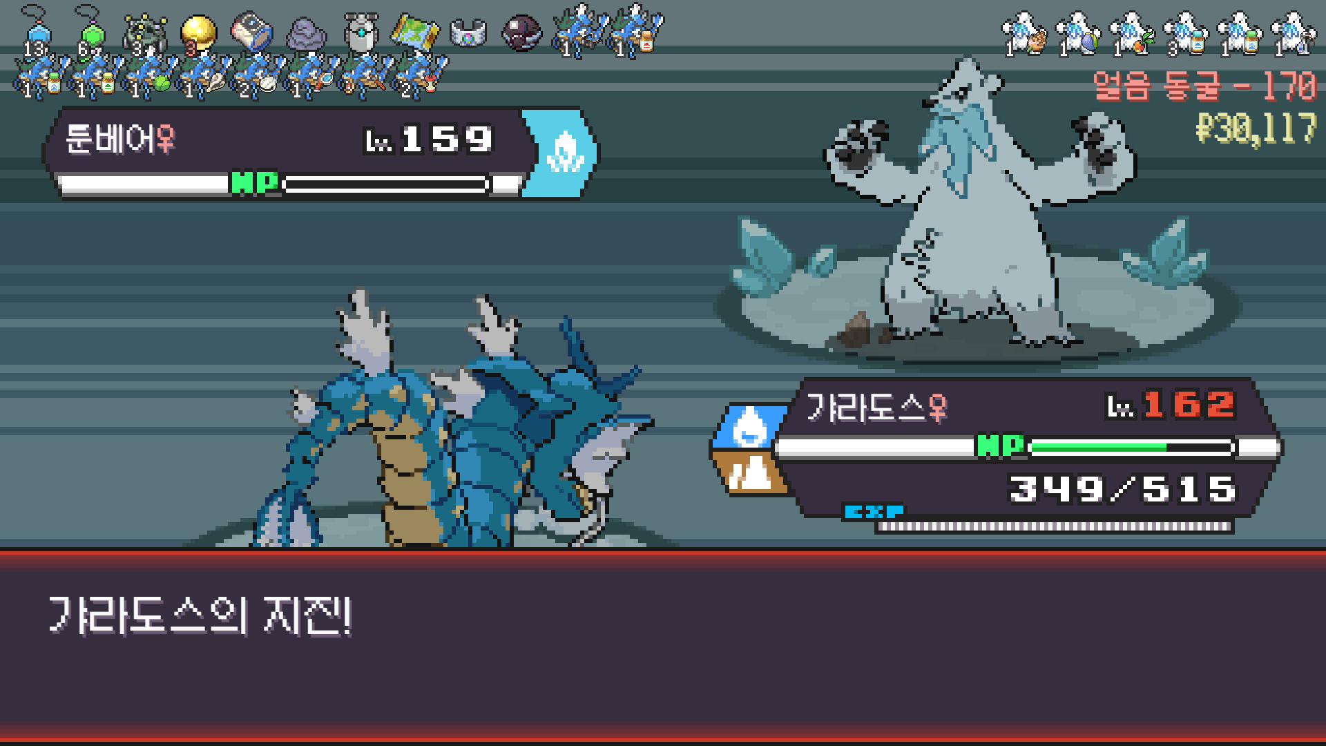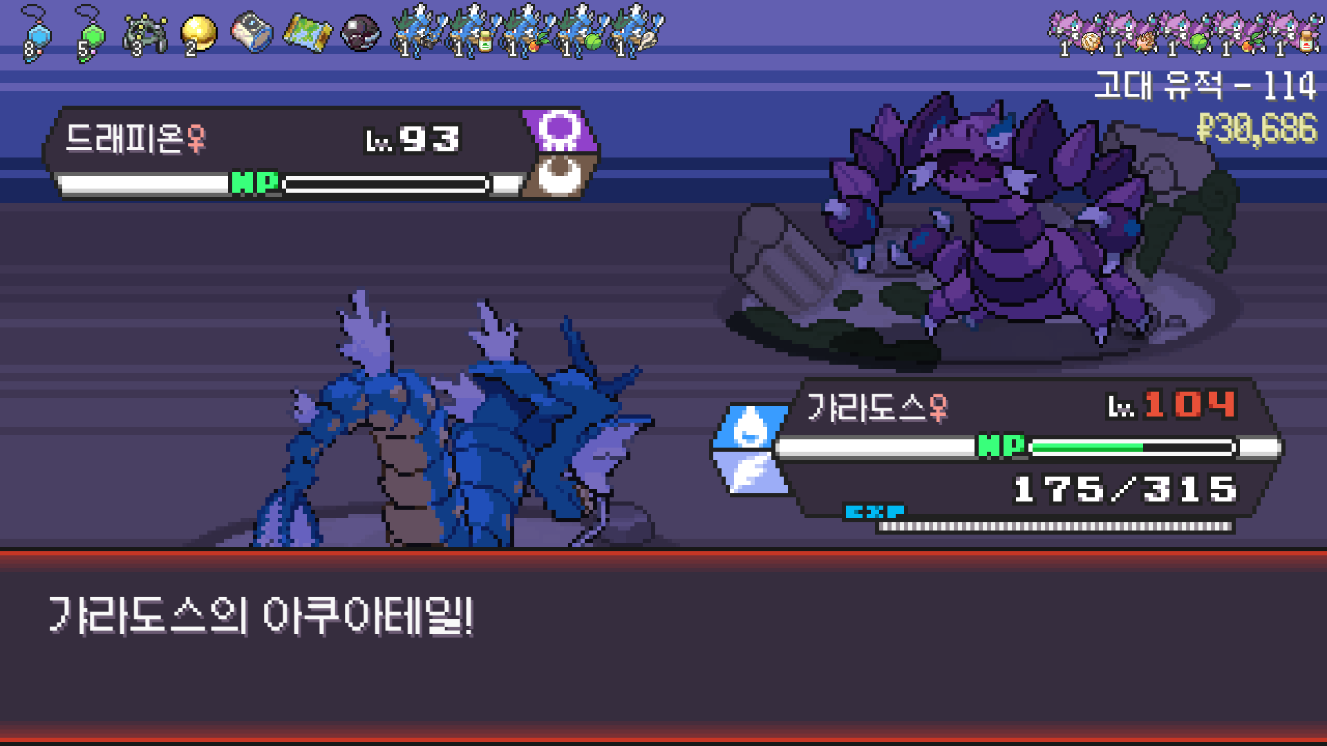 한 마리 더잡아서 물/비행, 물/땅, 물/악 3종류가 된 갸라도스