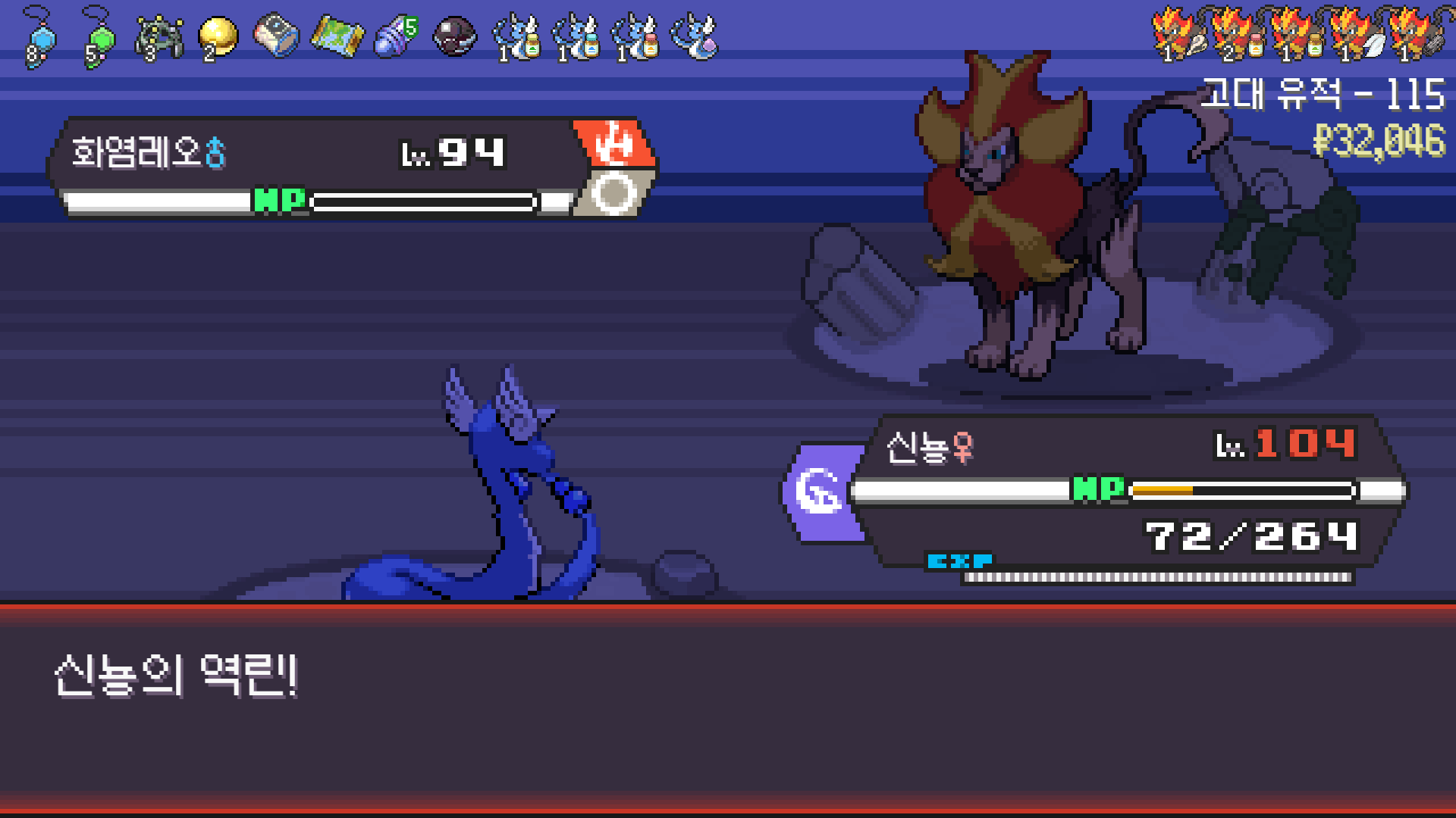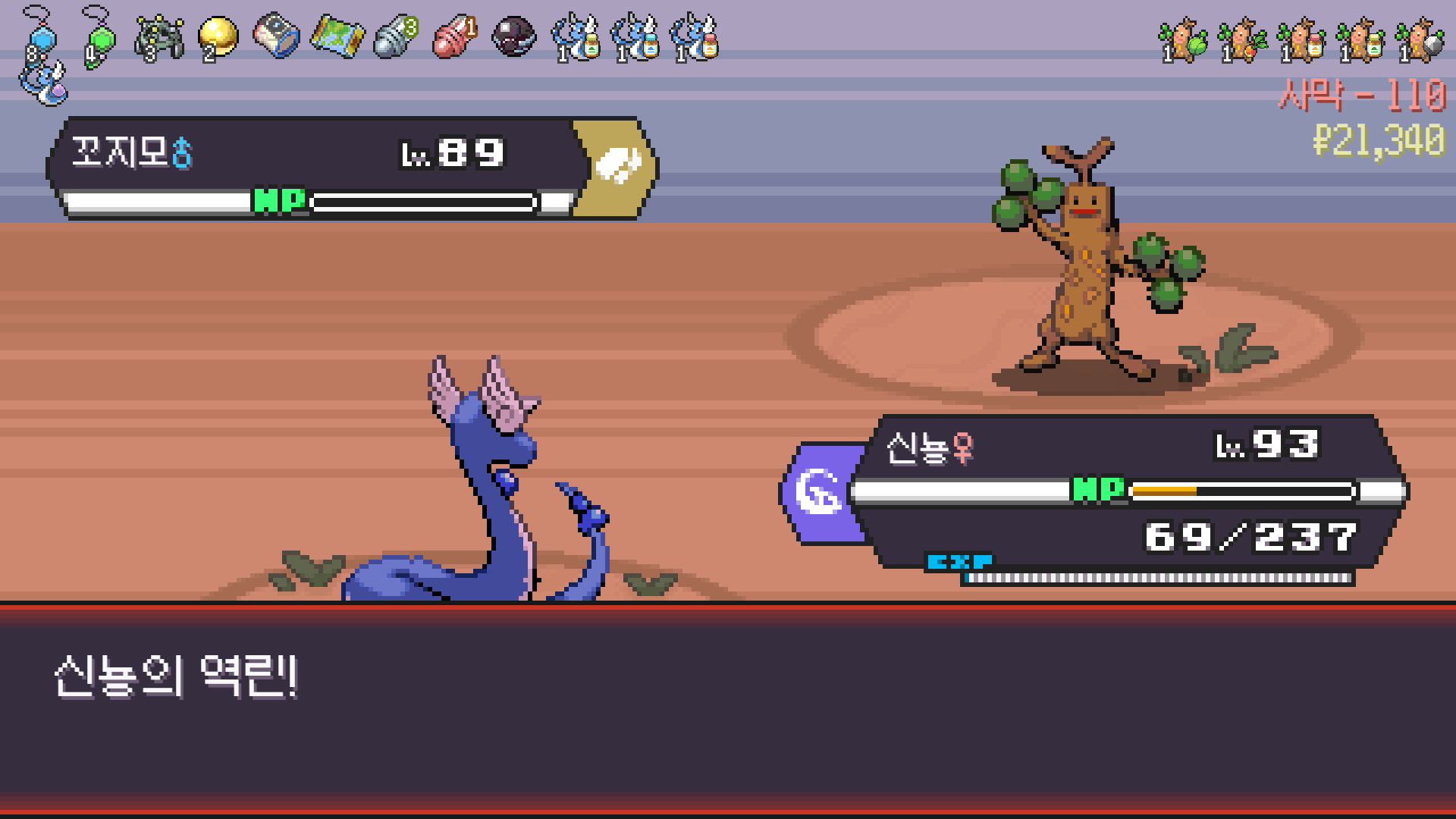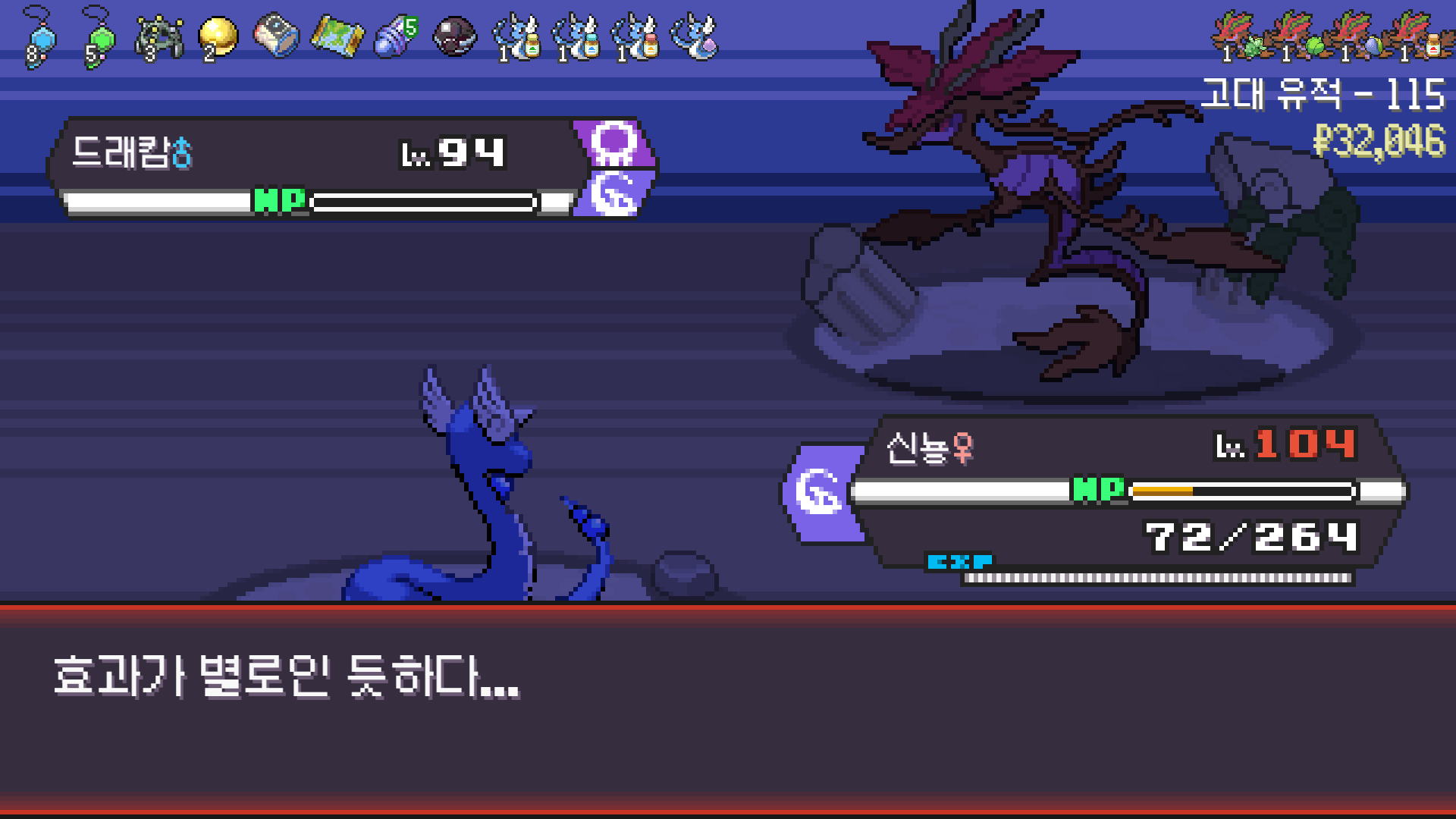 망나뇽으로 진화를 못해서 별 기대를 안했는데 휘석을 달아줘서 그런가 의외로 중반부까지는 활약해줬다
