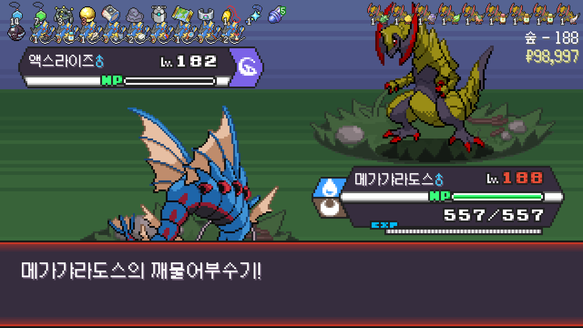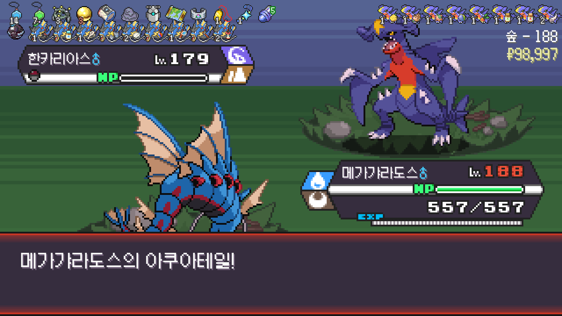 라이벌이 갸라도스나이트를 하나 더 줘서 2마리가된 메가갸라도스