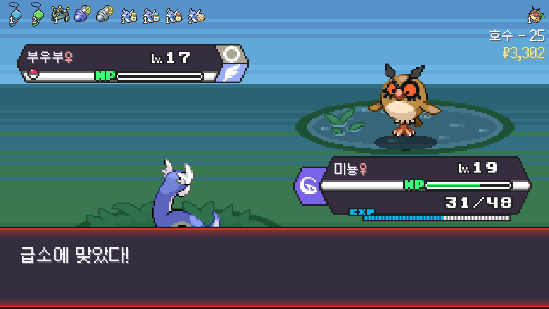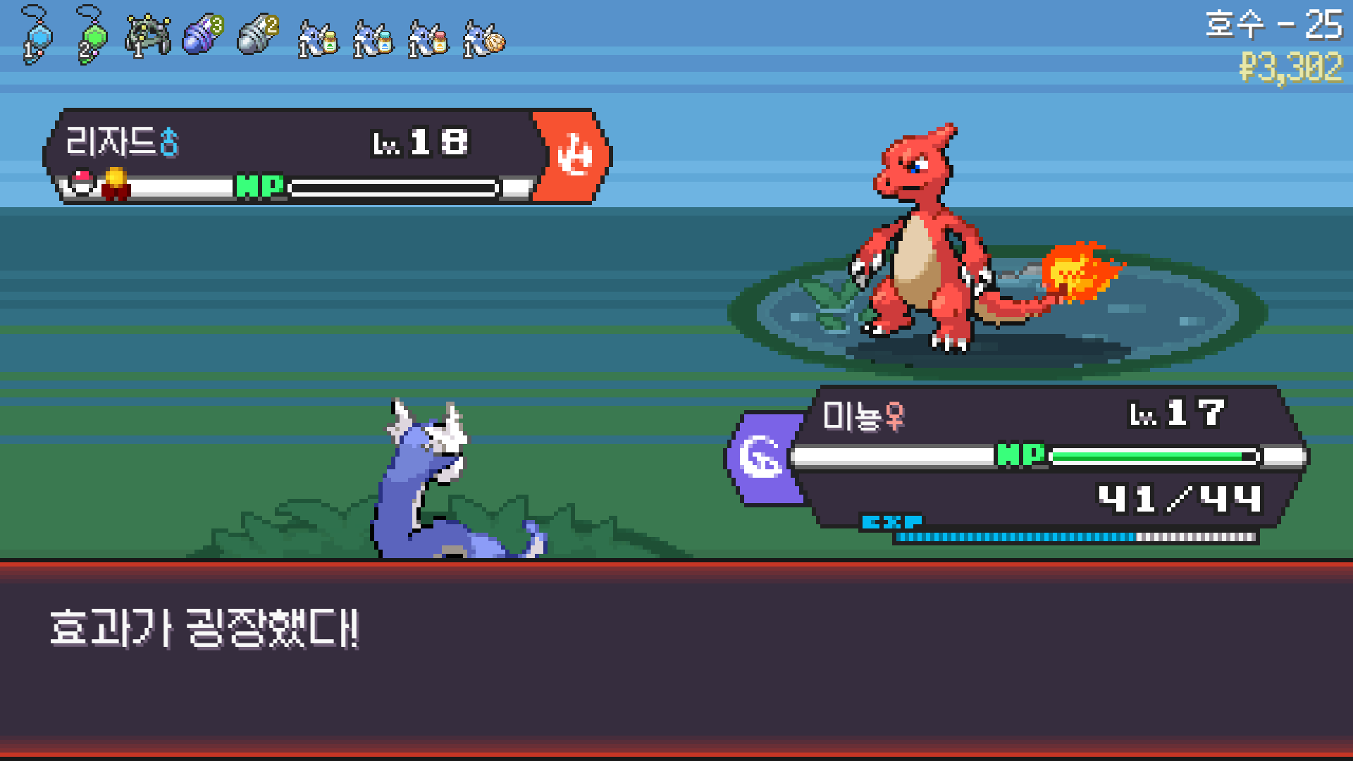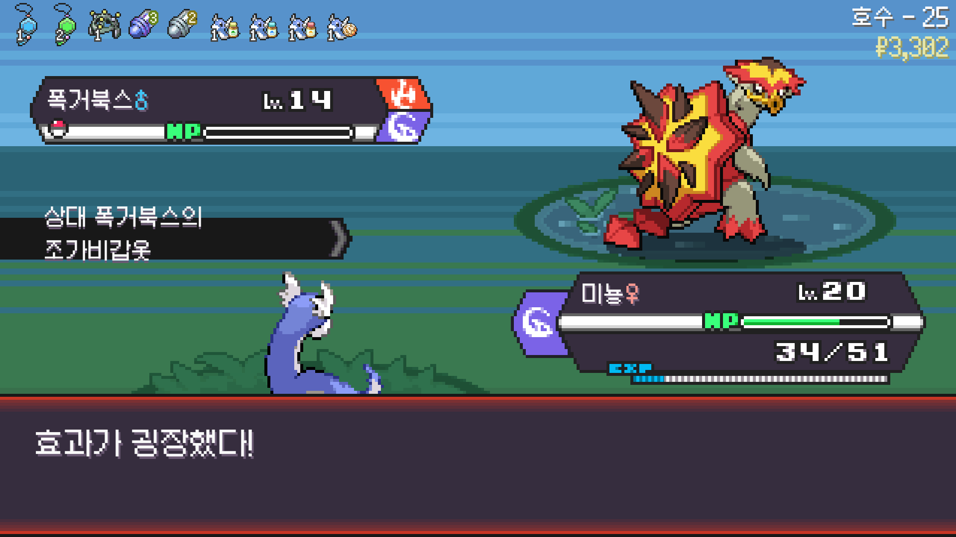 호수 진입해서 잉어킹 포획 + 25라 라이벌 전을 위한 고화력기가 기본 조건이라 초반 넘기기가 매우 빡셌다