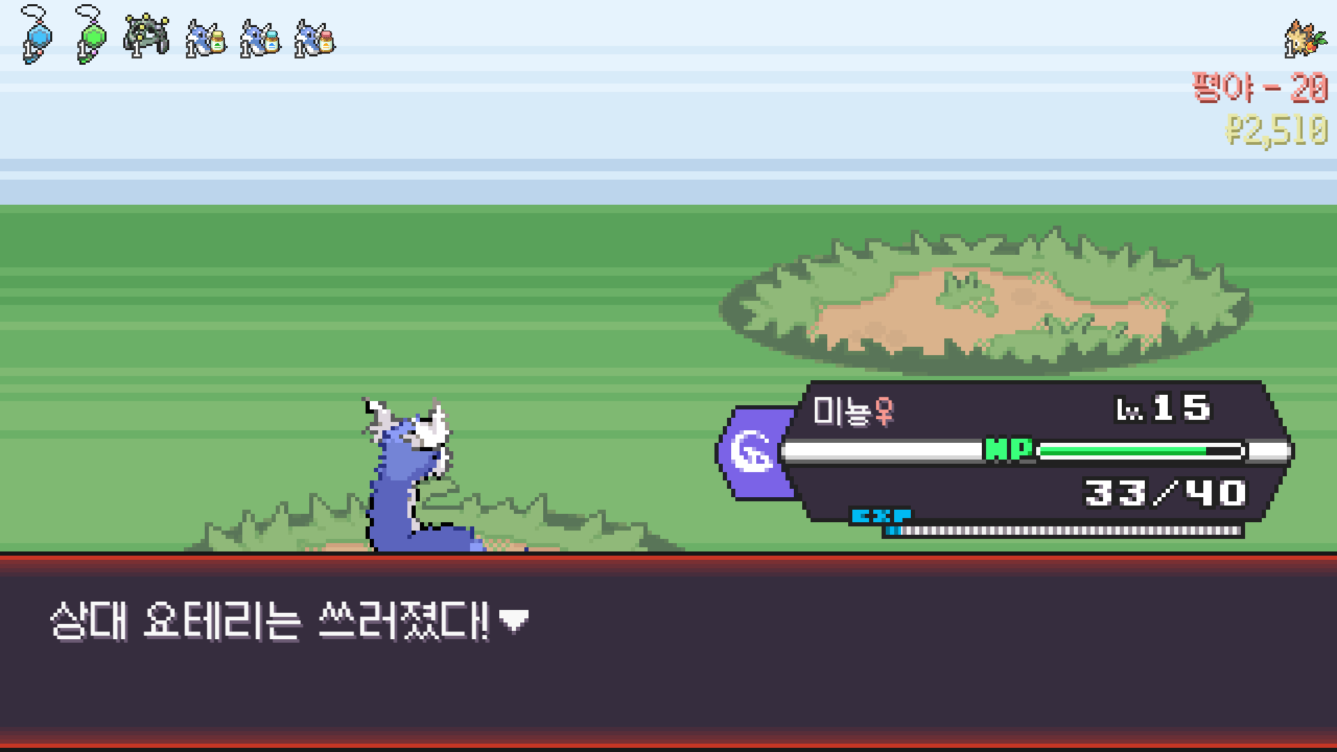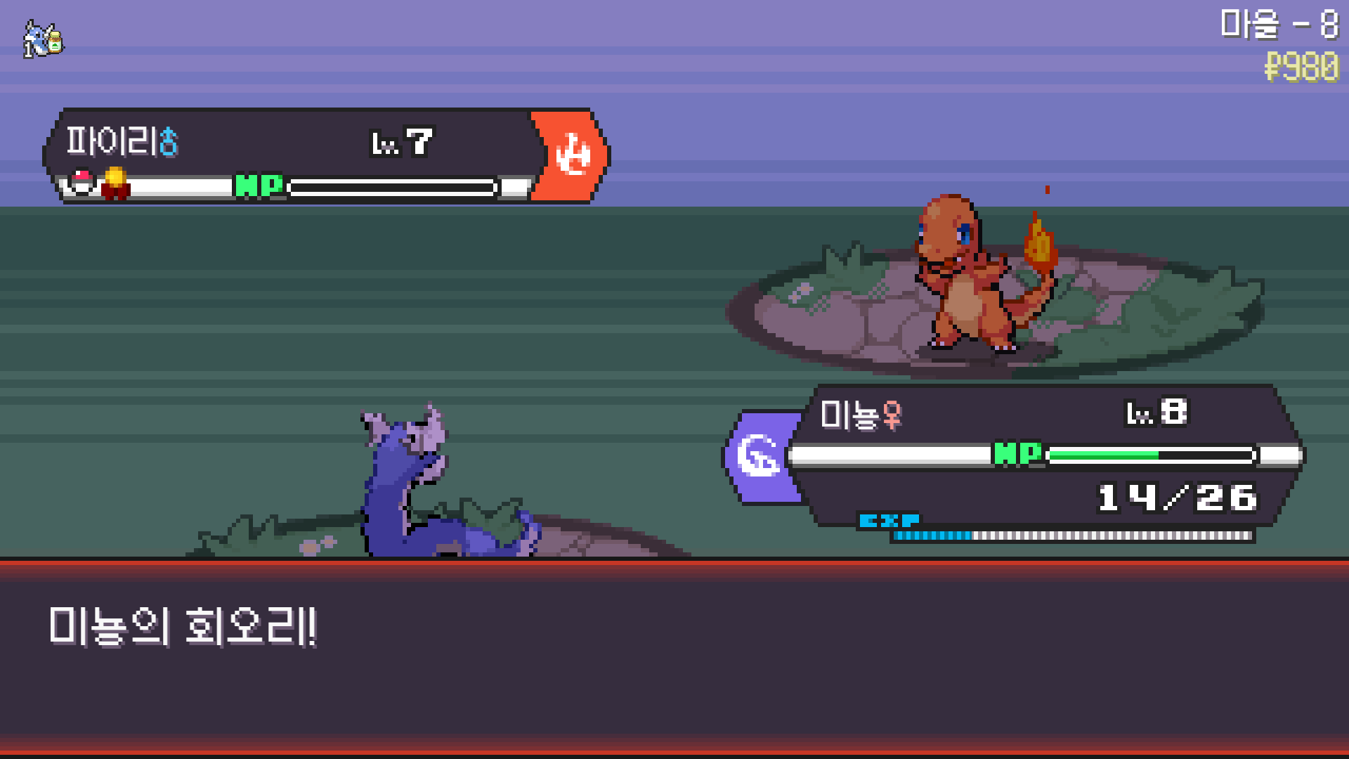황무지가 초반에 진입 불가라서 신뇽을 못 구하니 미뇽으로 스타트