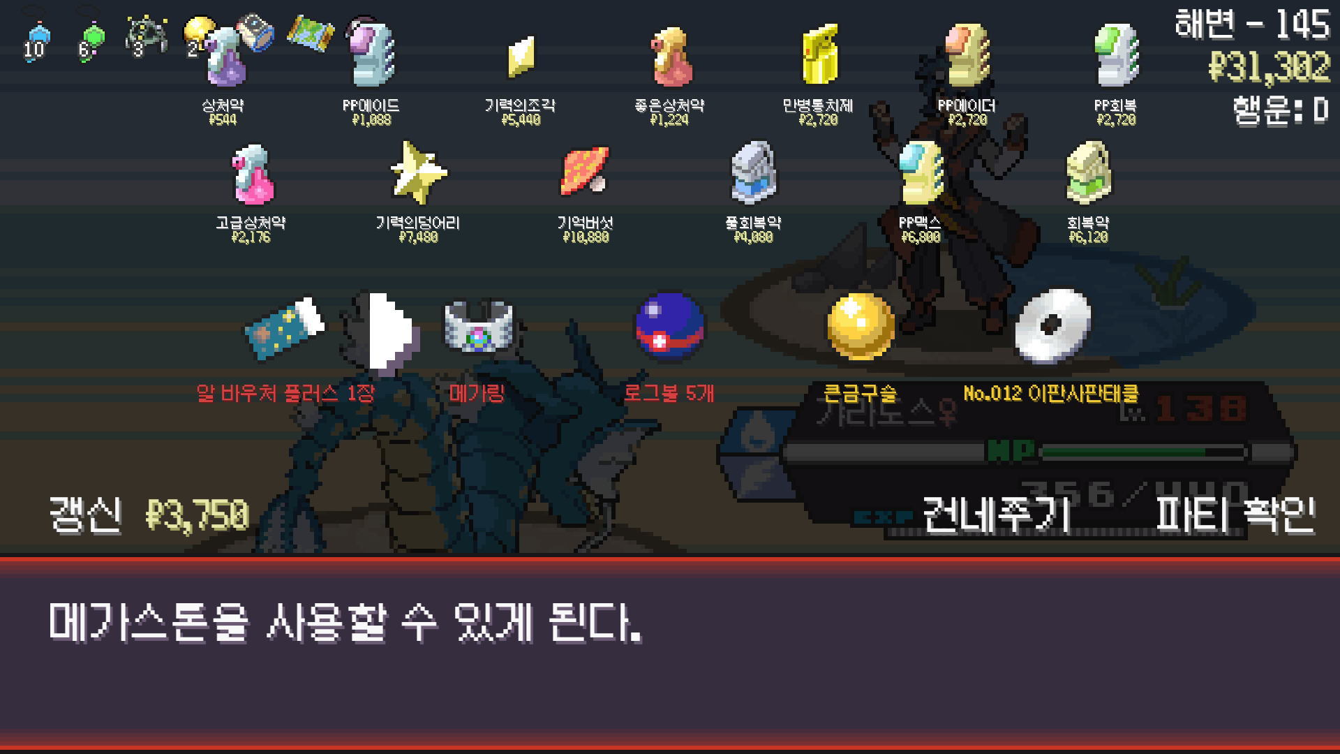 불사천왕에서 메가갸라도스 성능 체크좀 해보고