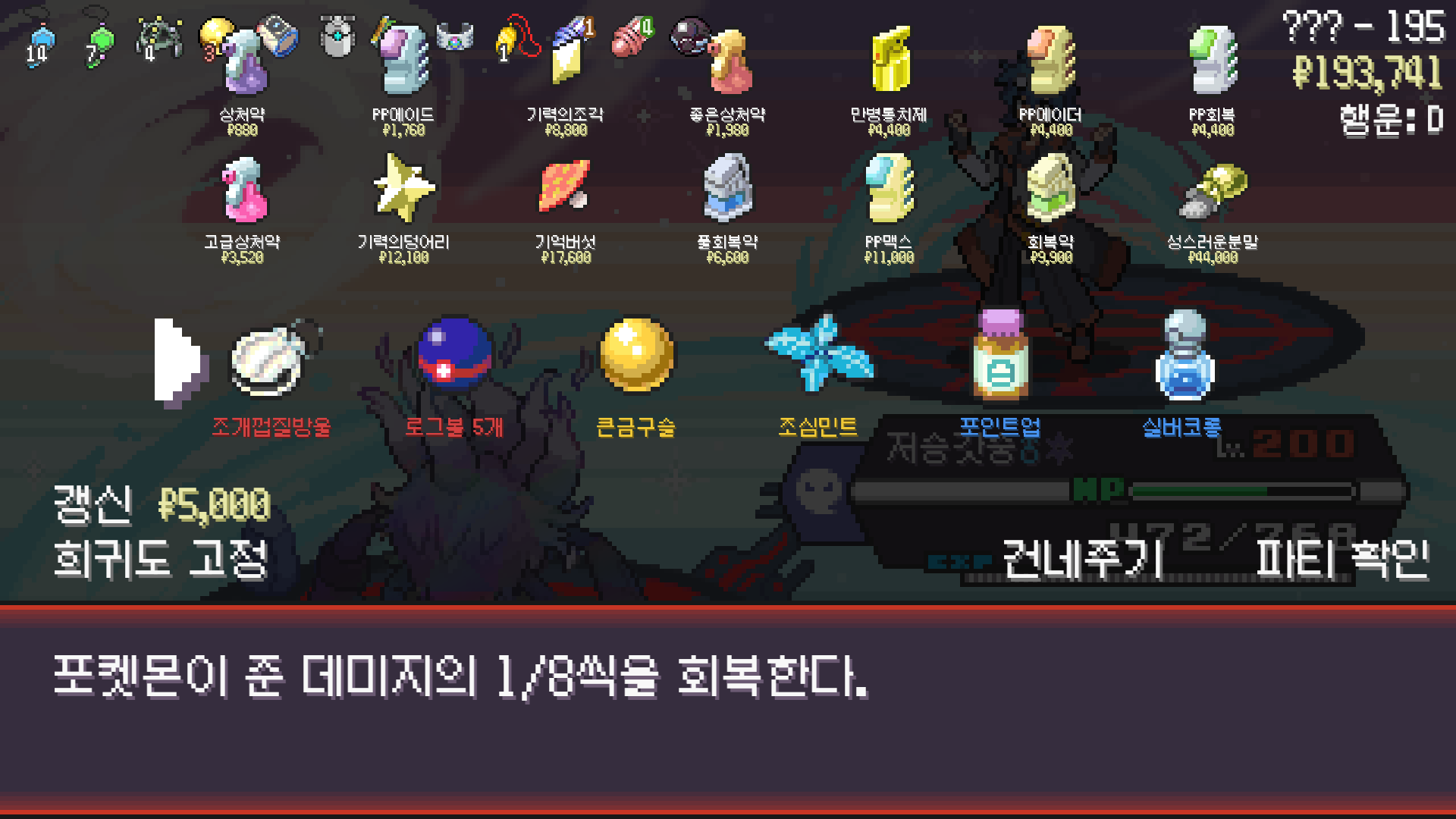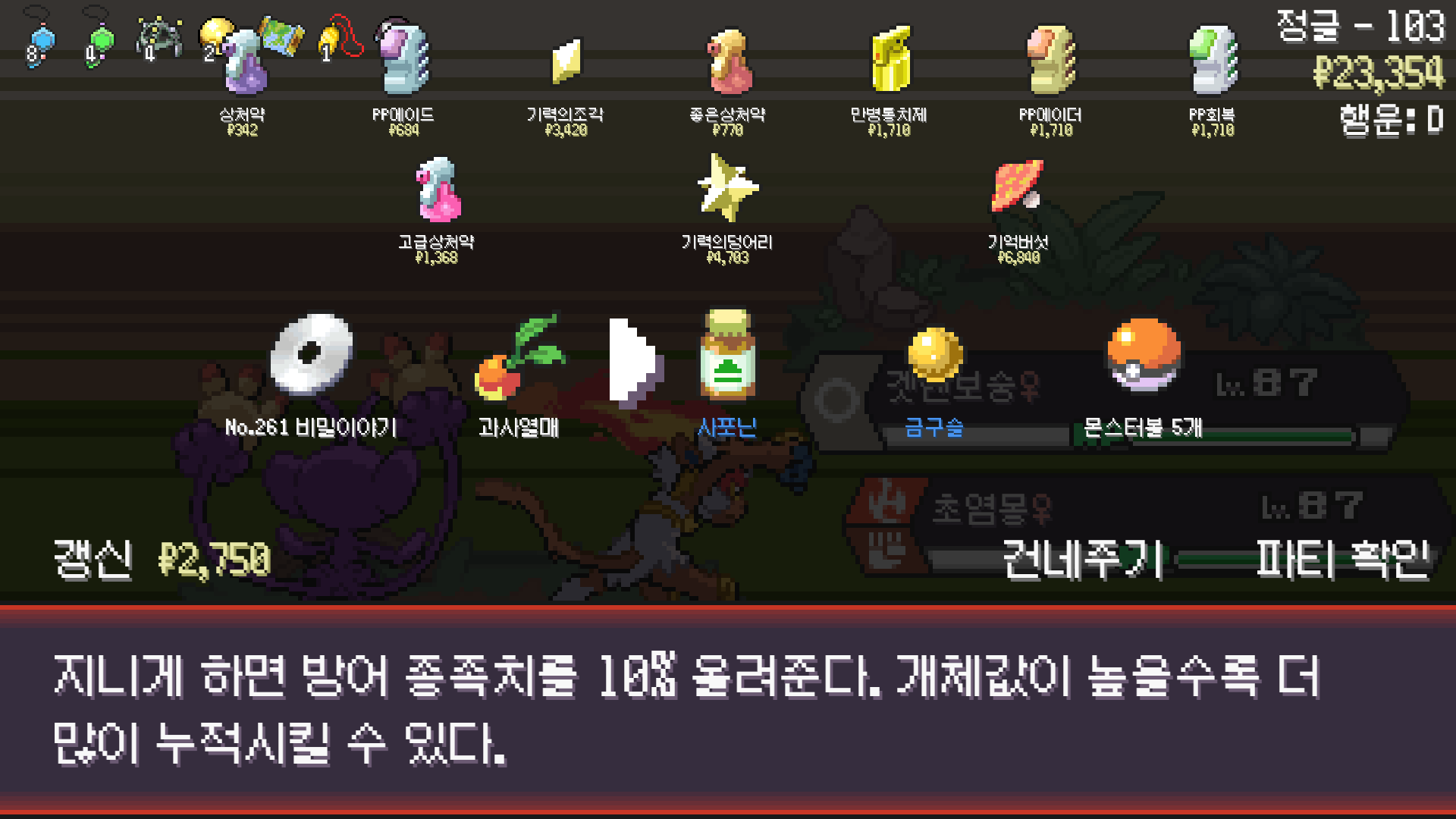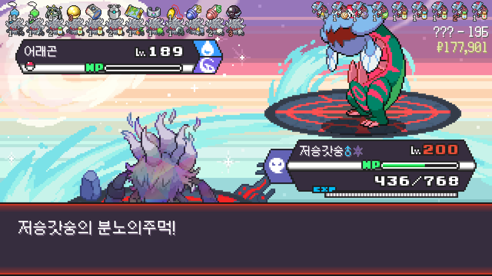 저승갓숭으로 구즈마 잡고 조개껍질방울 획득