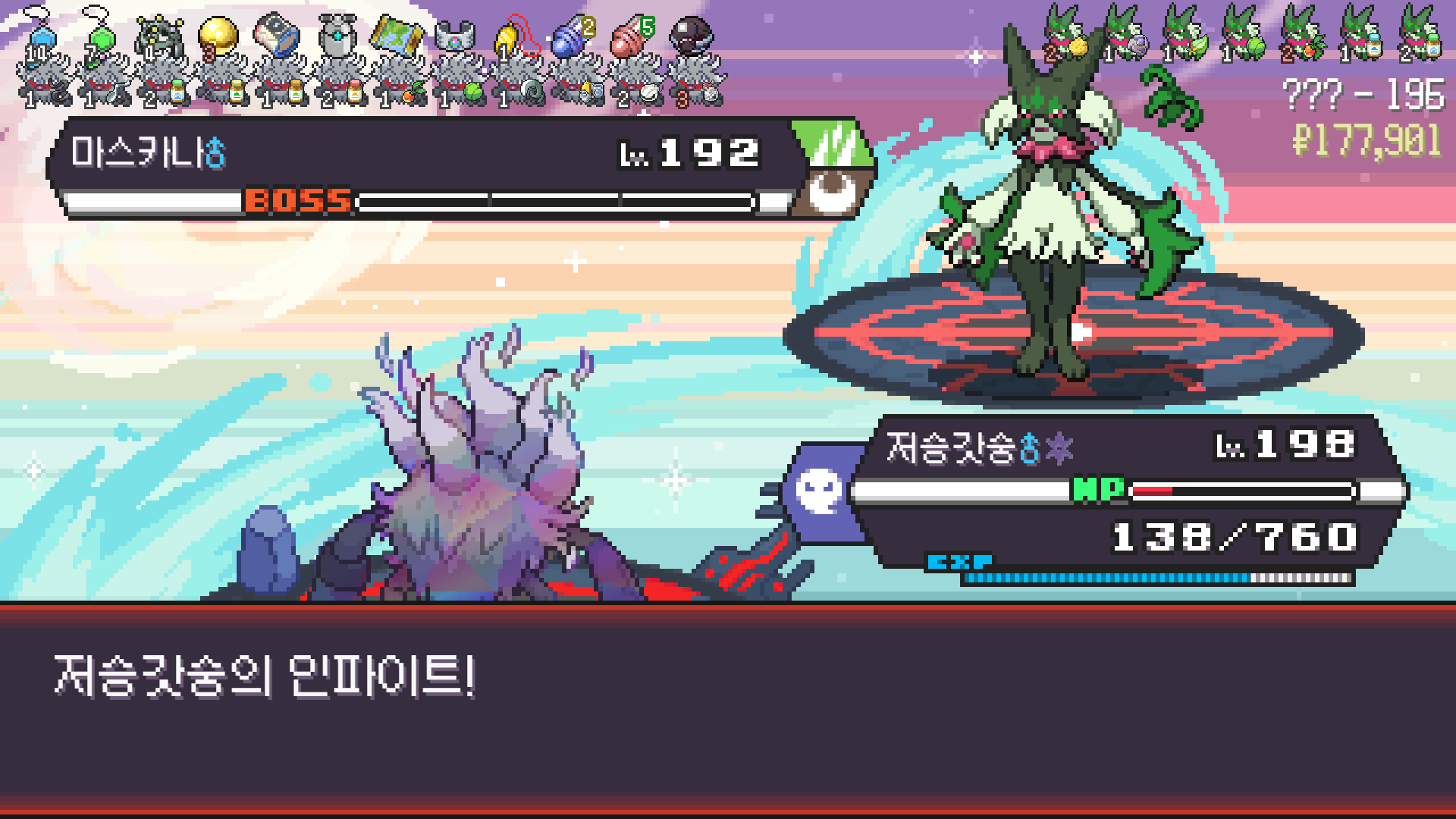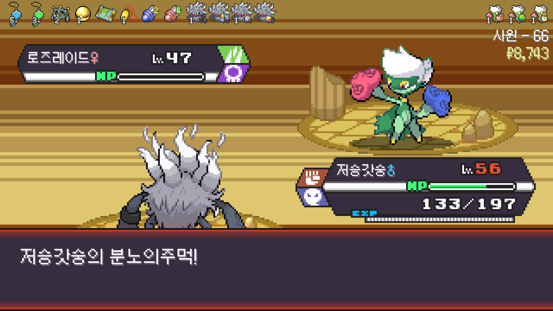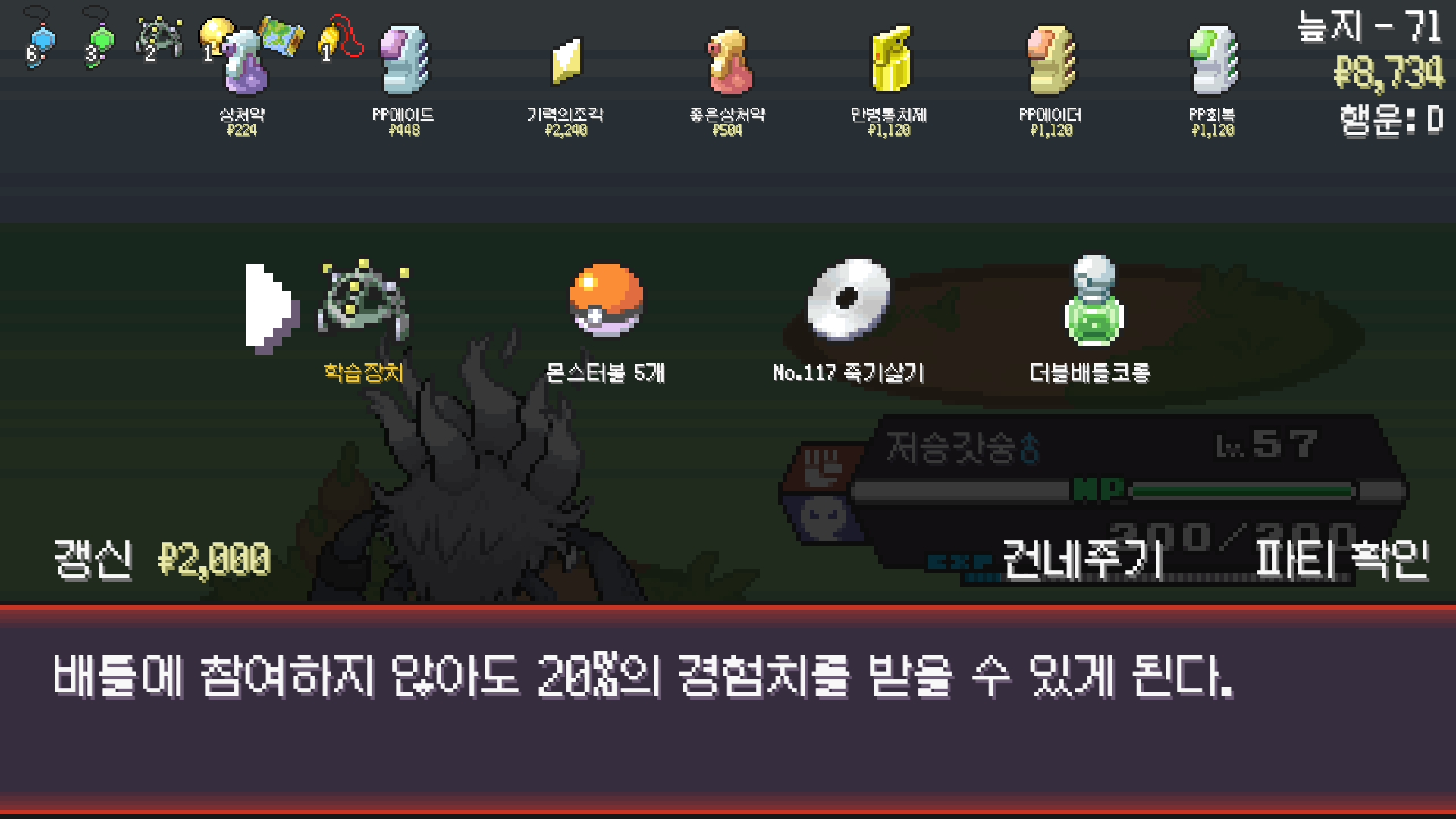 저승갓숭으로 구즈마 잡고 조개껍질방울 획득