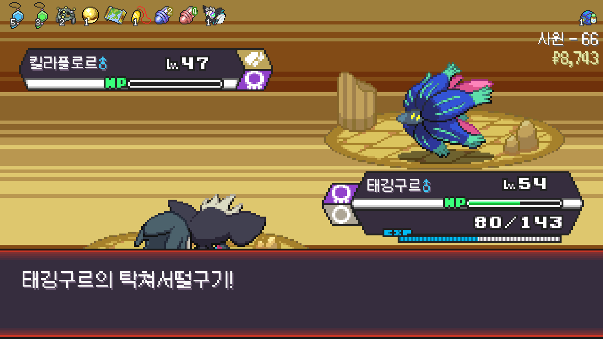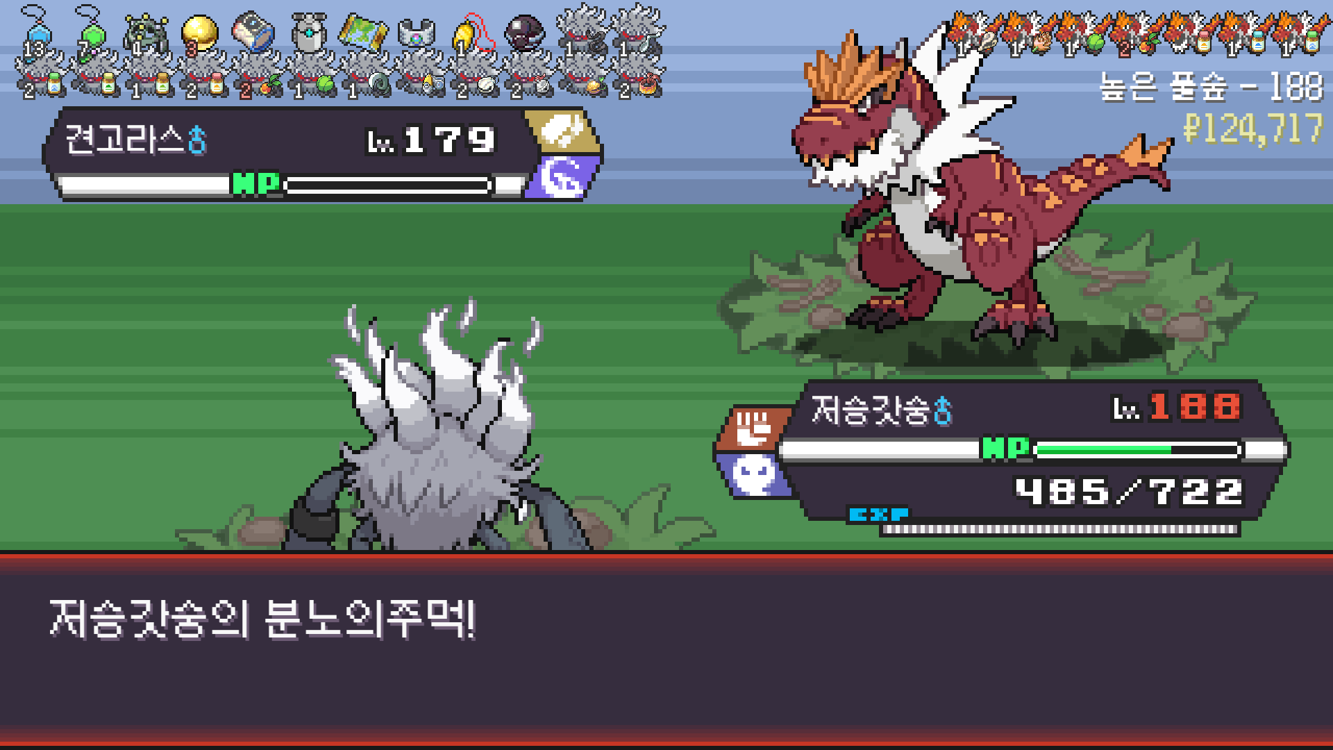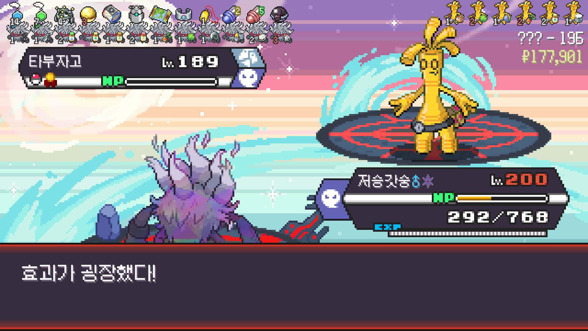 스페이스 광클하다 실수로 벌크업 한 번 더 썼는데 기합의띠 터져서 정리된 드래곤 사천왕