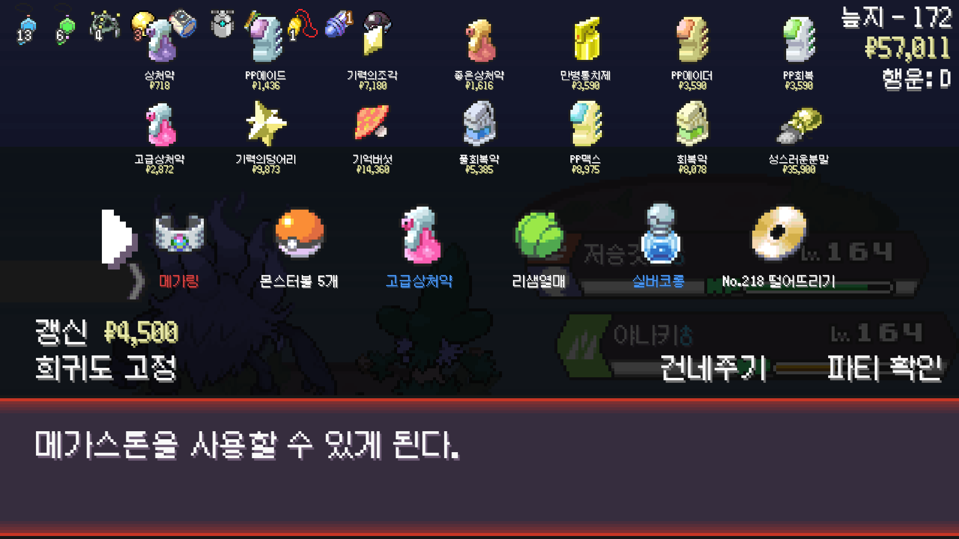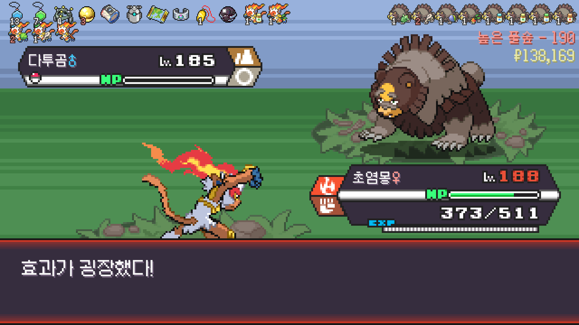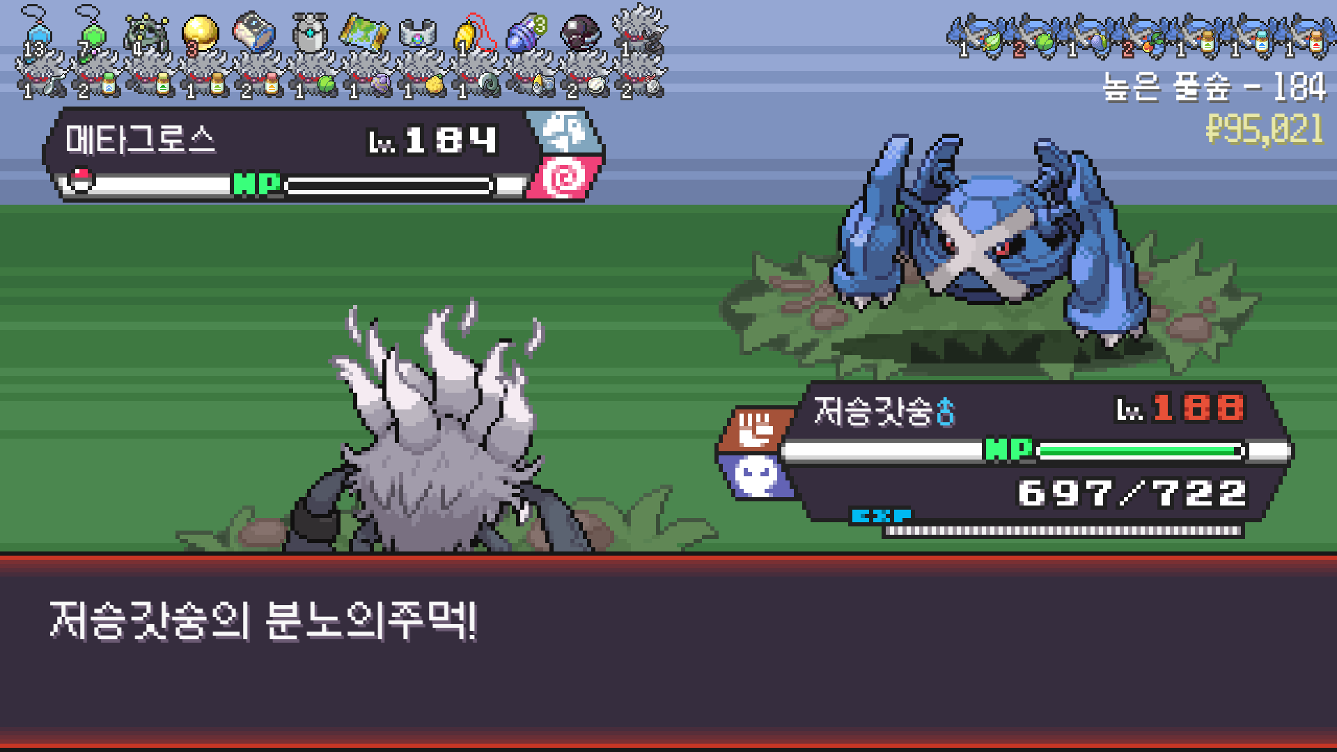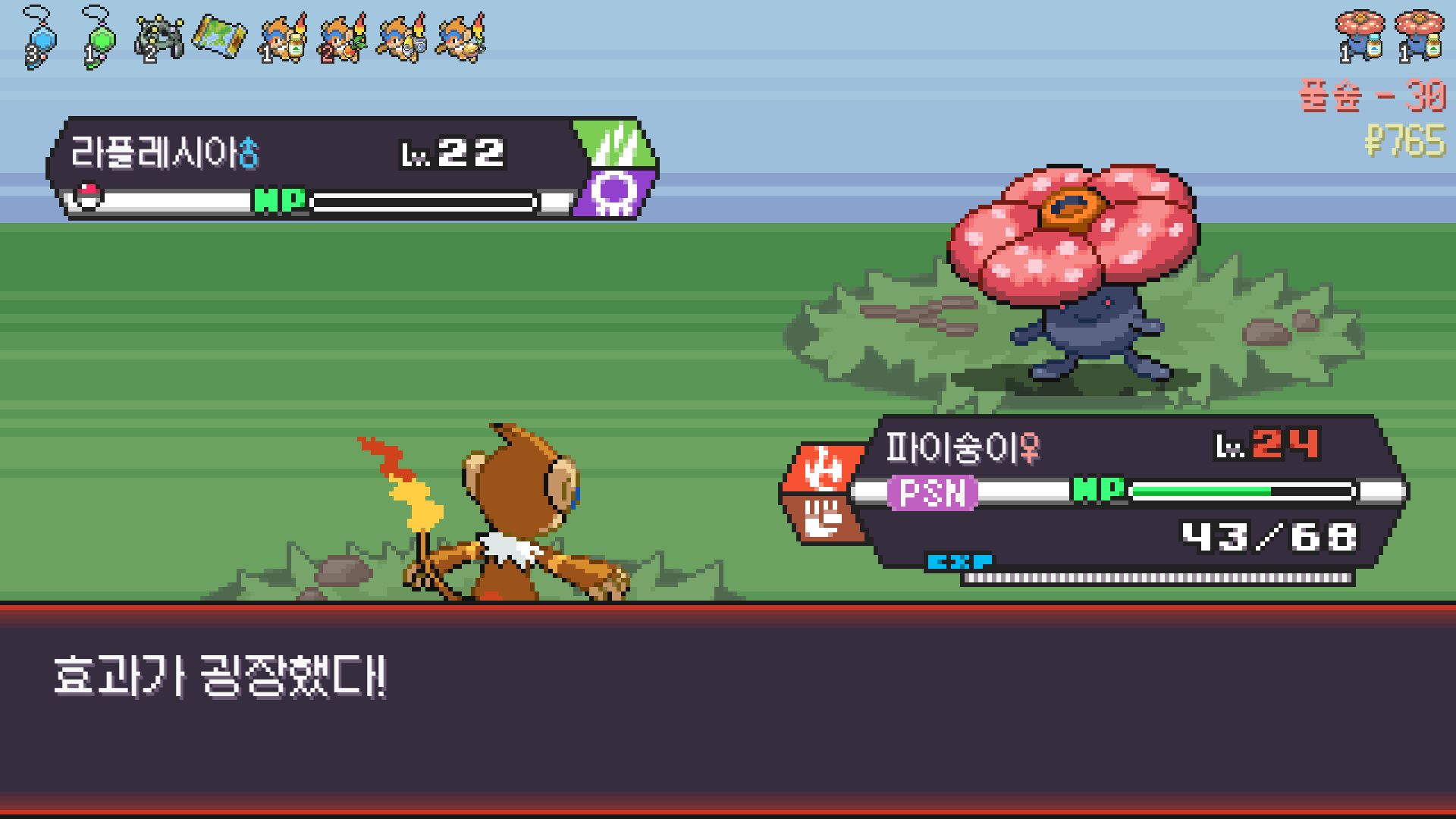 정글 뺑뺑이 루트 돌면 나오는 늪지에서 물,땅 포켓몬 저격 + 무한다이노 씨뿌리기로 1인분 해준 친구