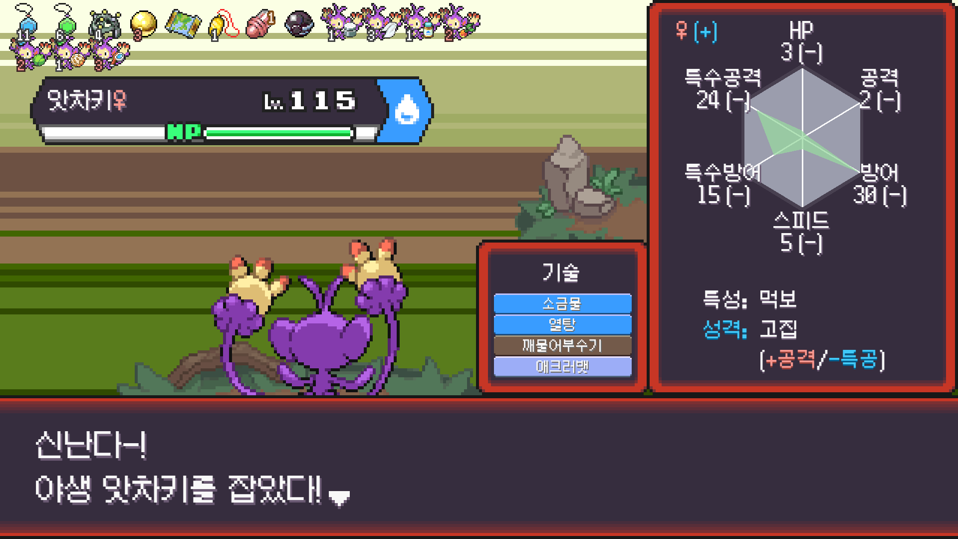 평야에서 한숨나오는 개체값의 망키 포획
