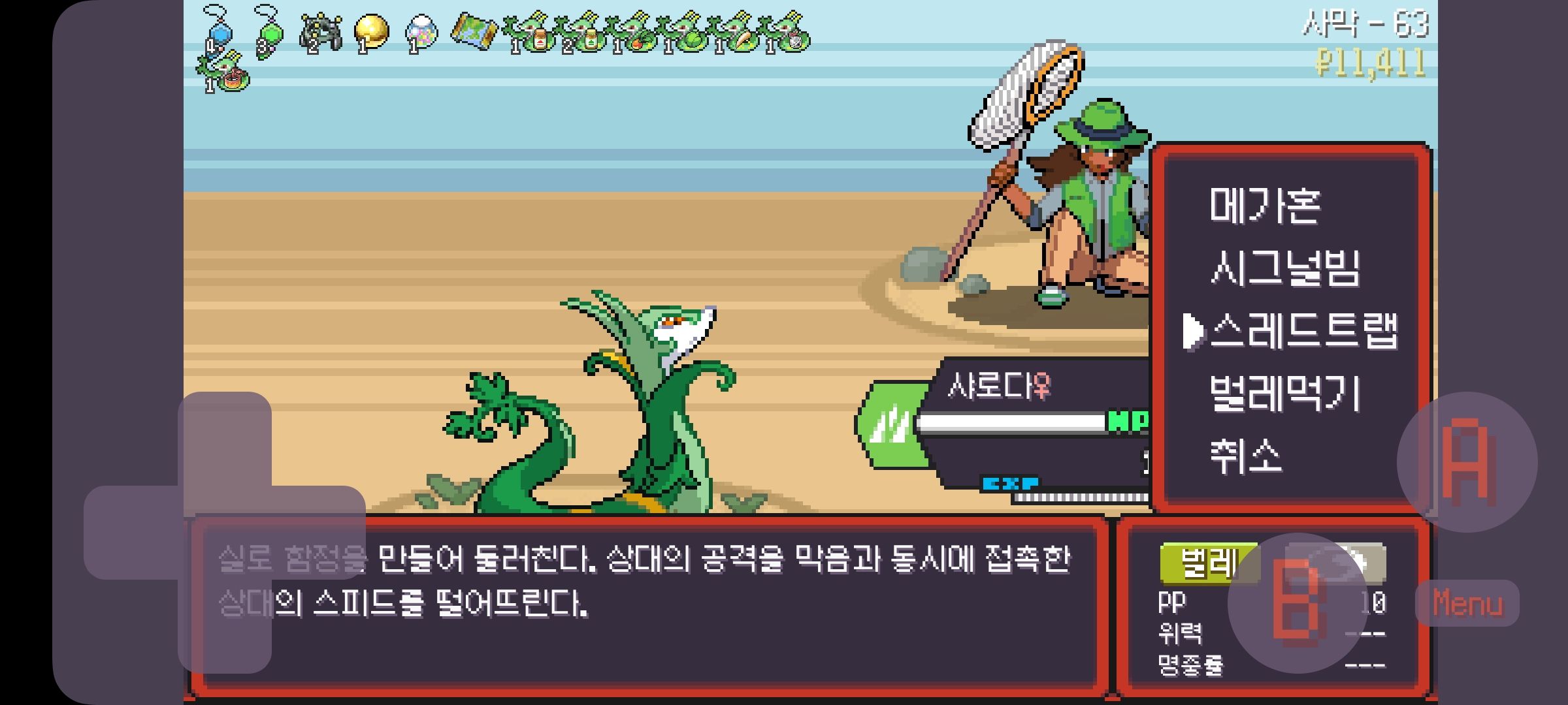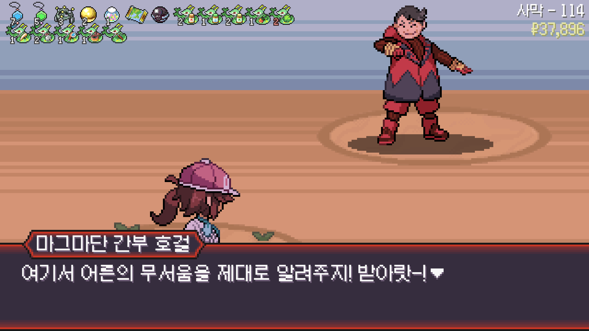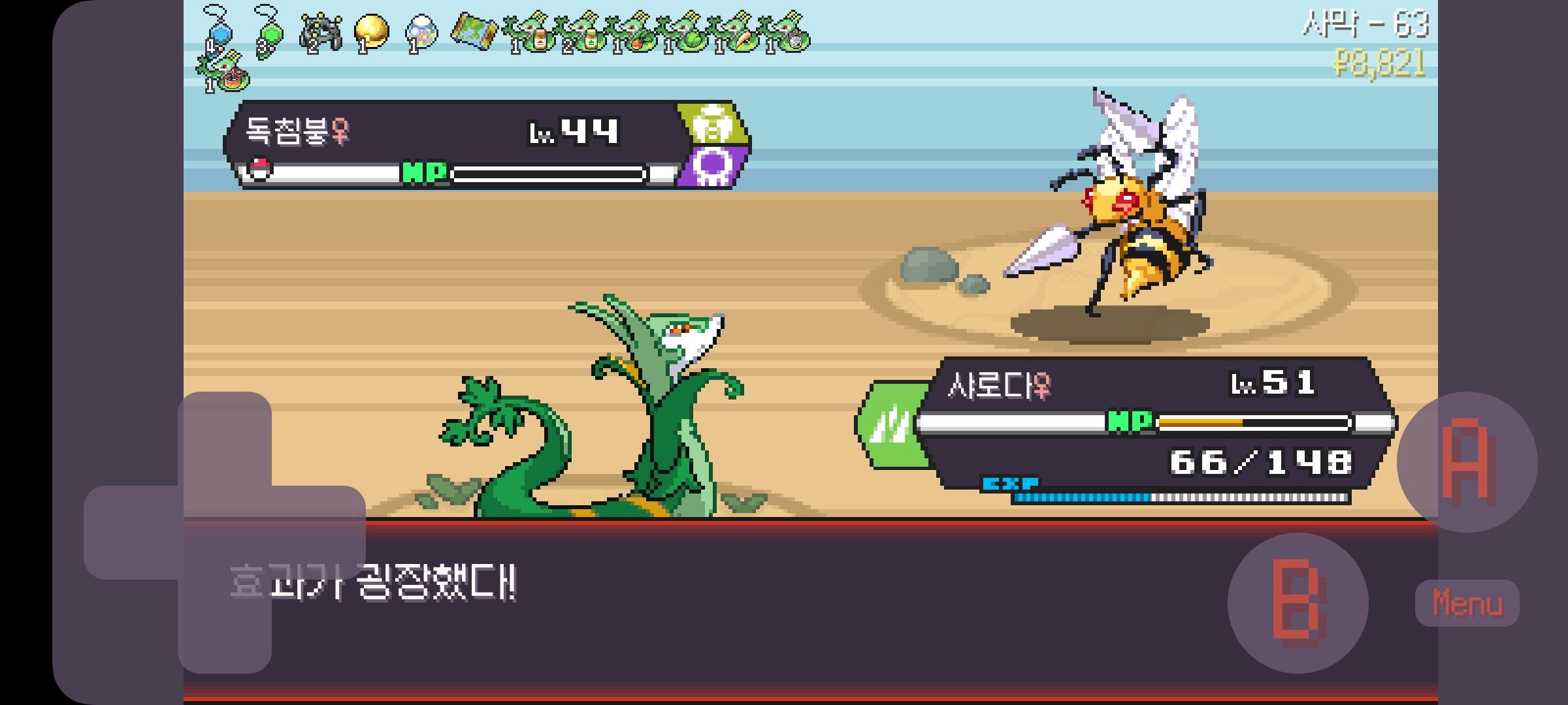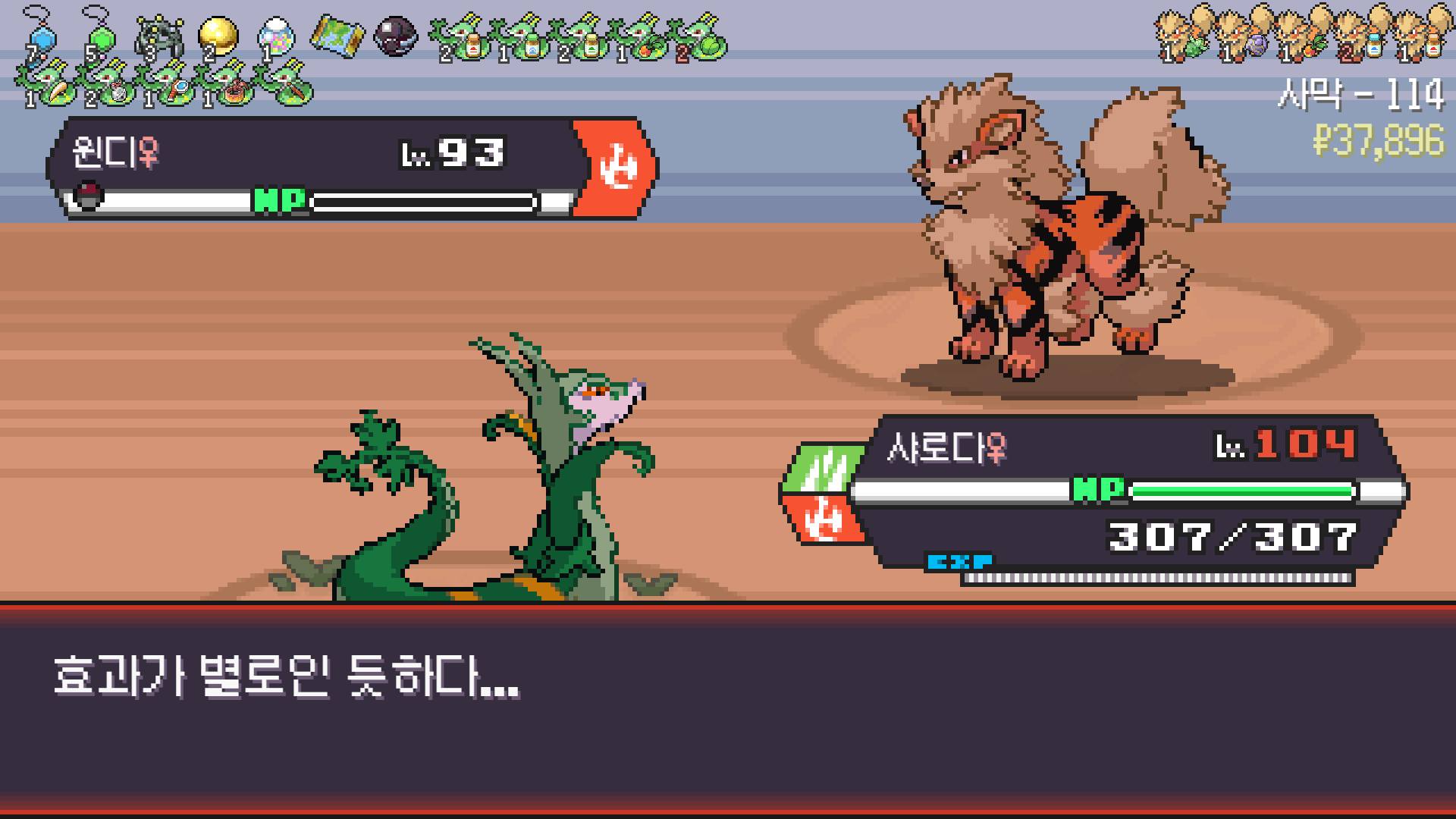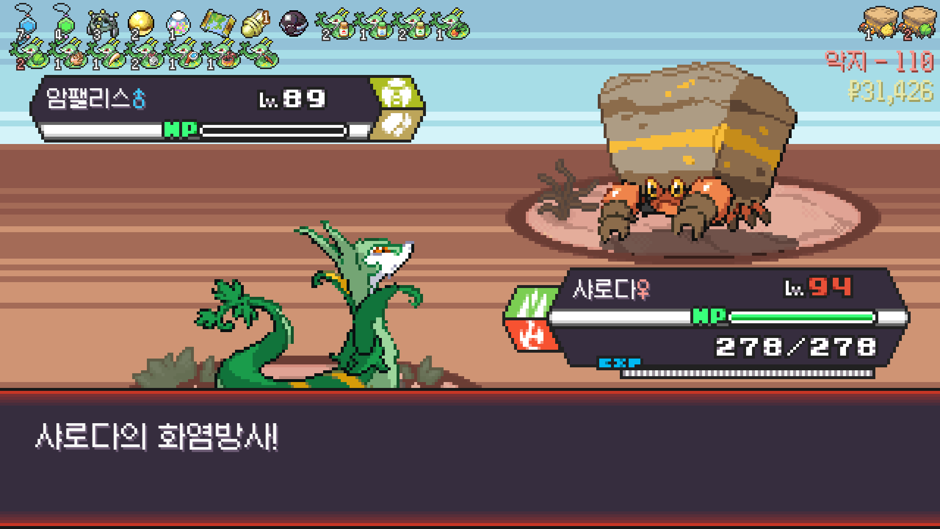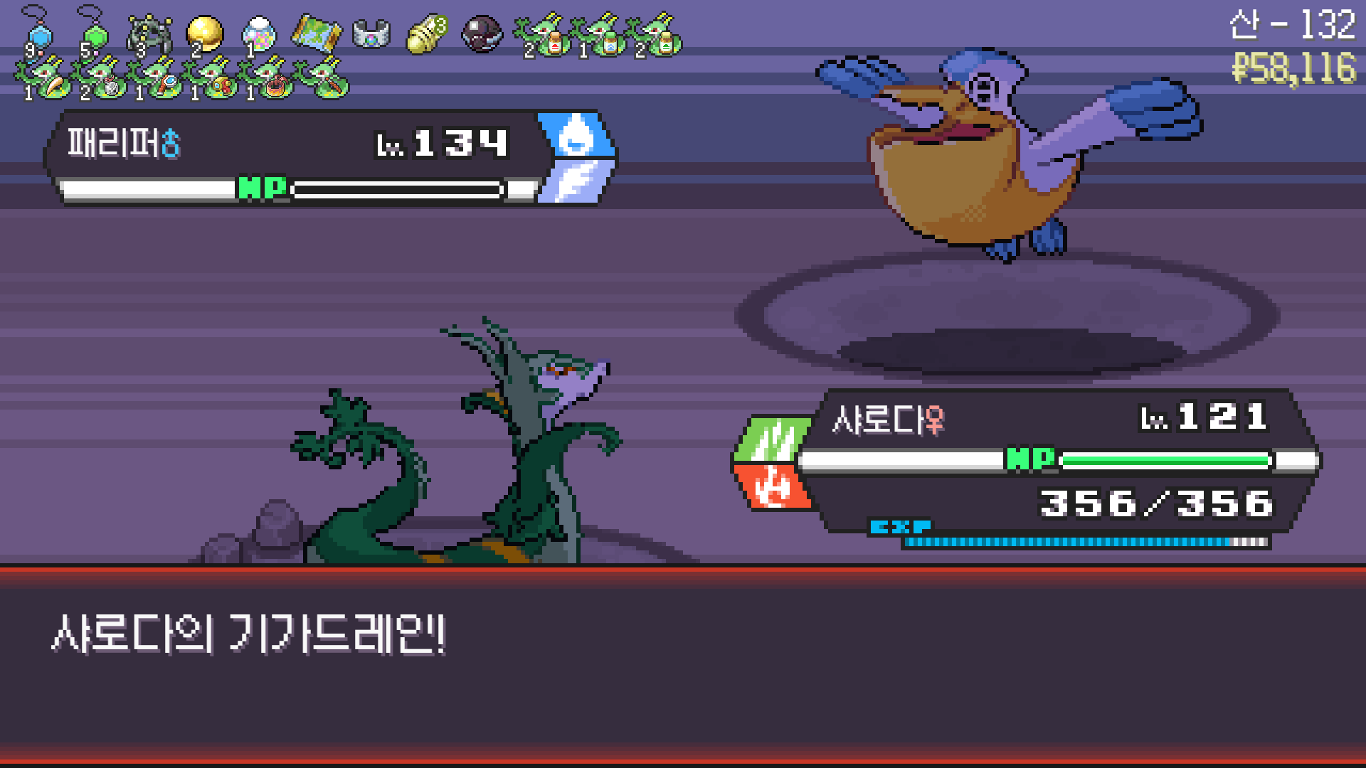 사다이사의 작아지기 3번 후 모래뿜기 + 엄습하는일격으로 1페 넘기고