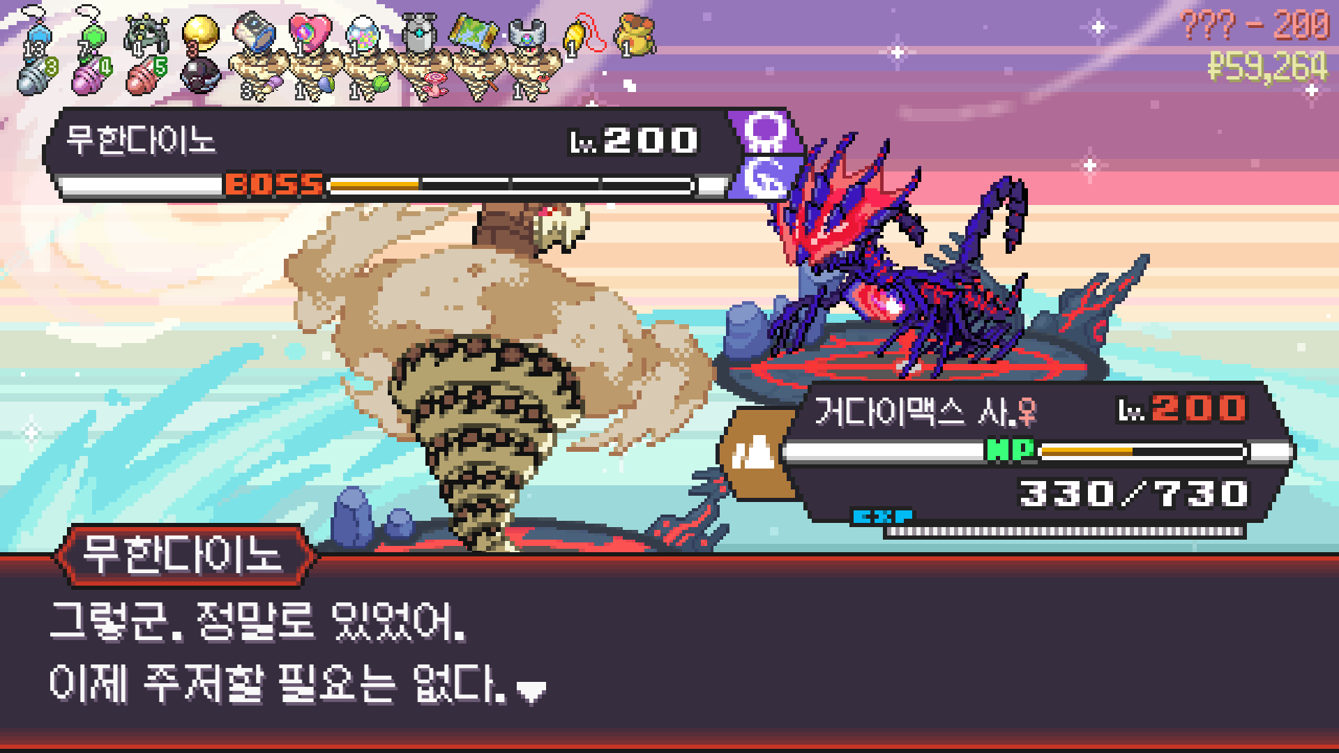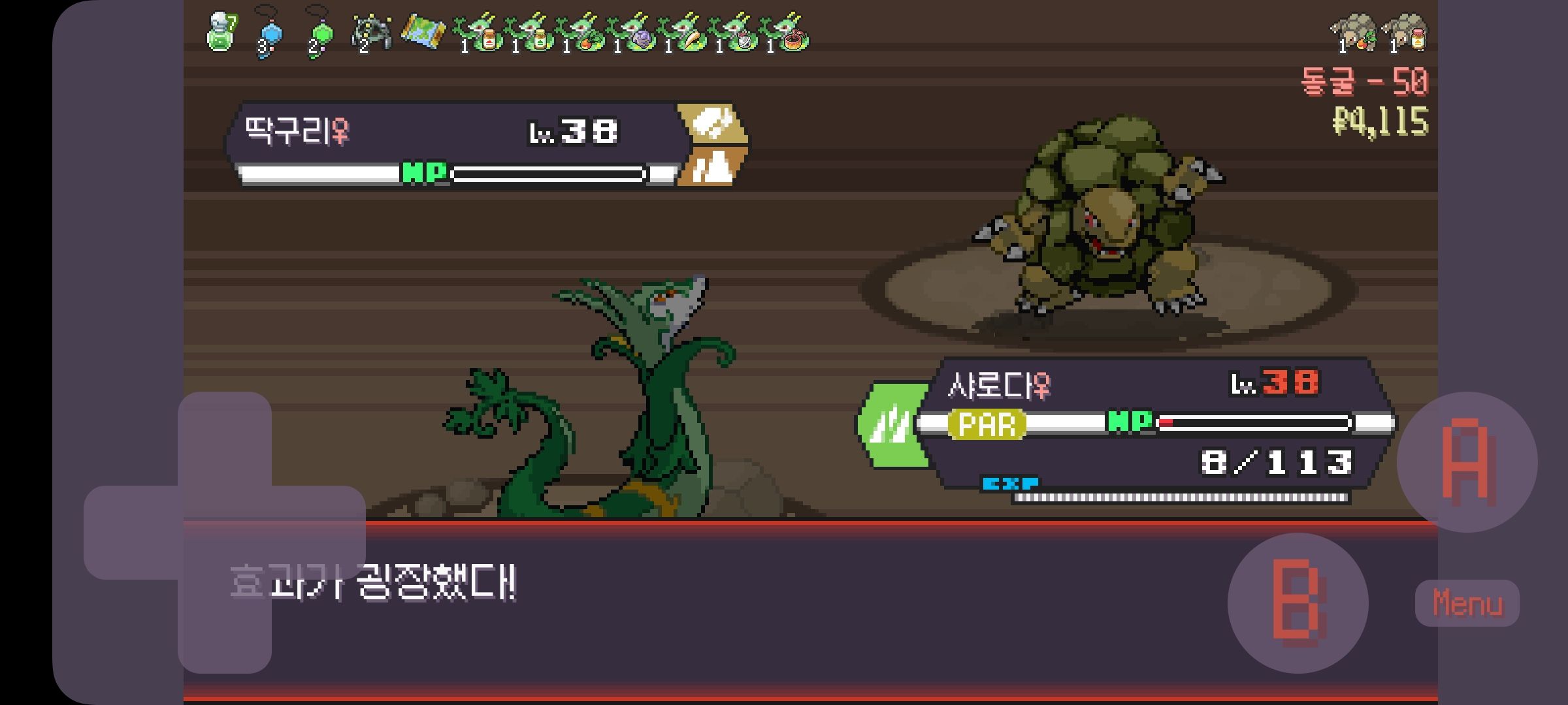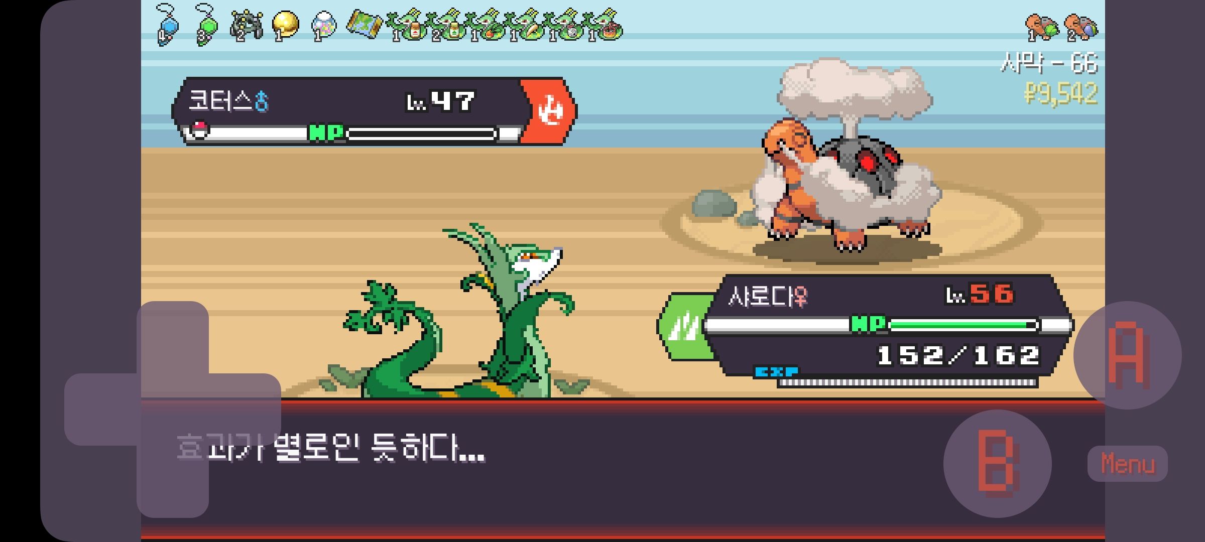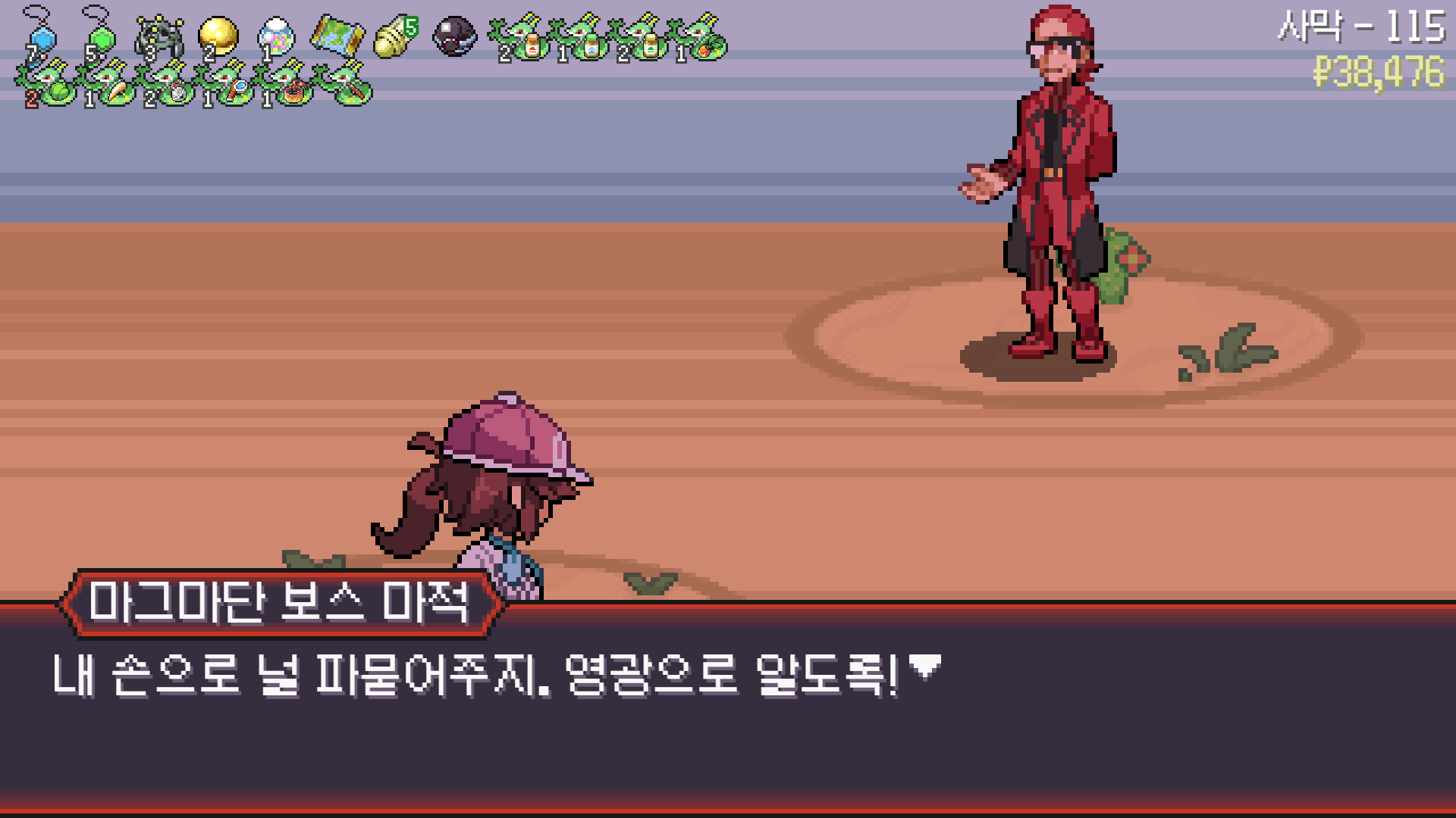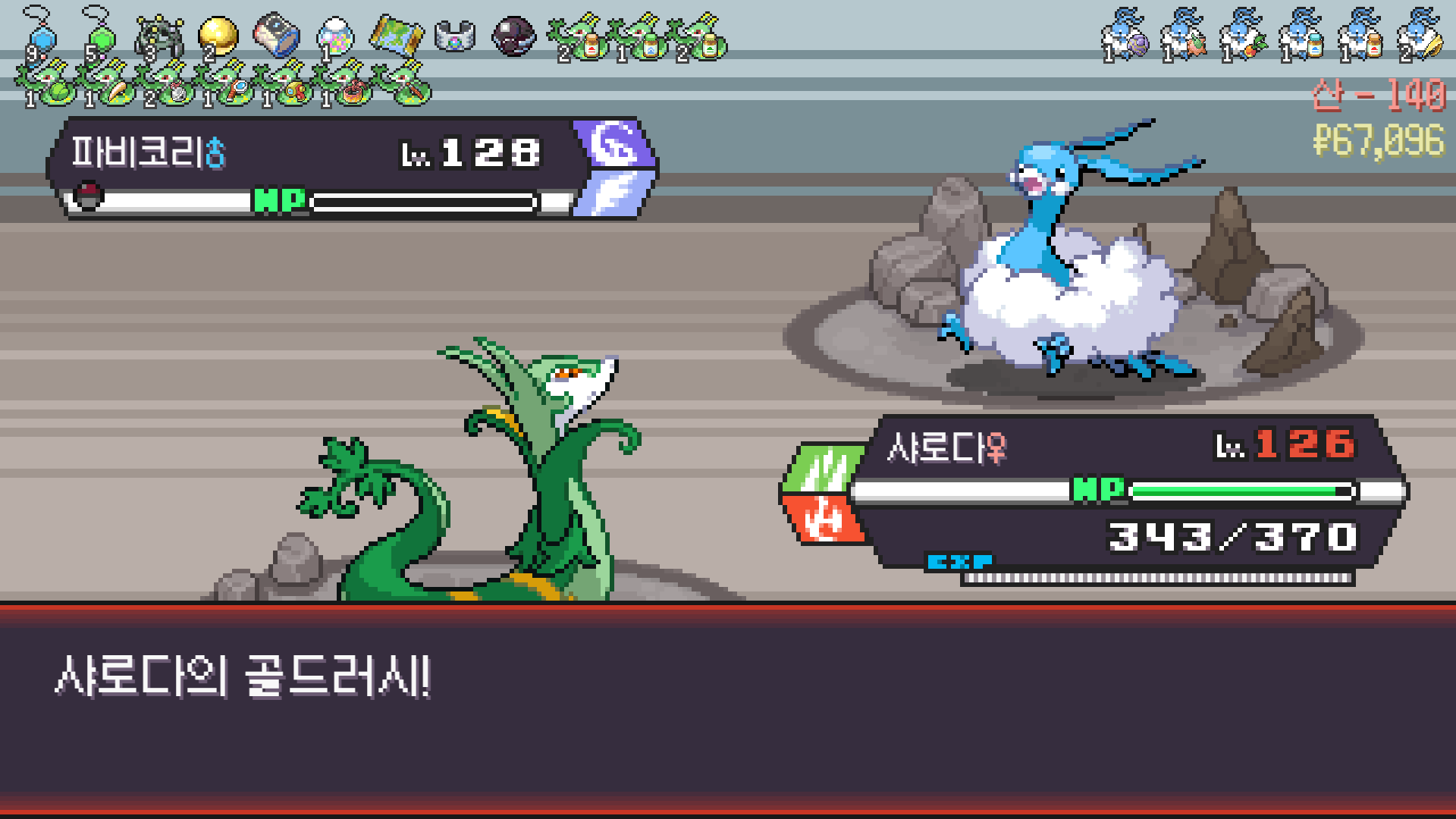 사다이사의 작아지기 3번 후 모래뿜기 + 엄습하는일격으로 1페 넘기고