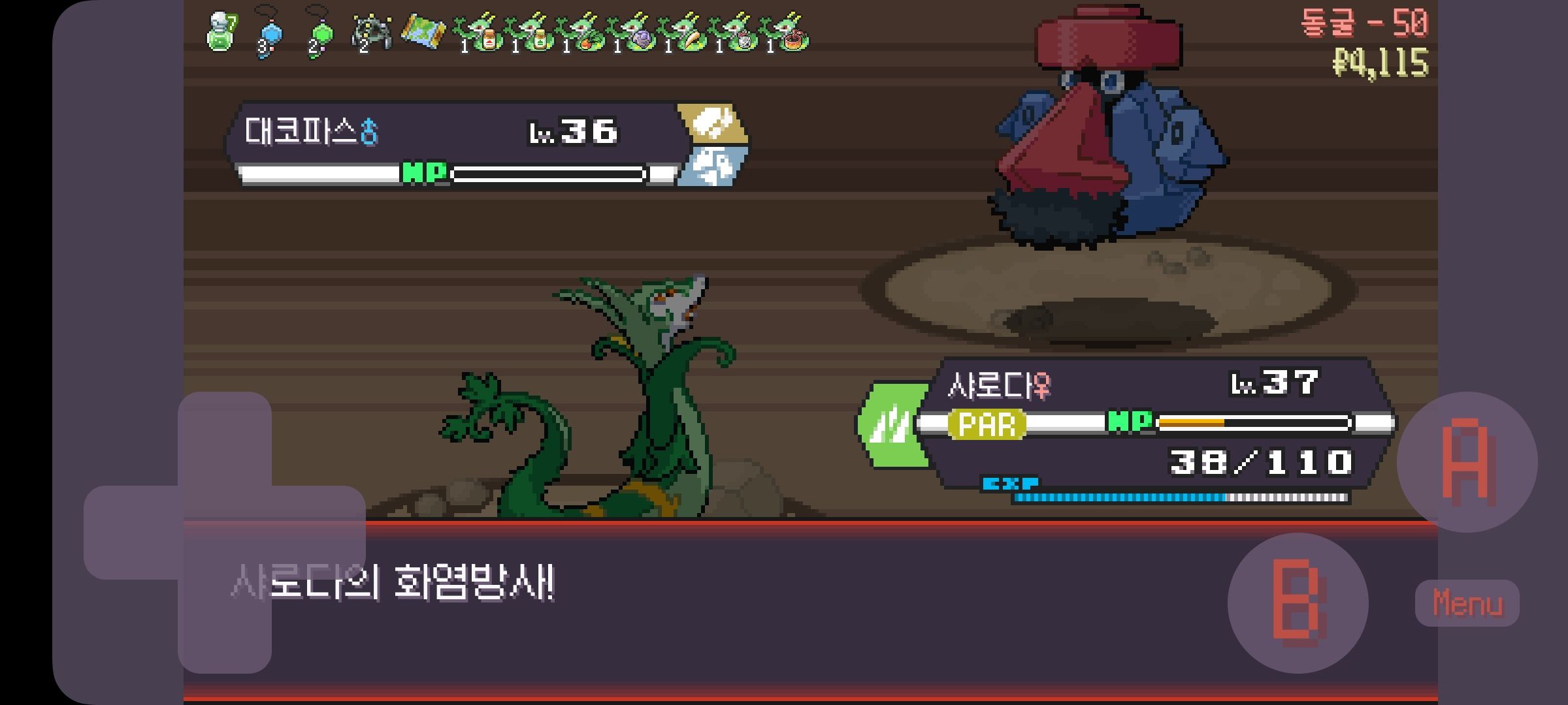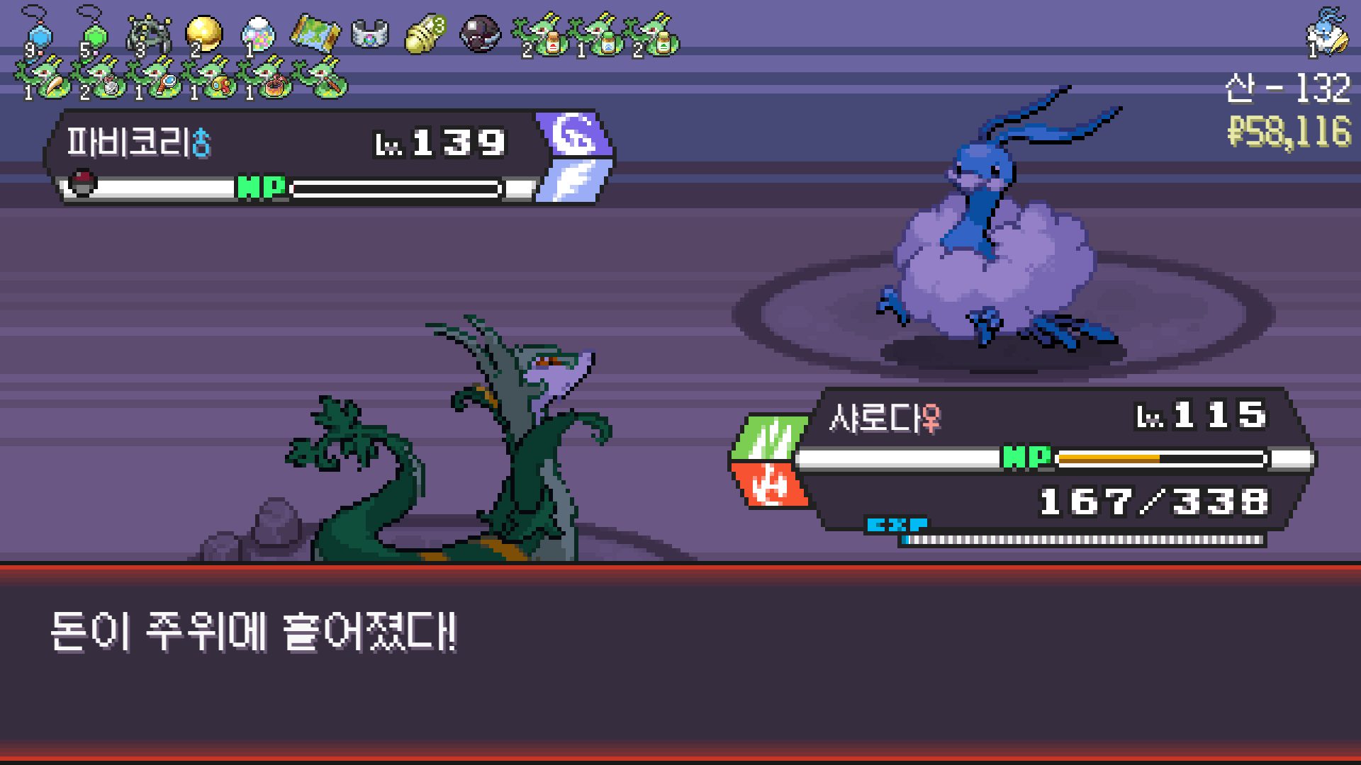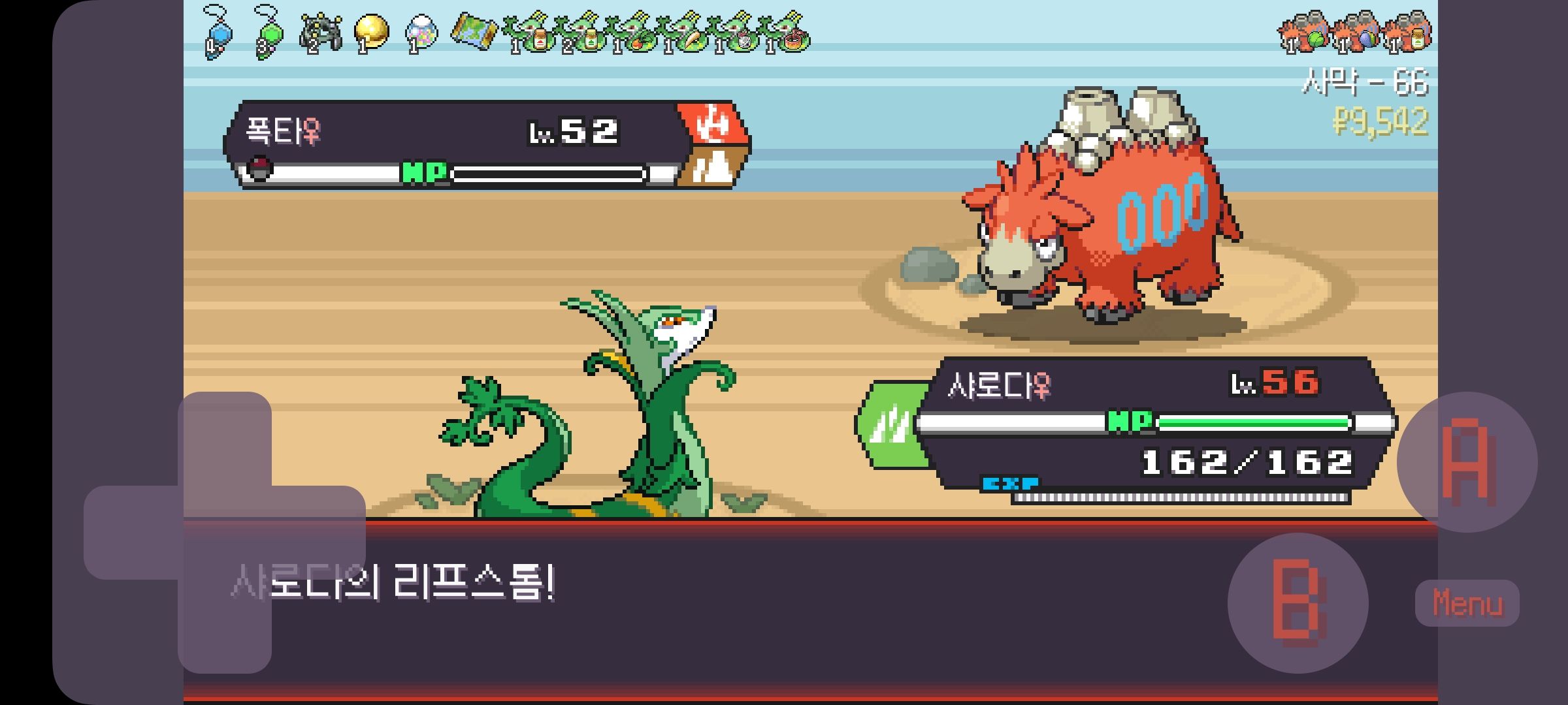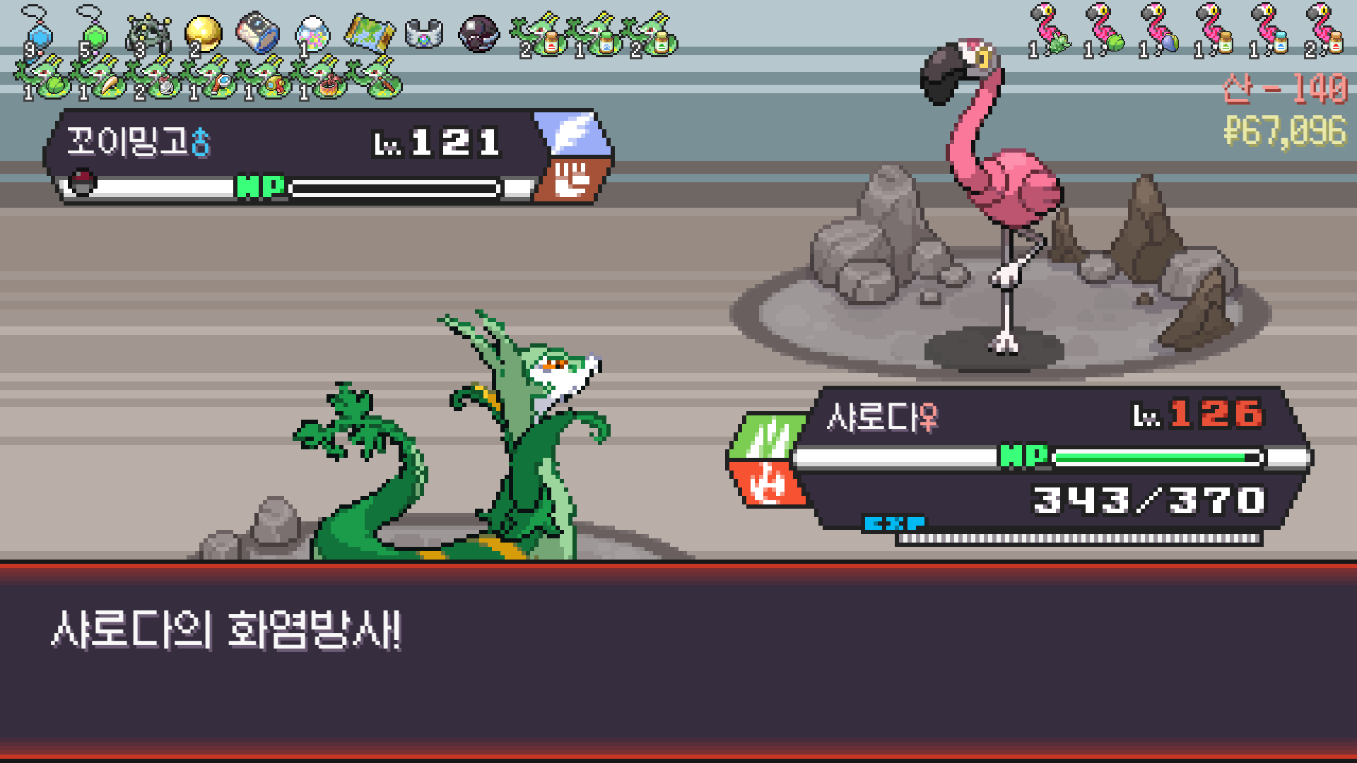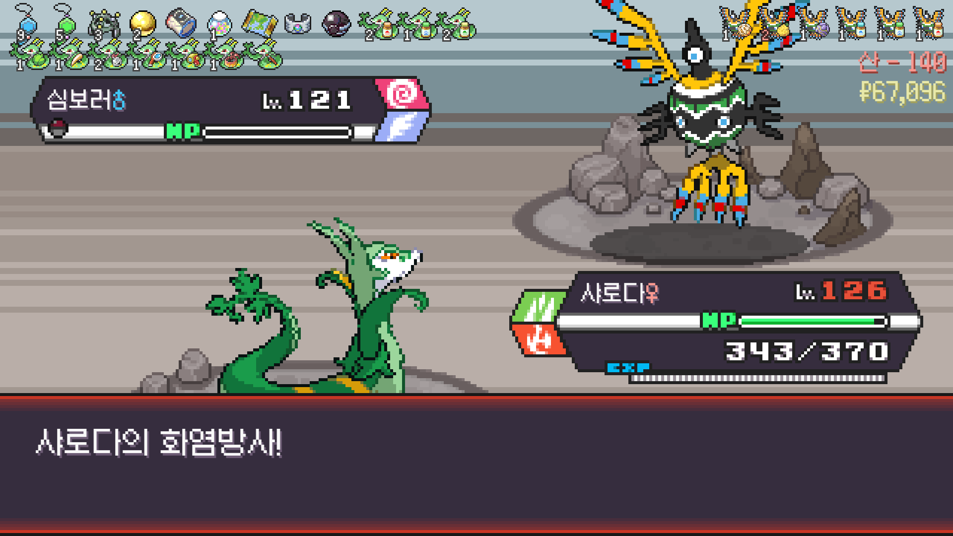 사다이사의 작아지기 3번 후 모래뿜기 + 엄습하는일격으로 1페 넘기고