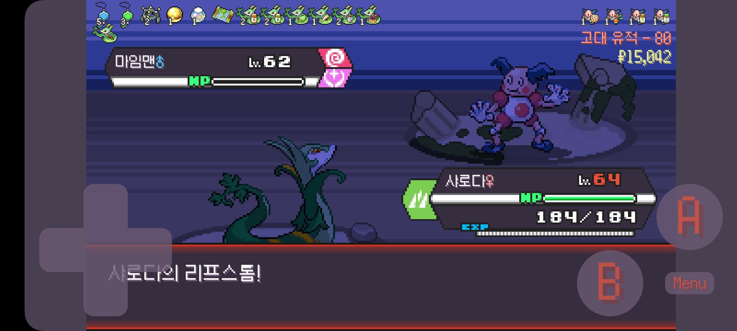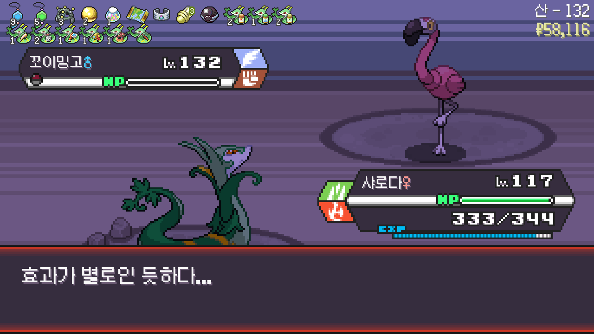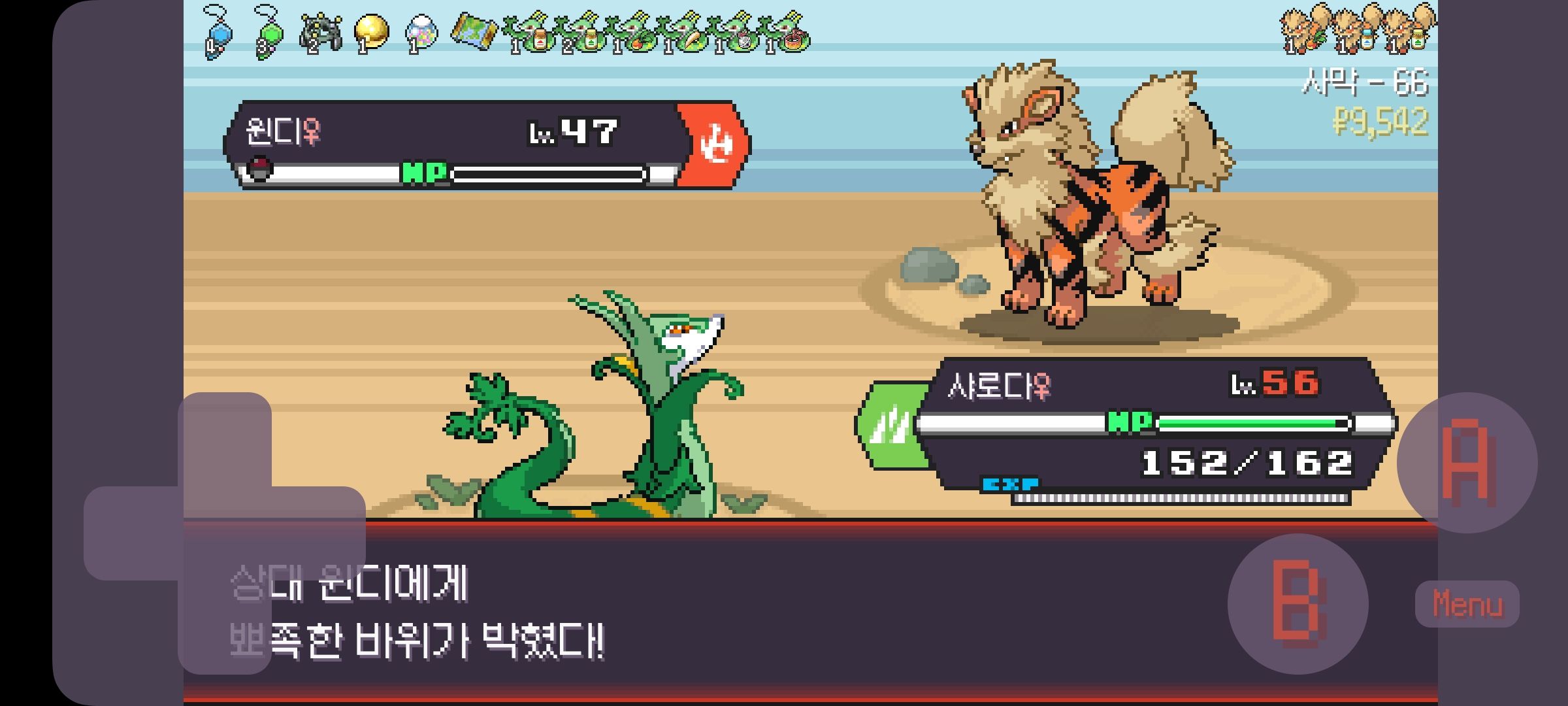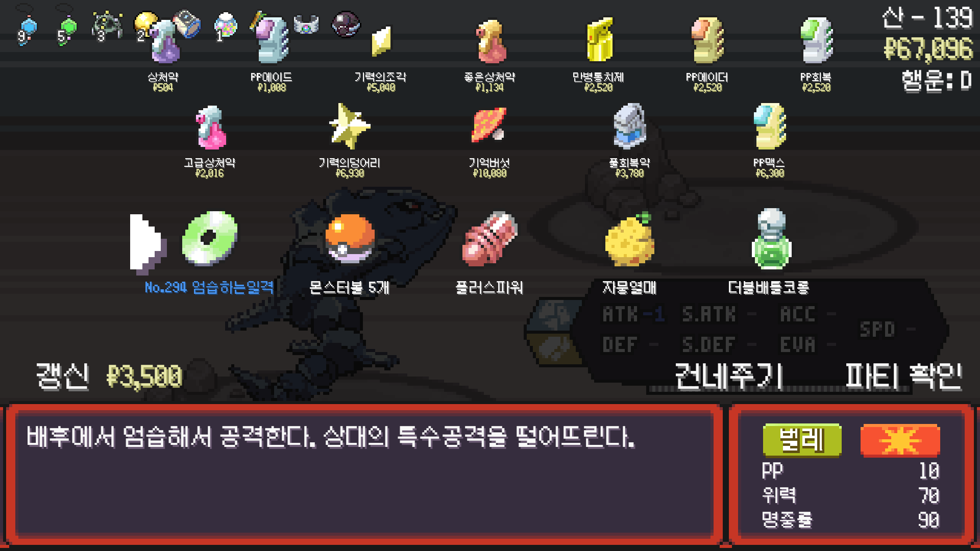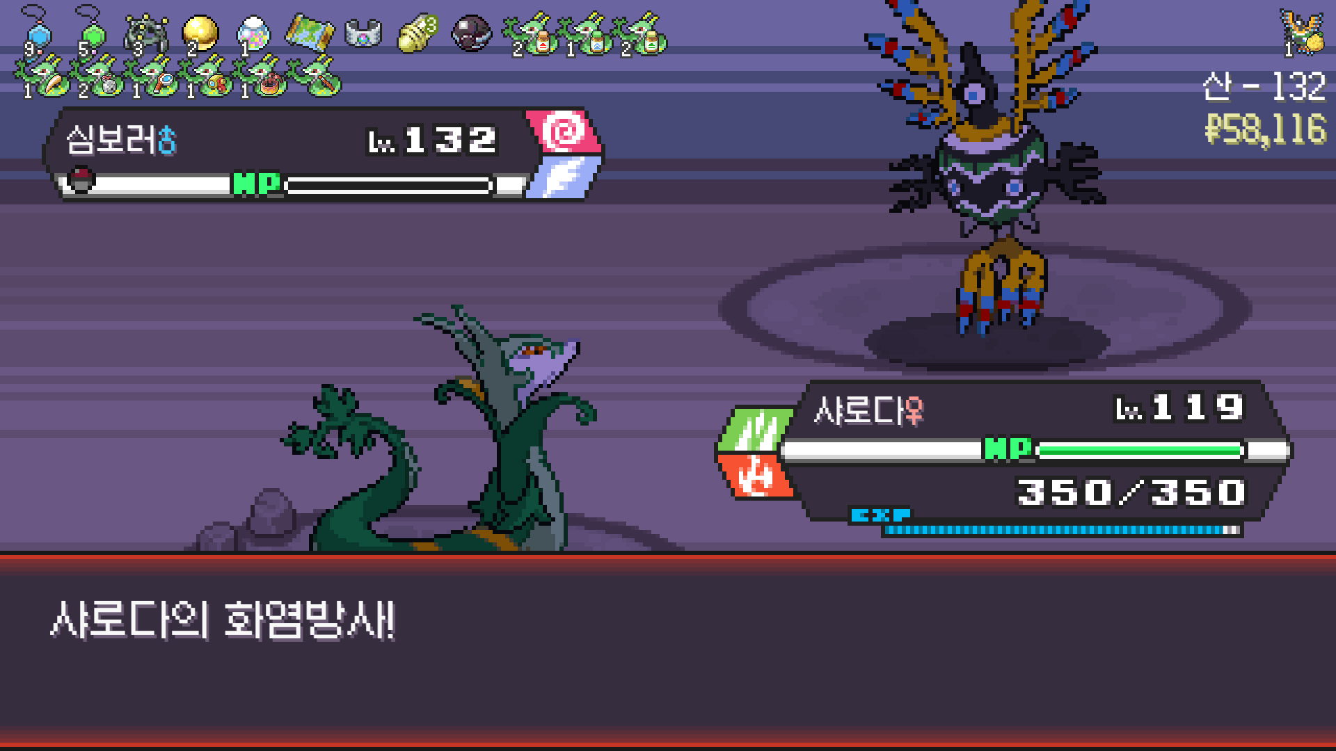 사다이사의 작아지기 3번 후 모래뿜기 + 엄습하는일격으로 1페 넘기고
