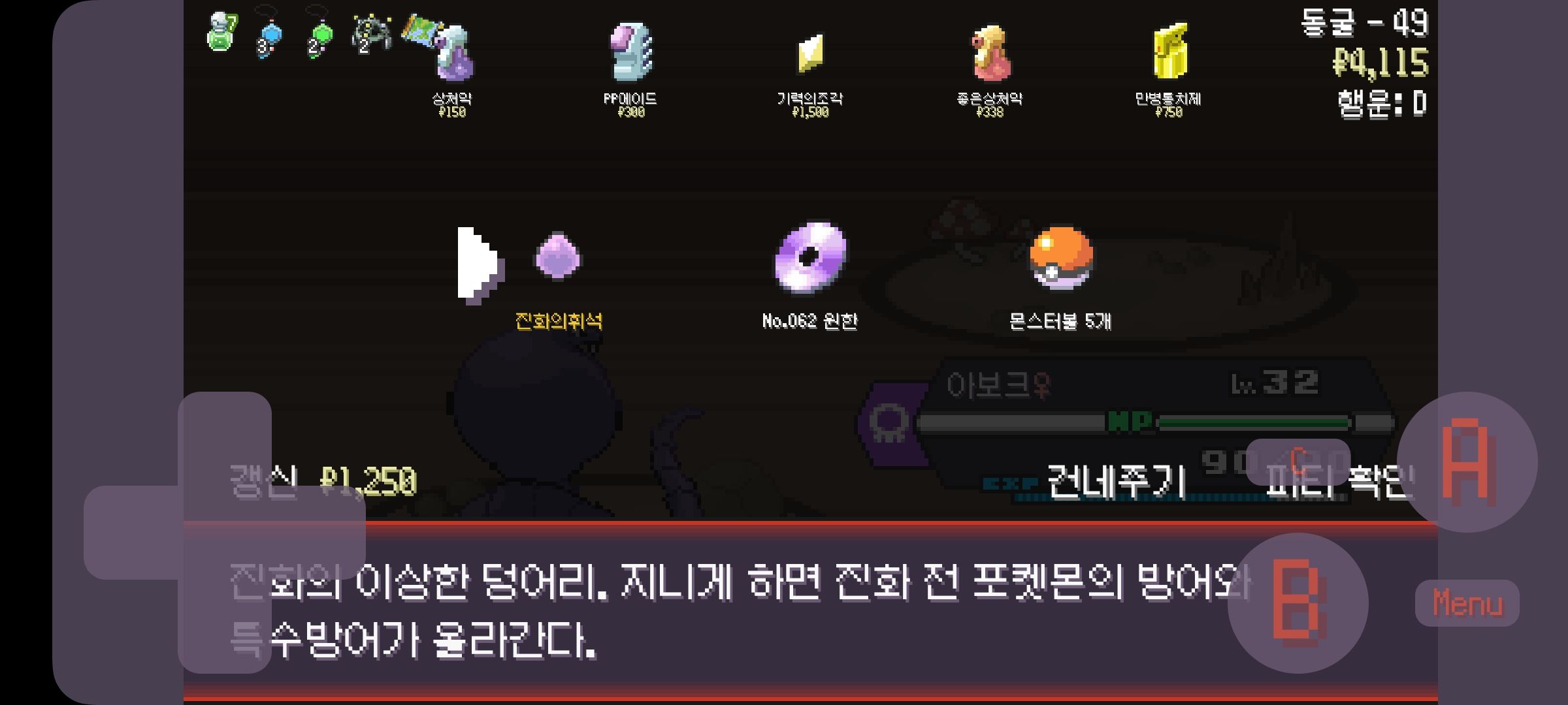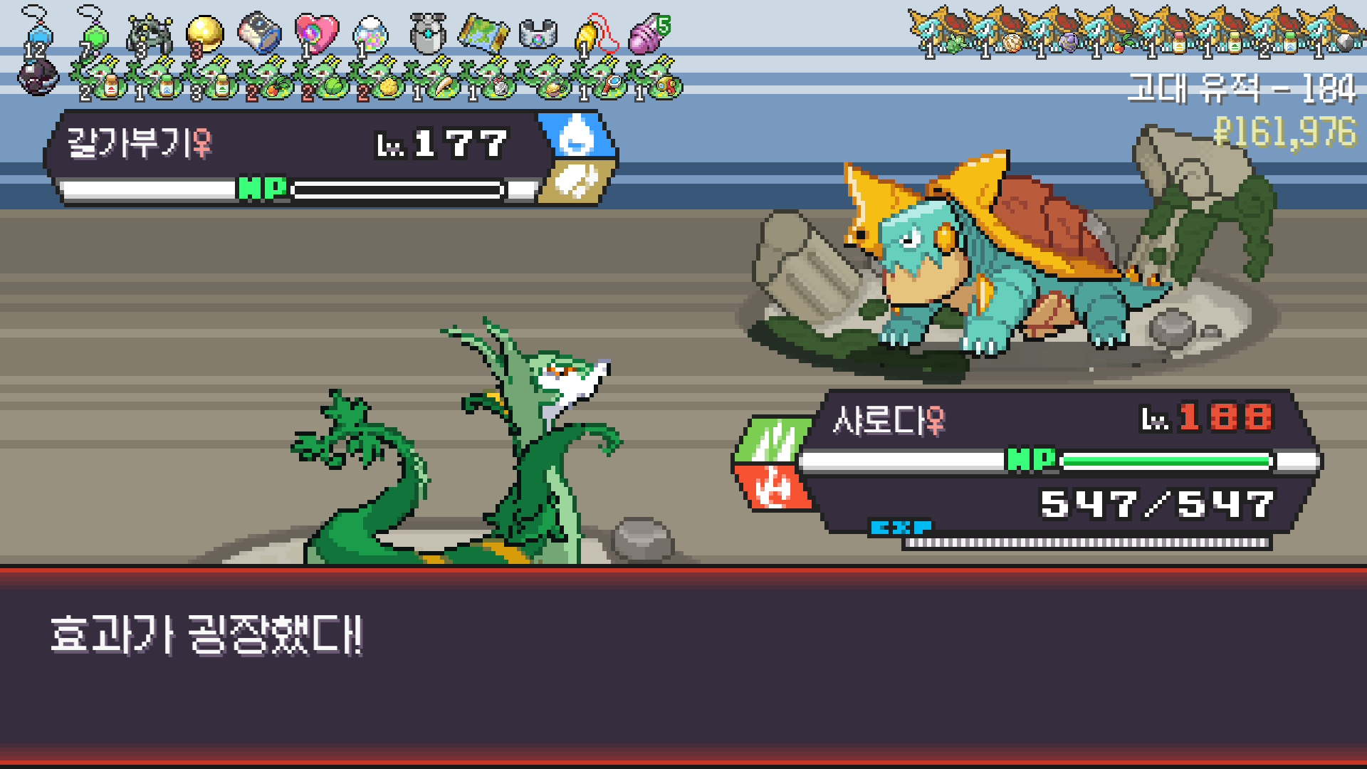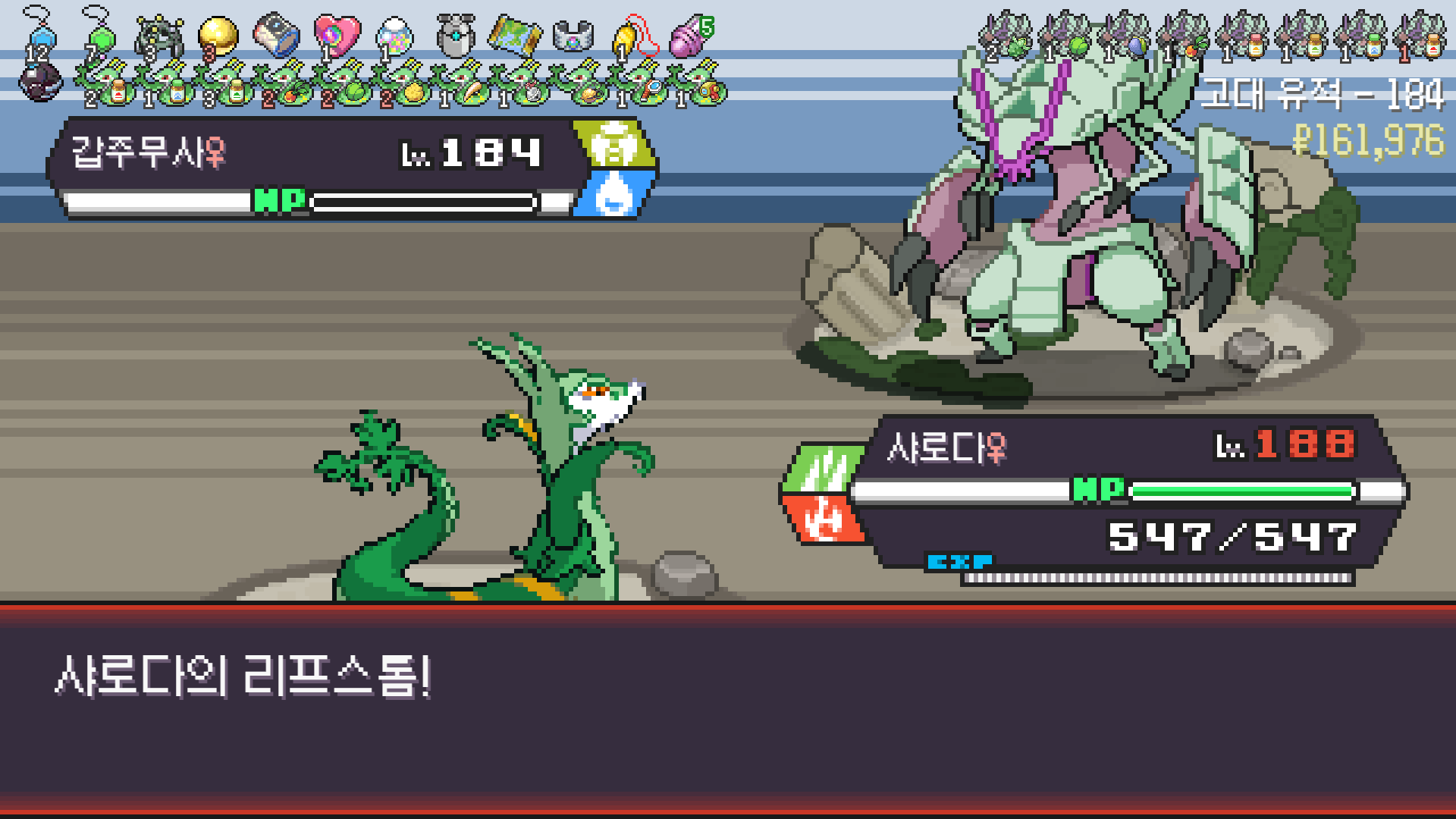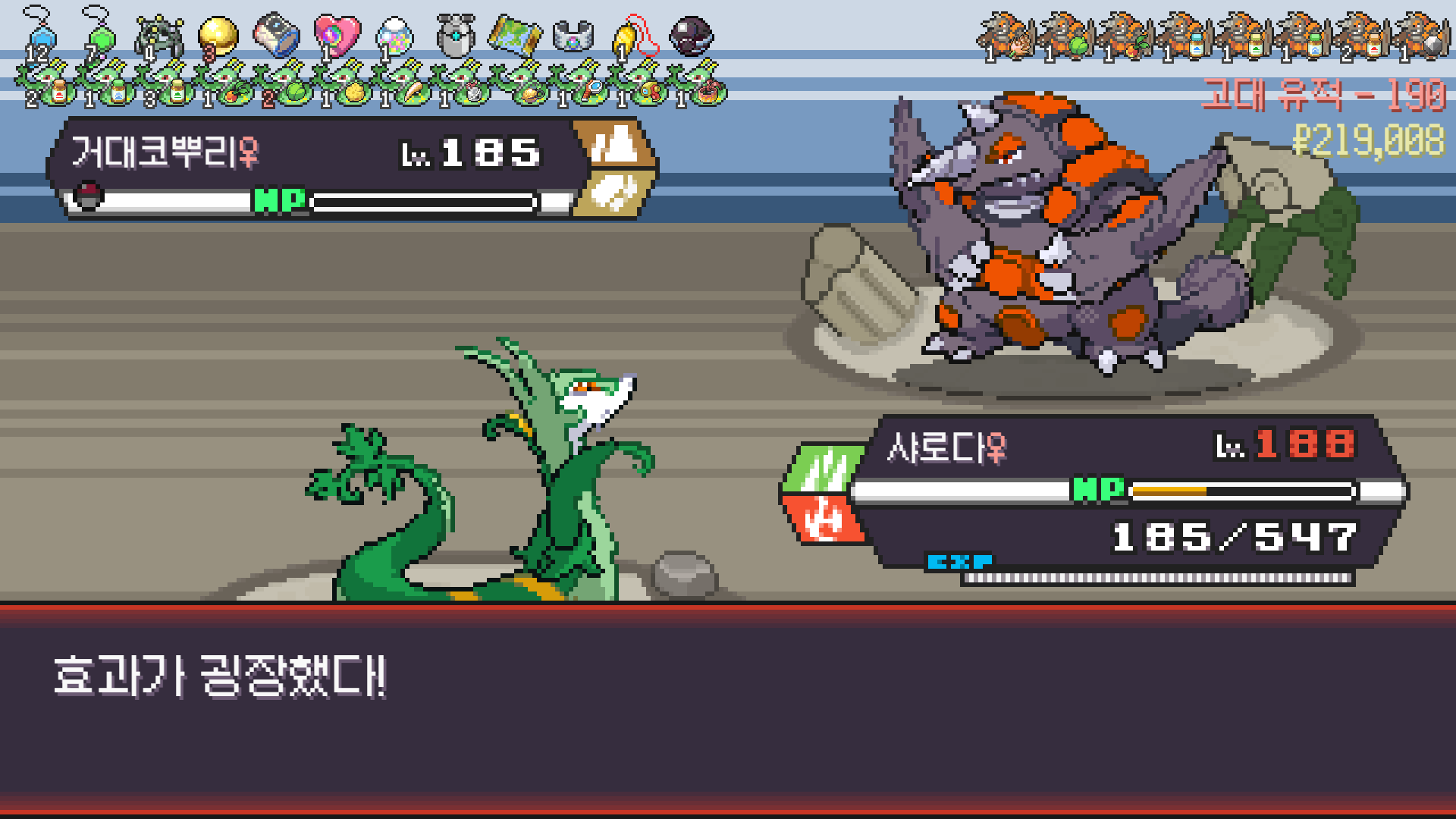 롱스톤 한 마리 더 나올 수 있으니 진화의휘석 집어두고