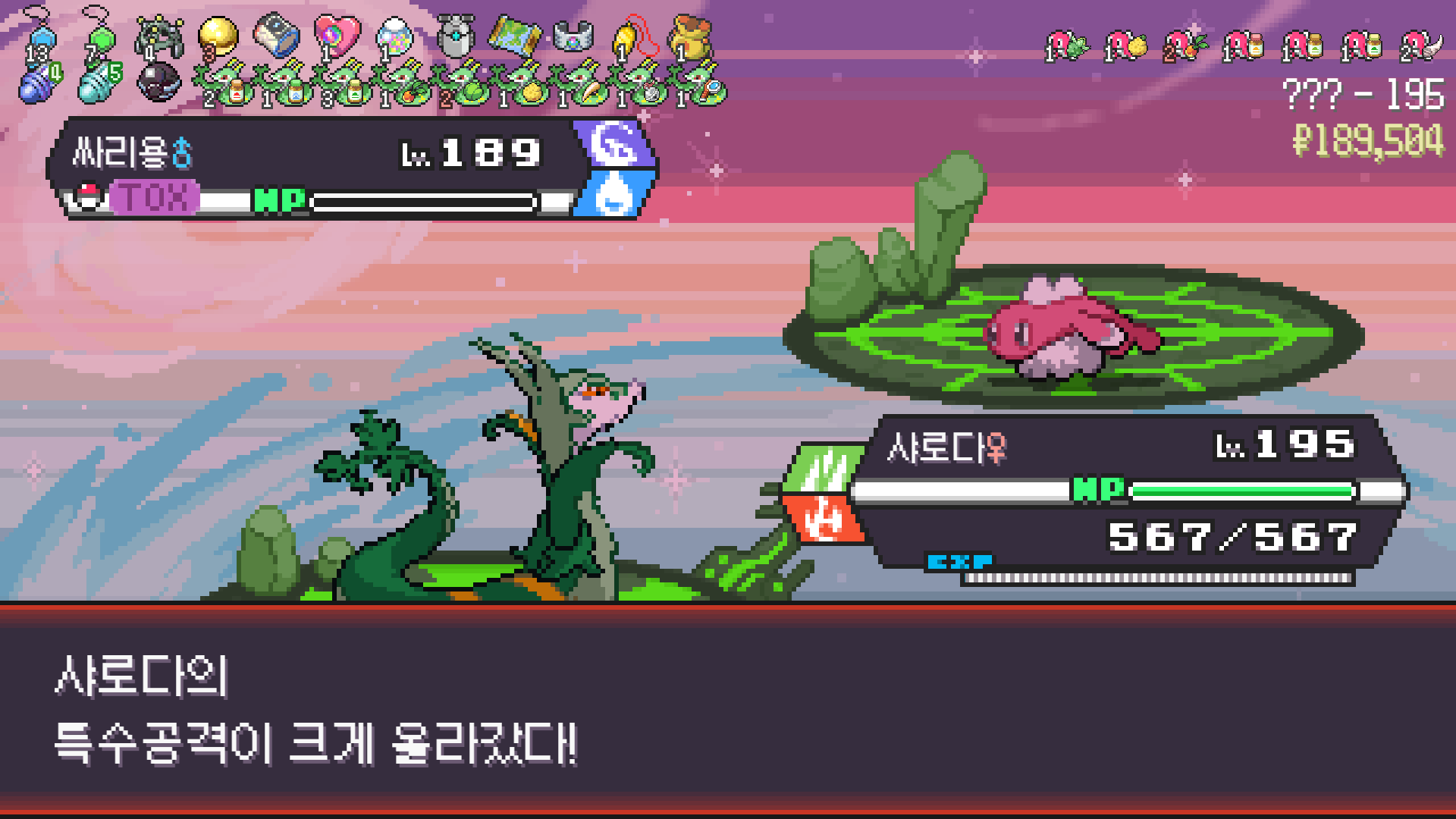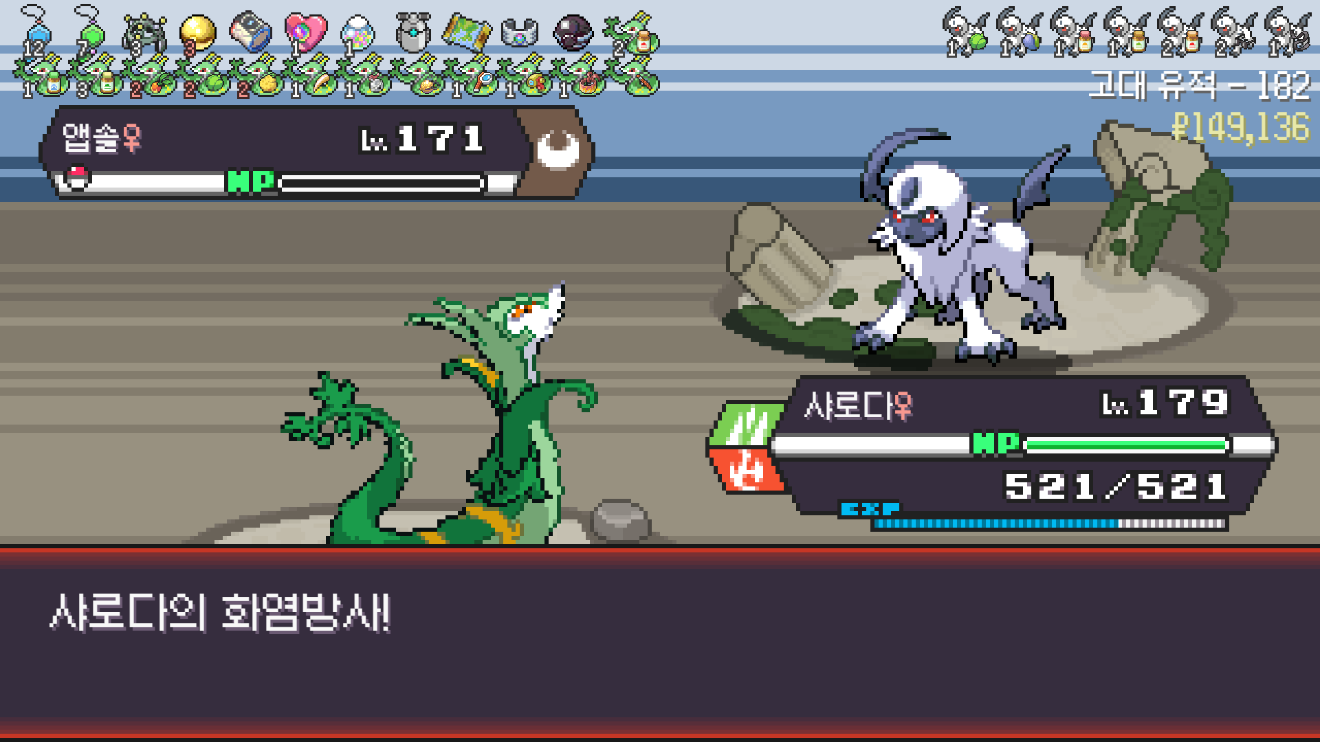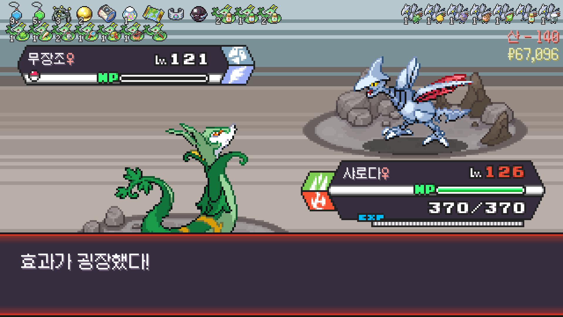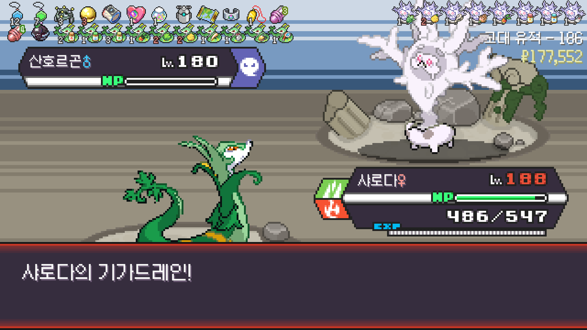 심술꾸러기, 멀티렌즈, 리프스톰 삼신기가 완성되고 타입이 풀/불꽃 변경되니 불도저 마냥 다 밀어버린 에이스