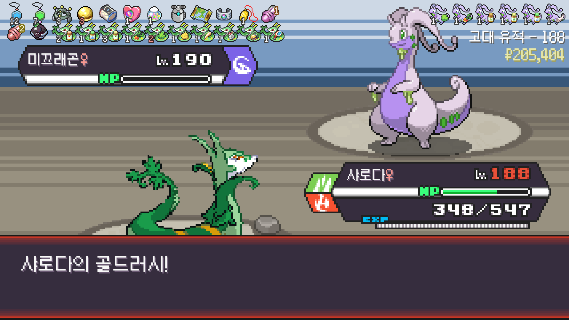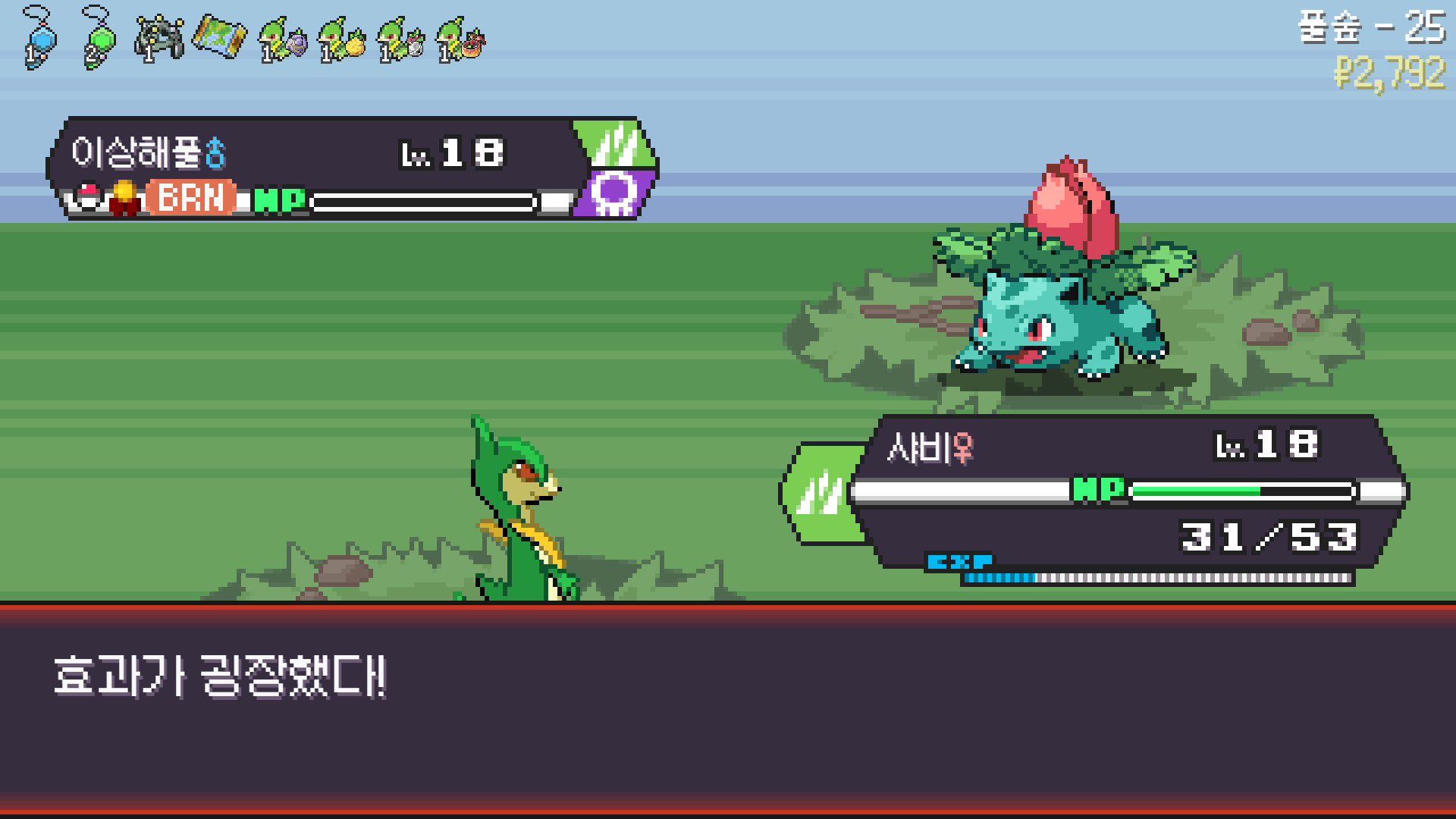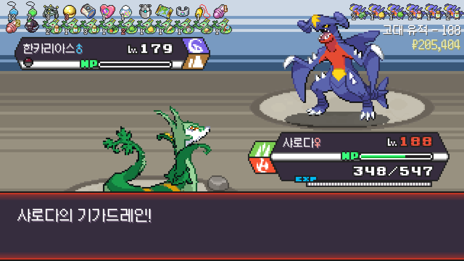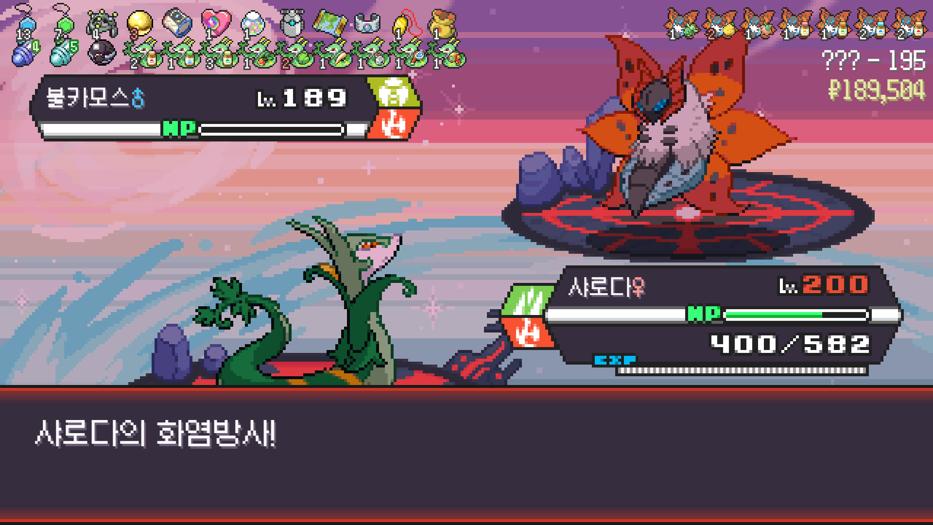 심술꾸러기, 멀티렌즈, 리프스톰 삼신기가 완성되고 타입이 풀/불꽃 변경되니 불도저 마냥 다 밀어버린 에이스