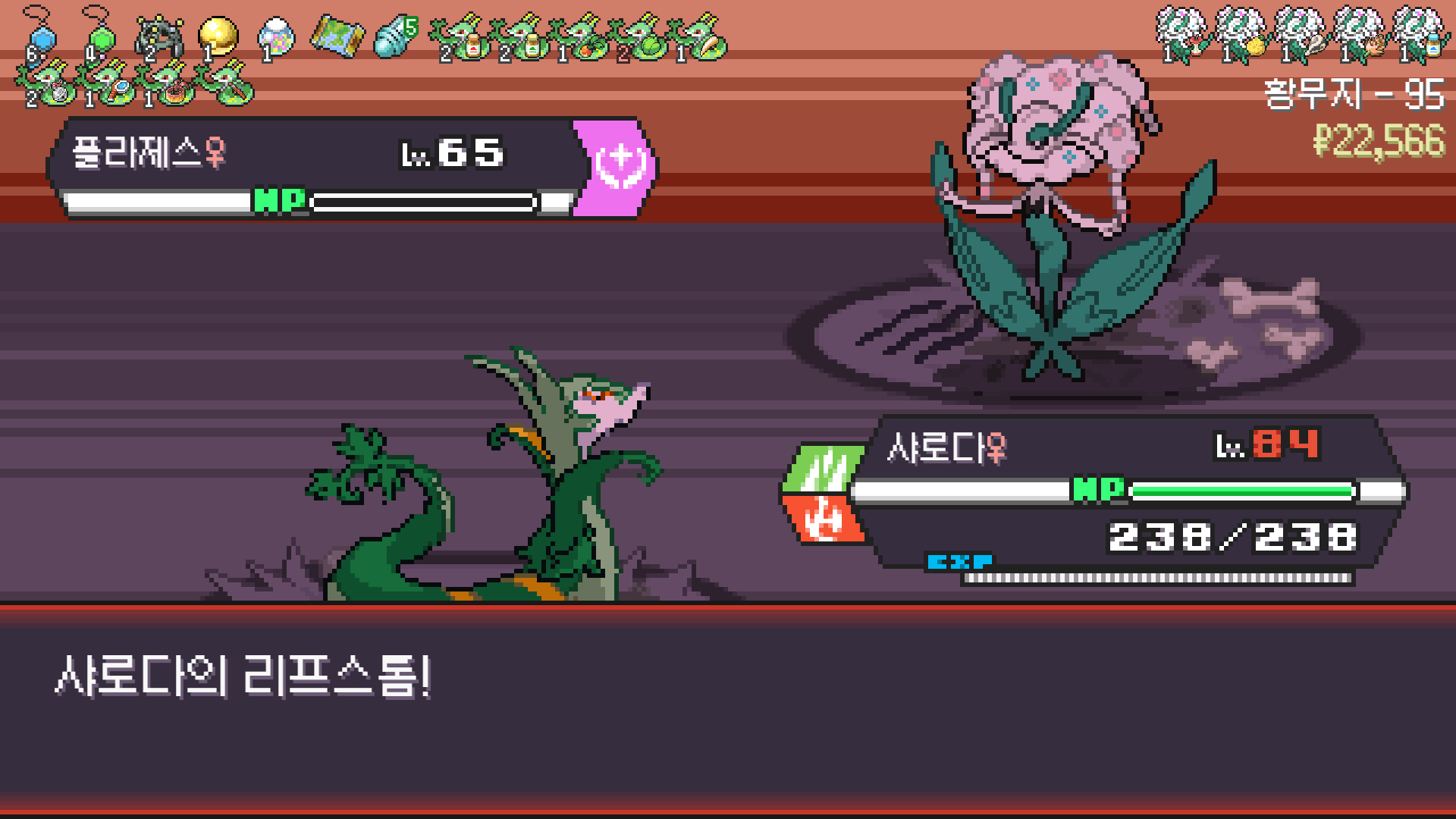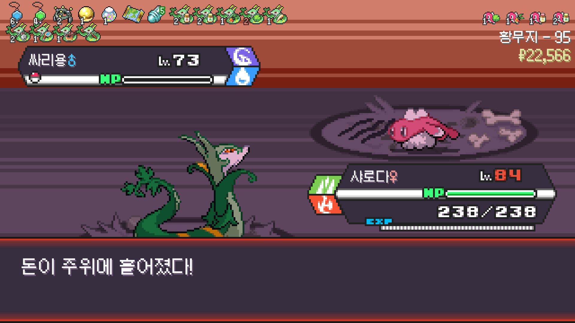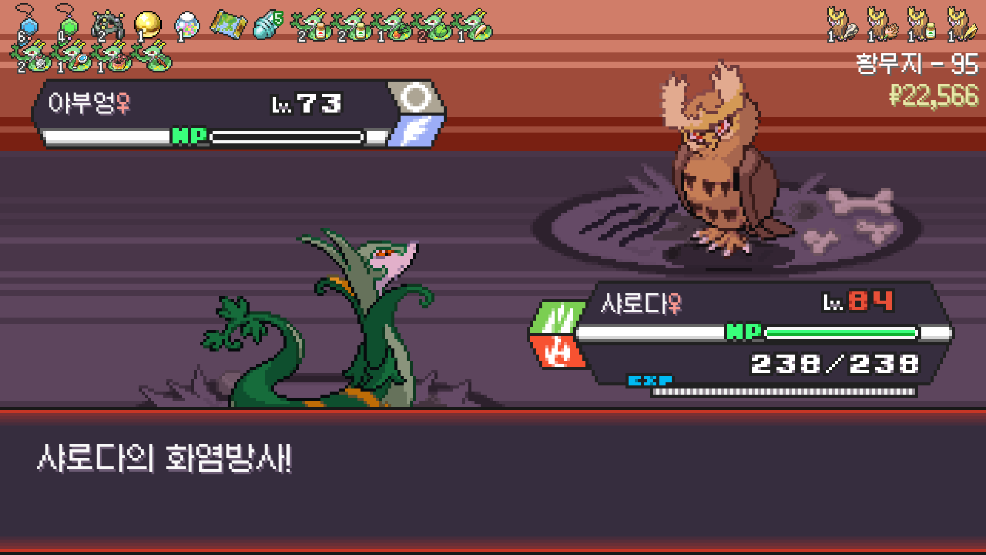 2번 방문한 황무지에서 삼삼드래가 안 나와서 6마리 풀 스쿼드를 못 채운게 아쉽지만
