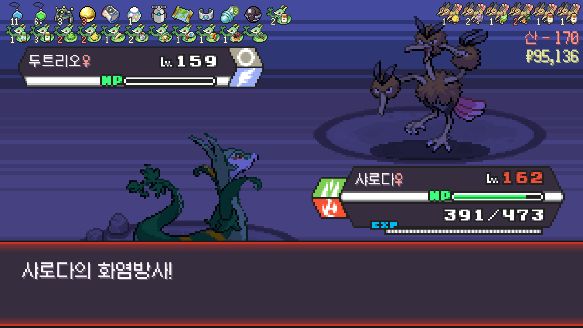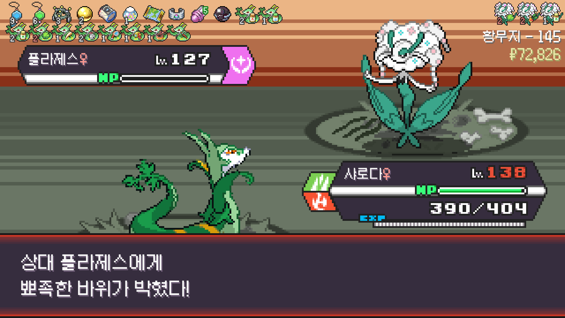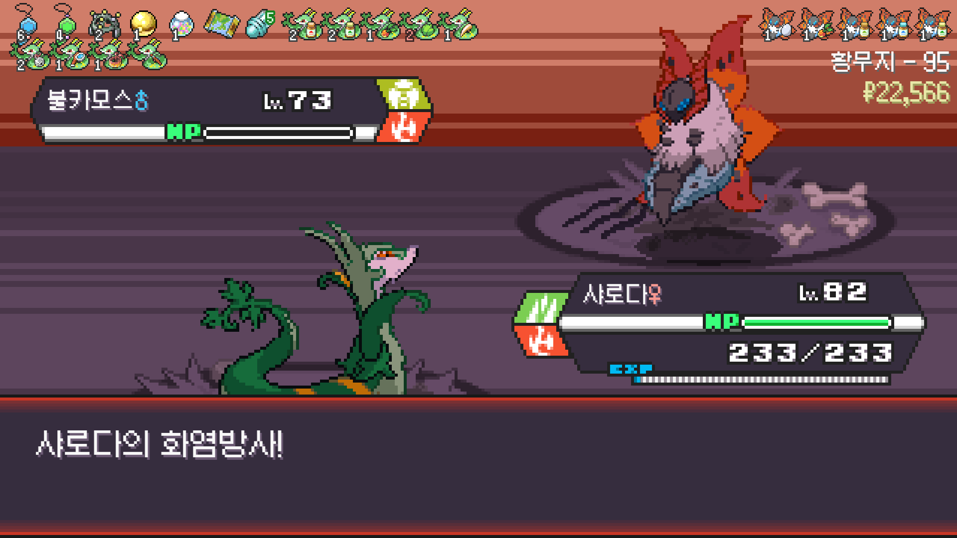 2번 방문한 황무지에서 삼삼드래가 안 나와서 6마리 풀 스쿼드를 못 채운게 아쉽지만