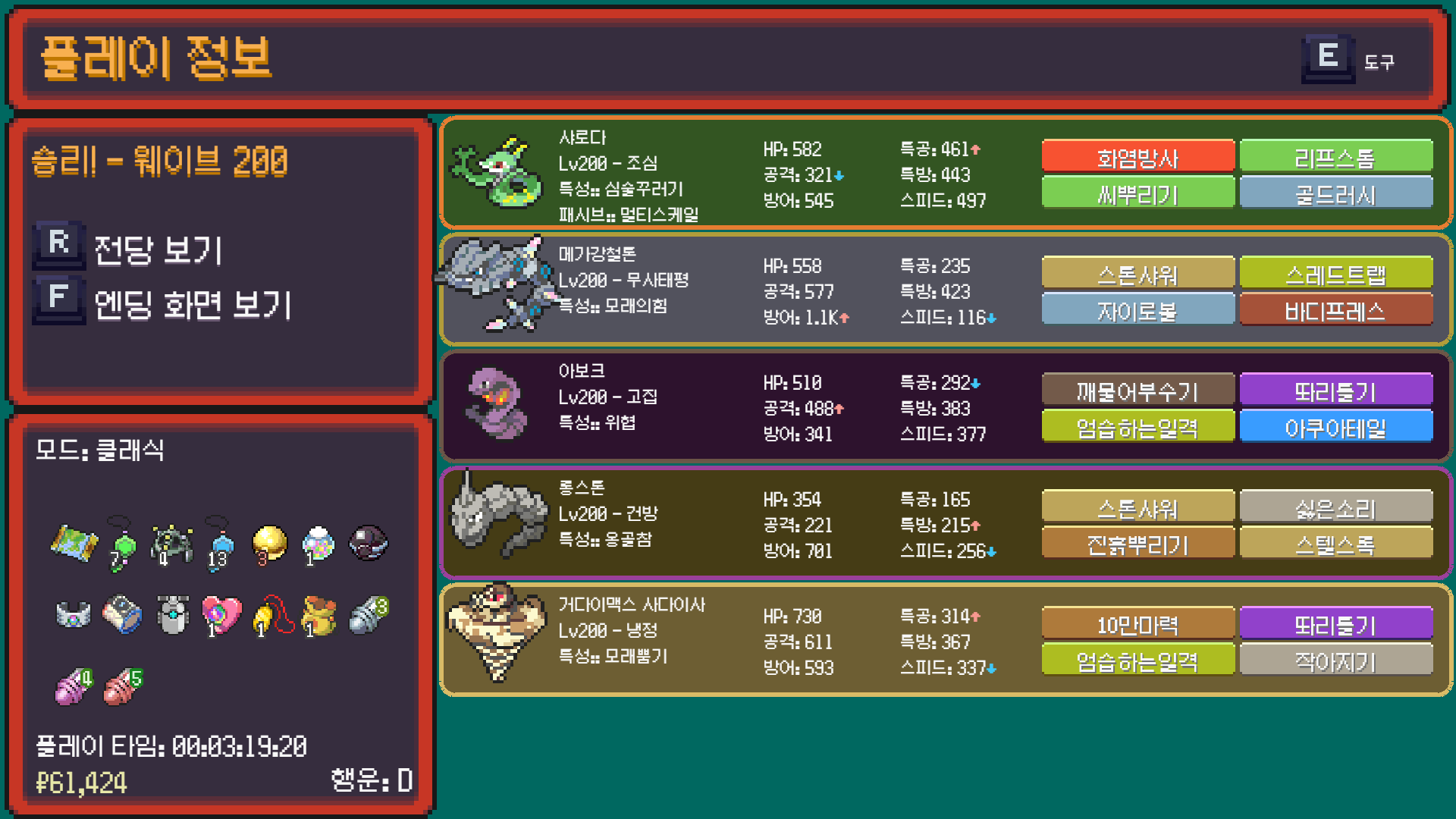 나머지 멤버들 스펙이 짱짱해서 별 위기 없이 클리어했다