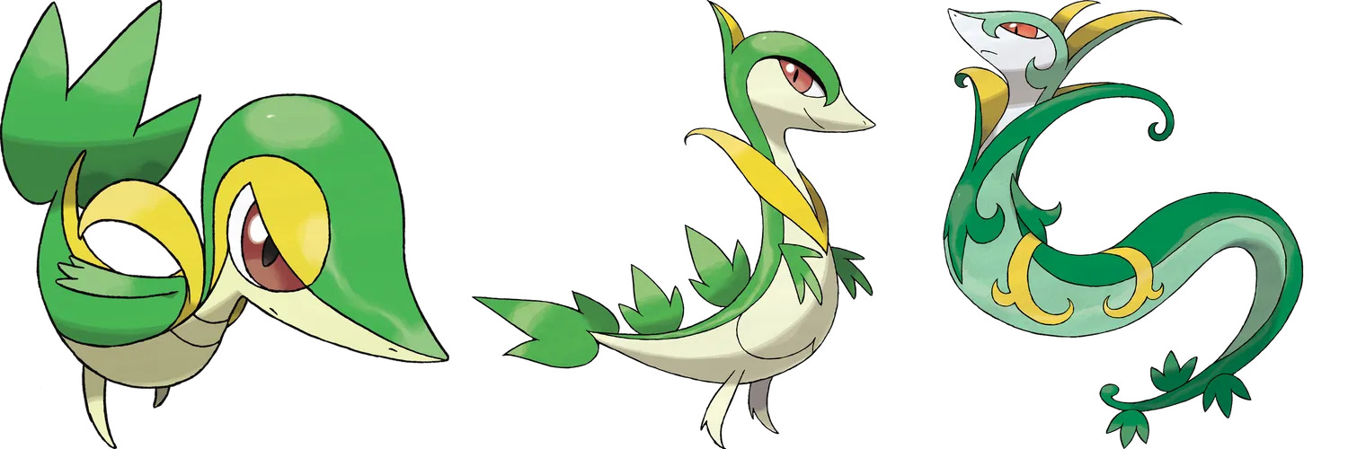주리비얀 - 샤비 - 샤로다 : 풀뱀 포켓몬