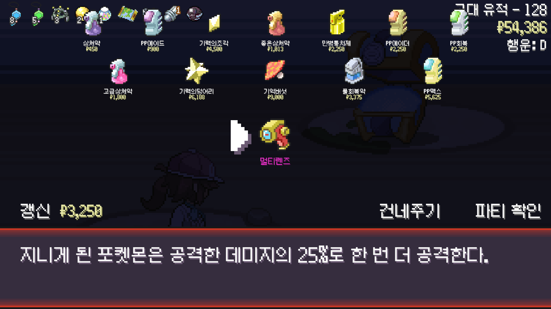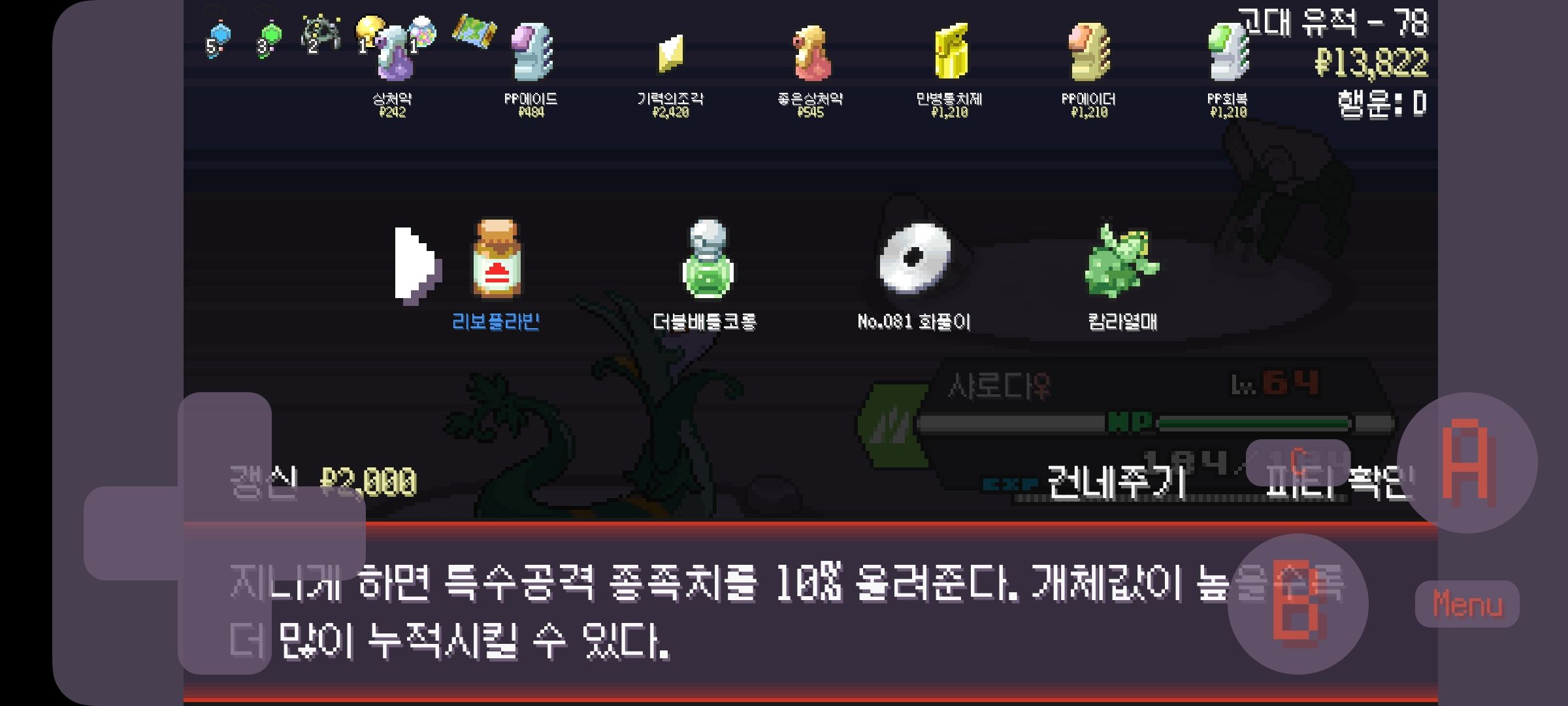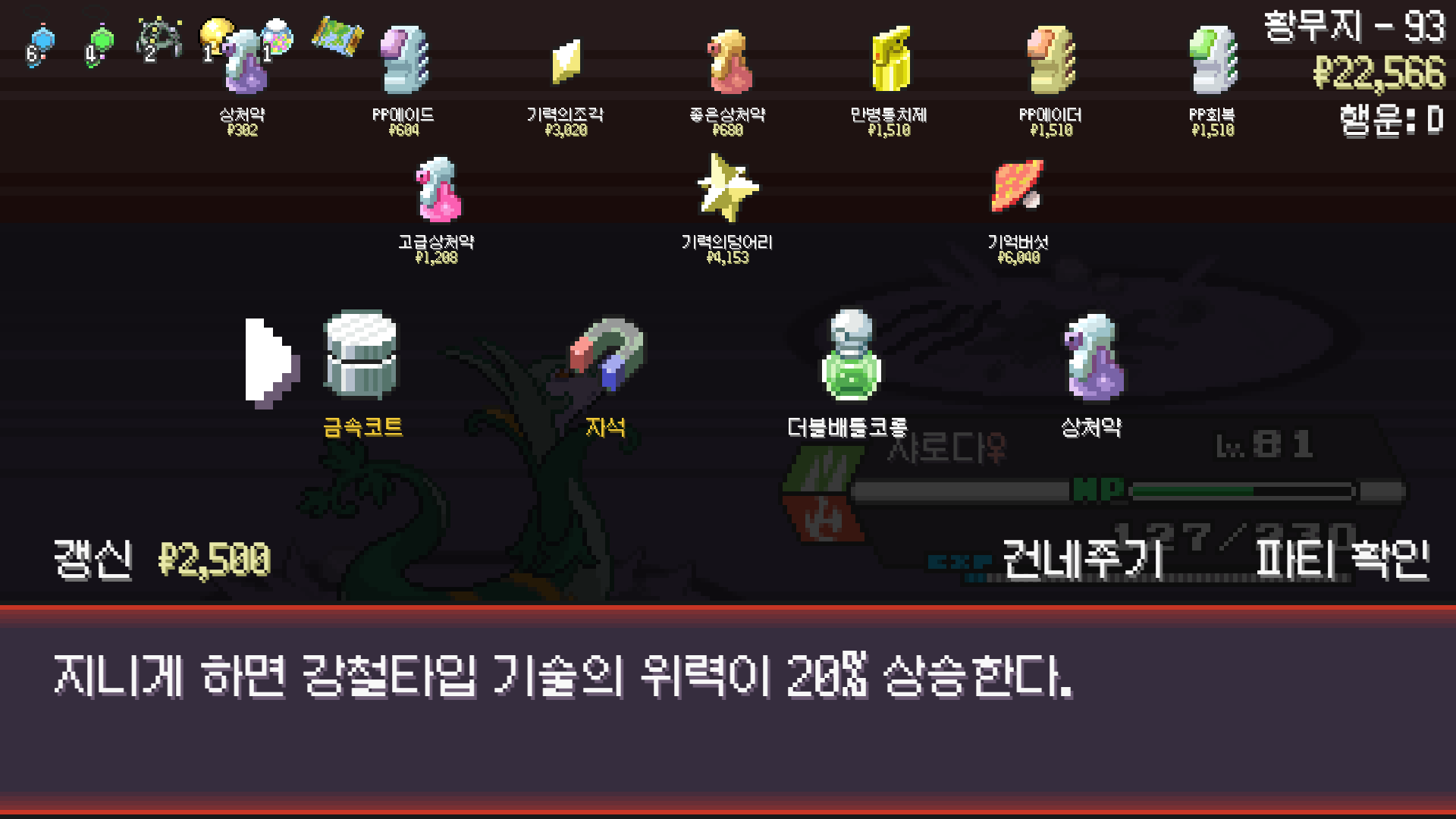 쌓인 사탕을 사용해서 패시브 멀티스케일 해금하고 알 기술 화염방사와 골드러시들고 시작하니