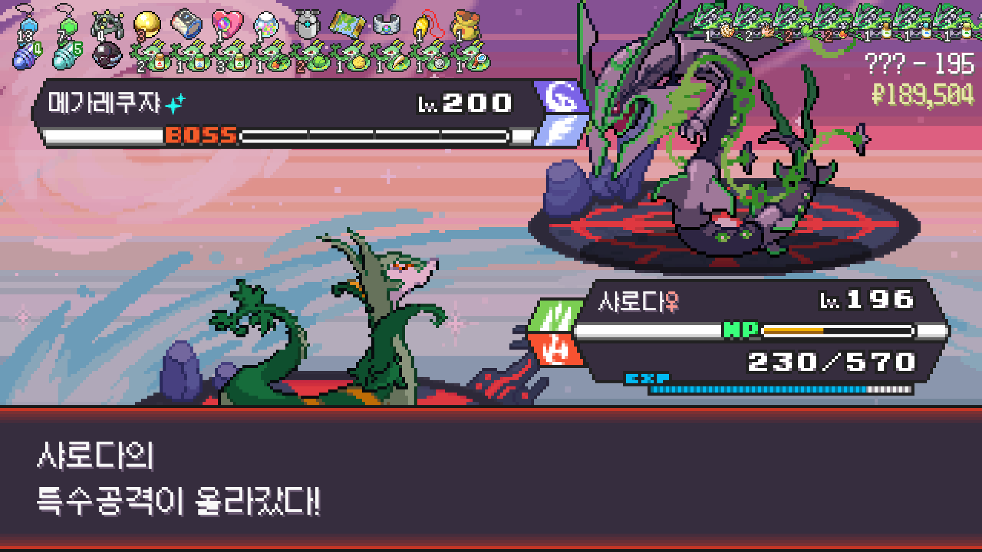 스피드업 + 멀티스케일 샤로다가 레쿠쟈 2방에 도륙내서 무난하게 클리어한 라이벌전