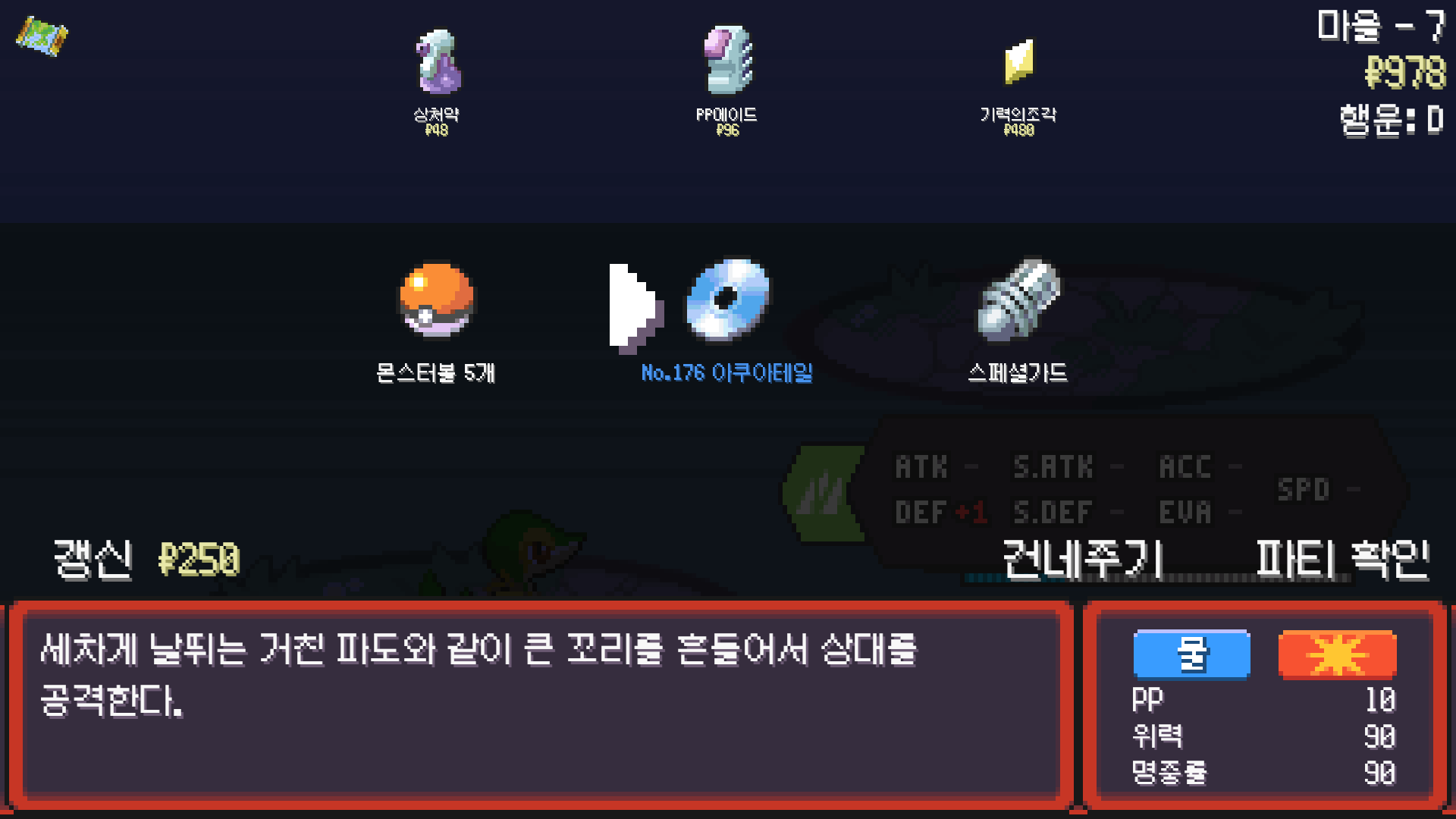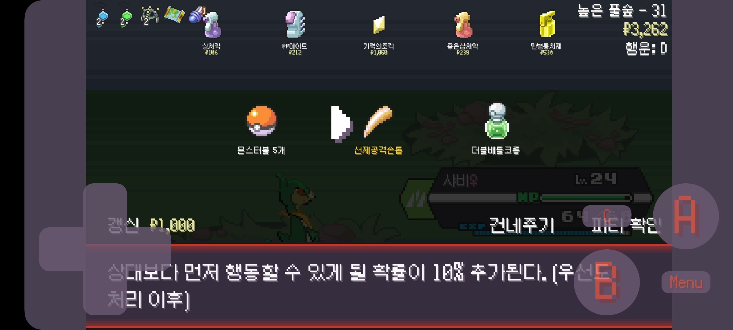 첫 관장은 물이라 쉽게 클리어