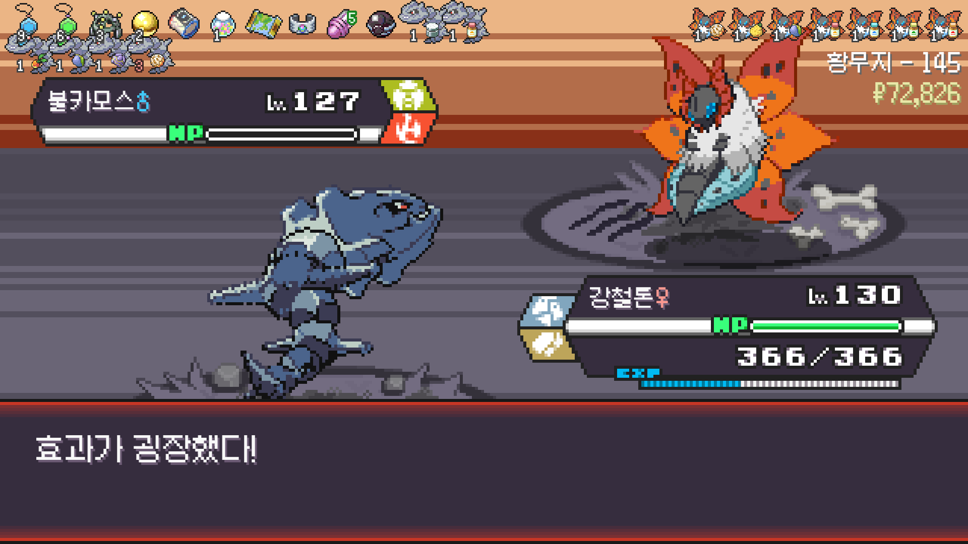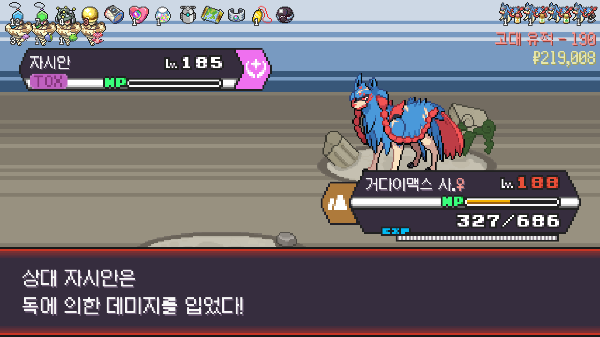 메가강철톤은 물리약점찔려도 기스정도 나는 우월한 방어력을 활용해 교체 받으면서 잔반처리하는 준에이스로 썼다