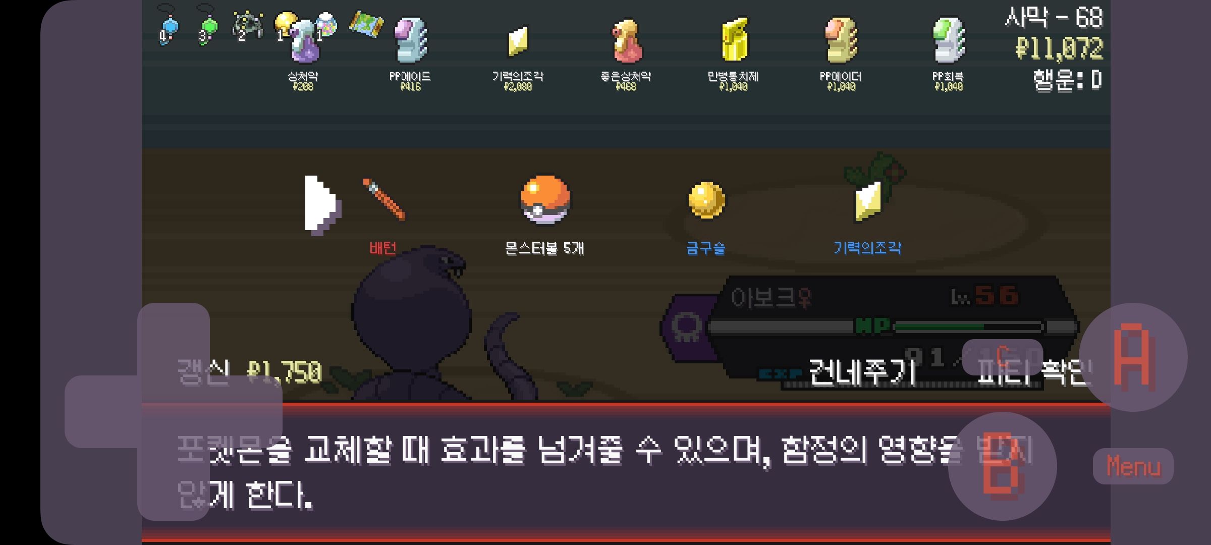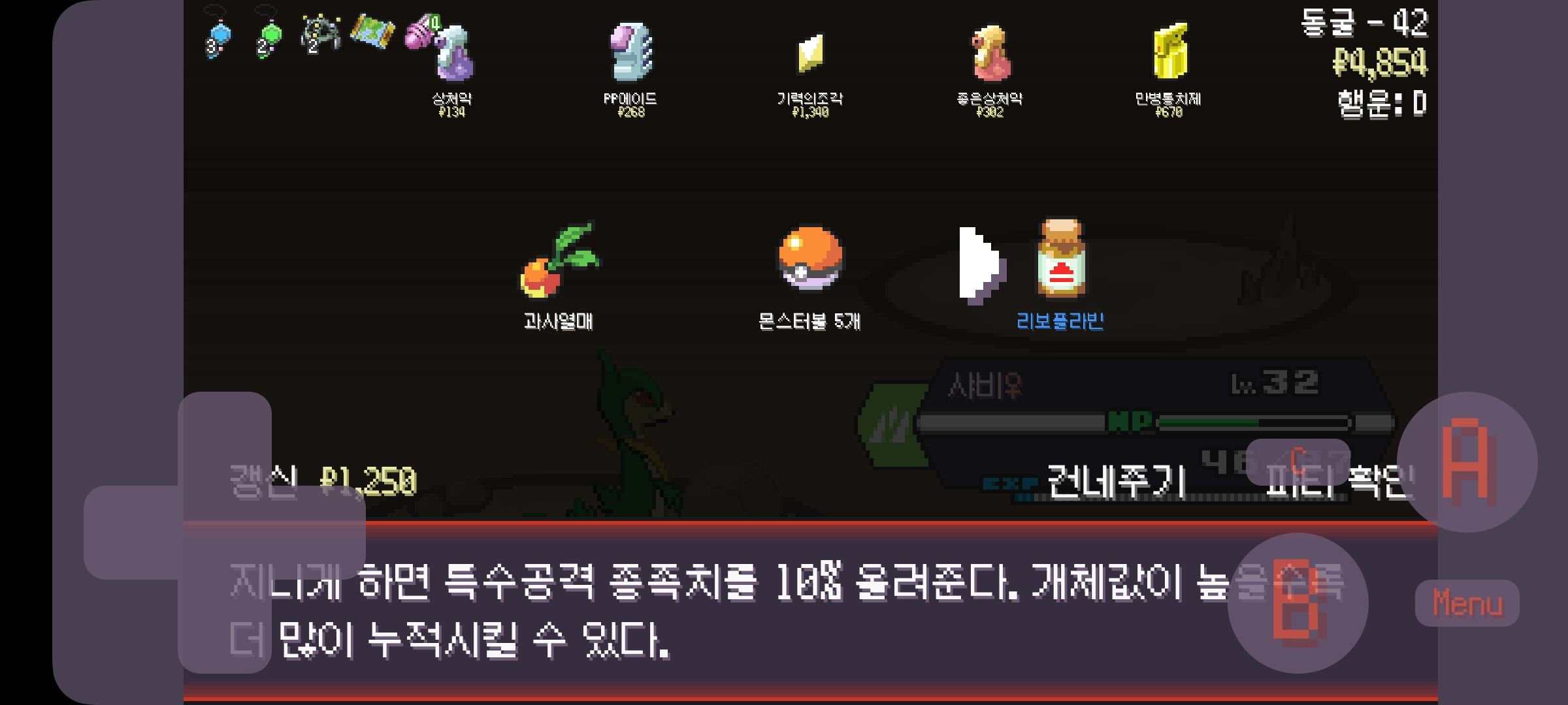 마을에서 기분좋게 지도와 아보 챙기고 시작