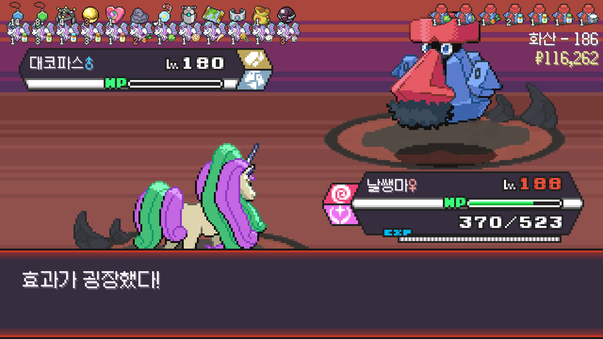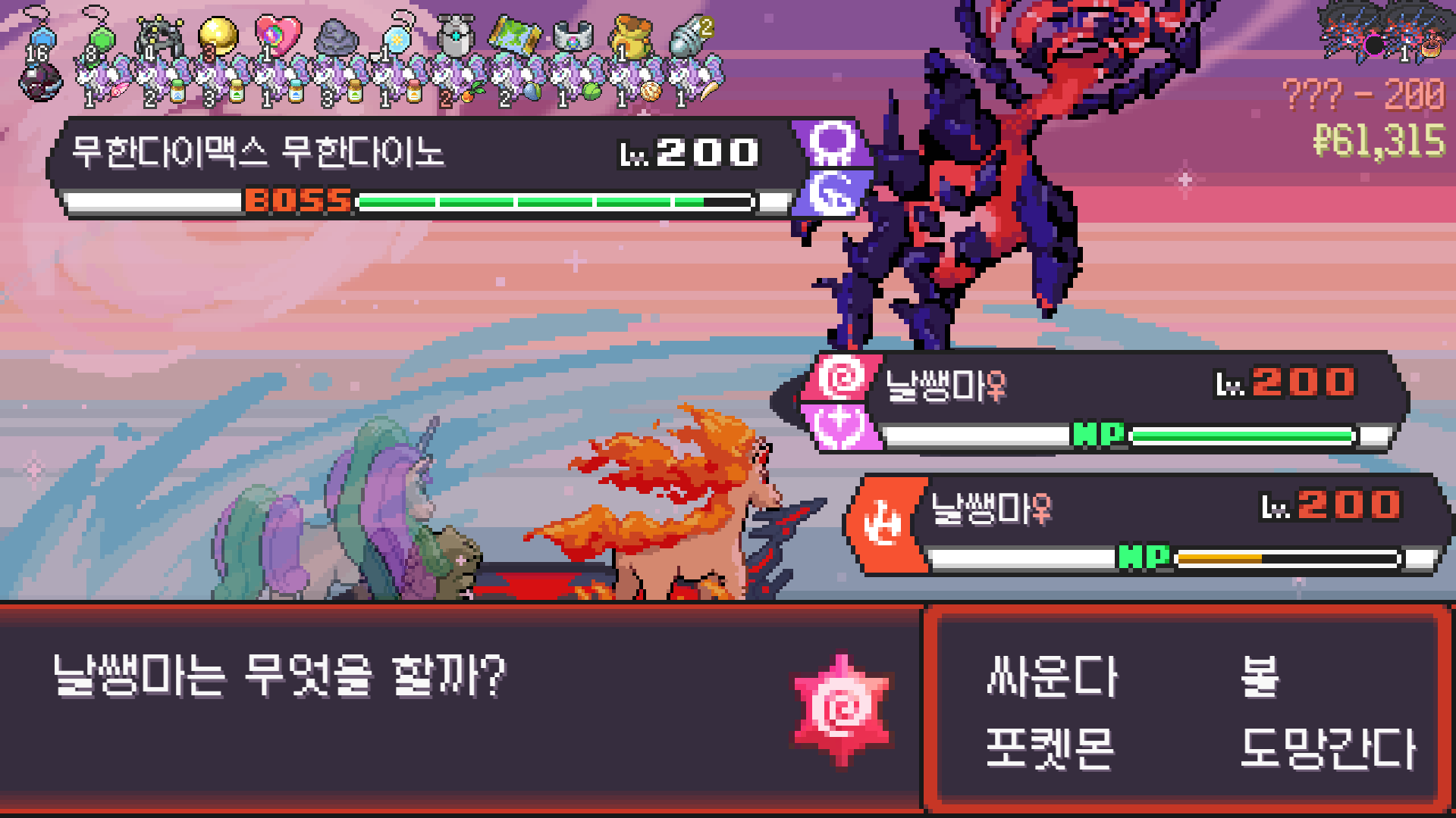화산에서 합류했지만 친구 가라르 날쌩마가 미쳐 날뛰어서 딱히 한게 없는 무한다이노 용 서포터2