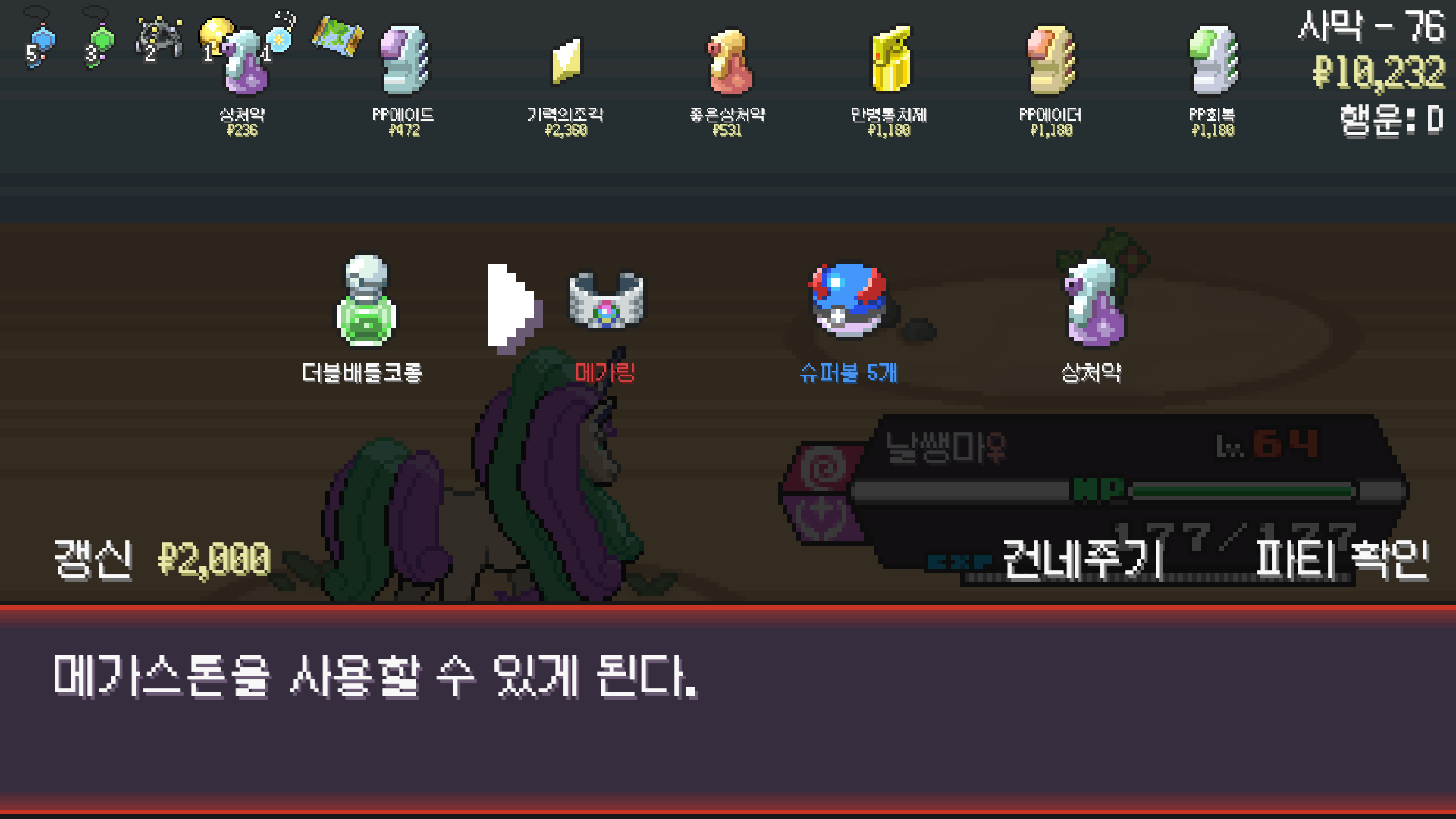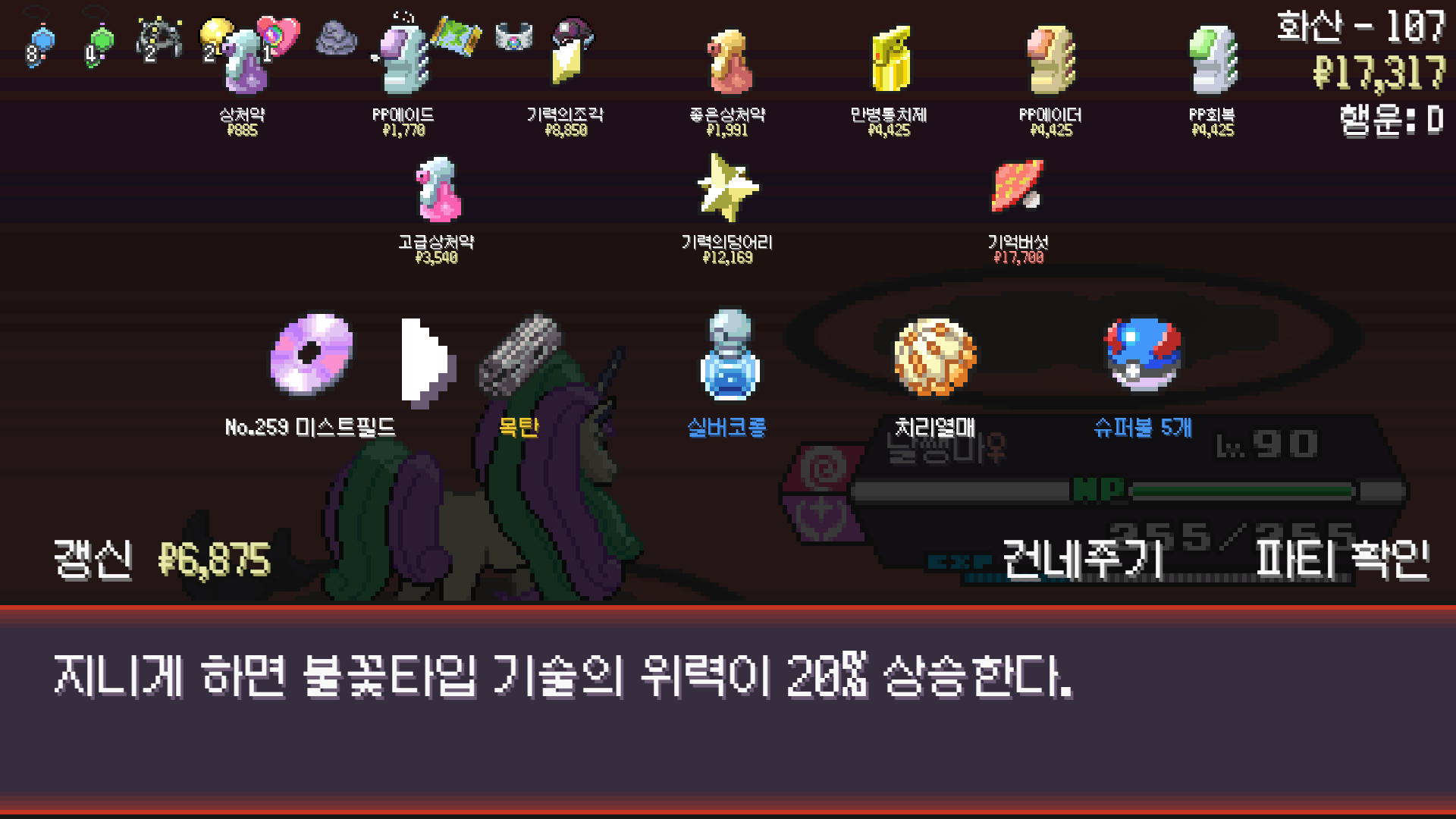 미끄메라 추가한 라이벌을 잡으니 부활의씨앗을 훈지받았다