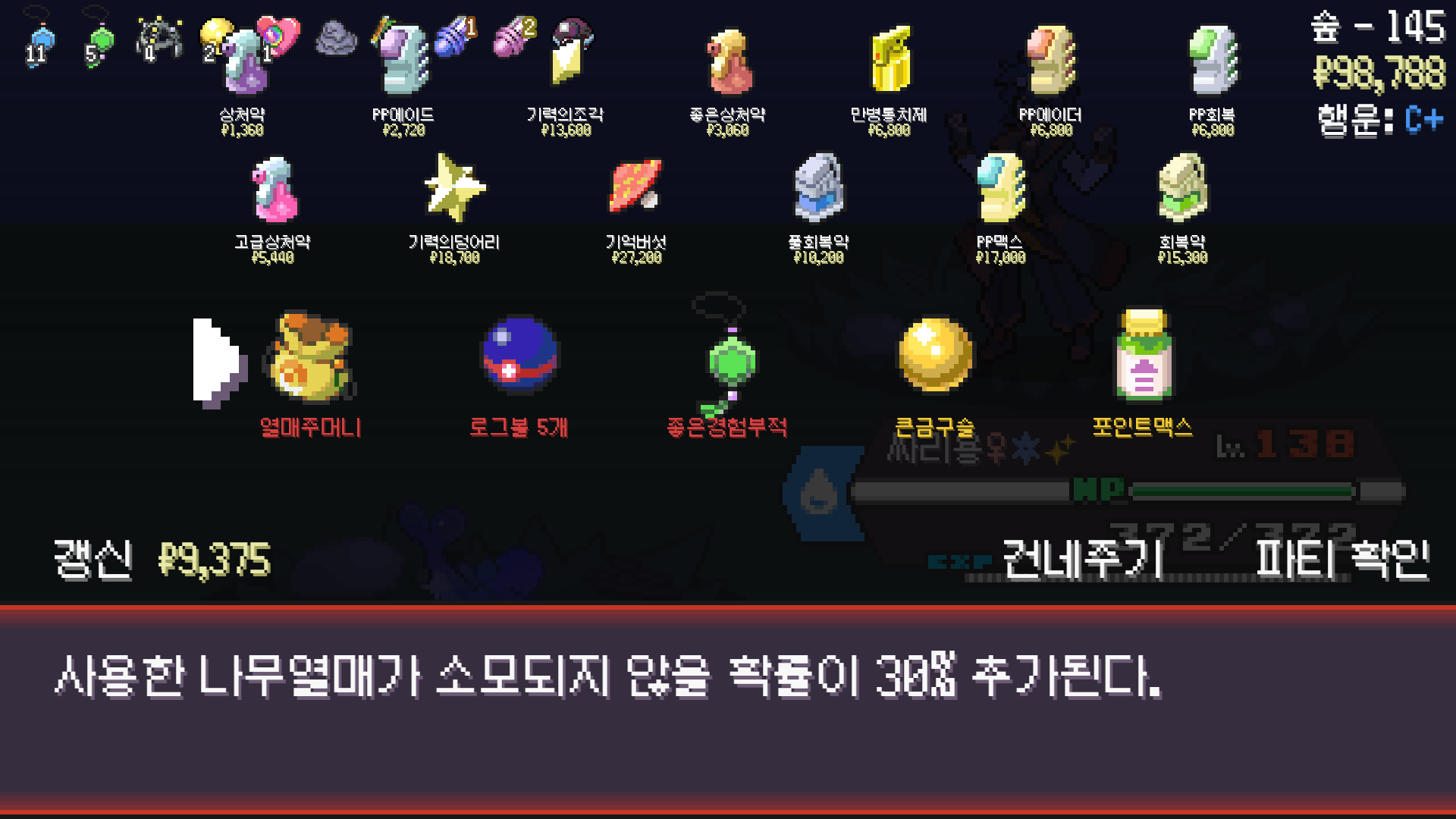 먹밥 3개니 평온의방울로 치유의부적 교환