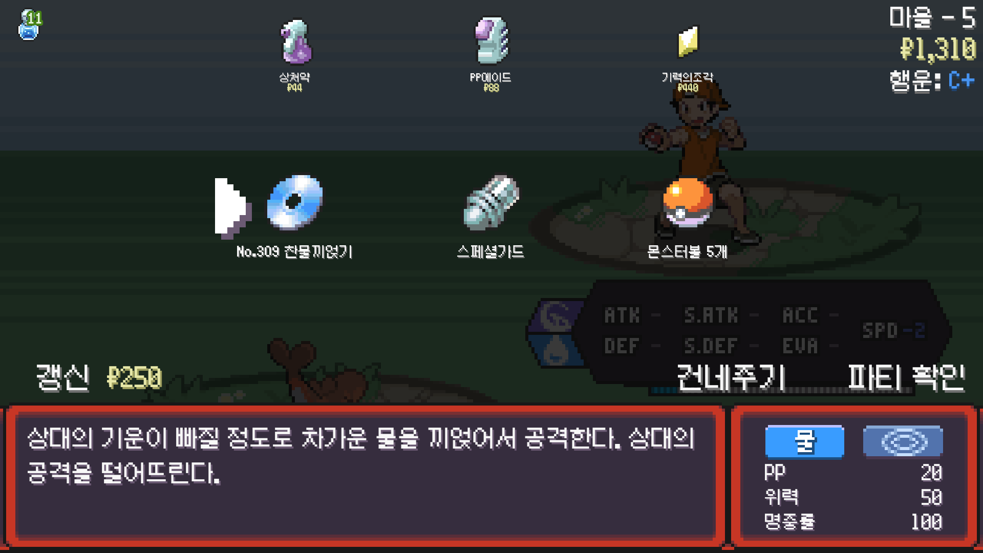 물대포보다 위력 10 높은 찬물끼얹기로 변경