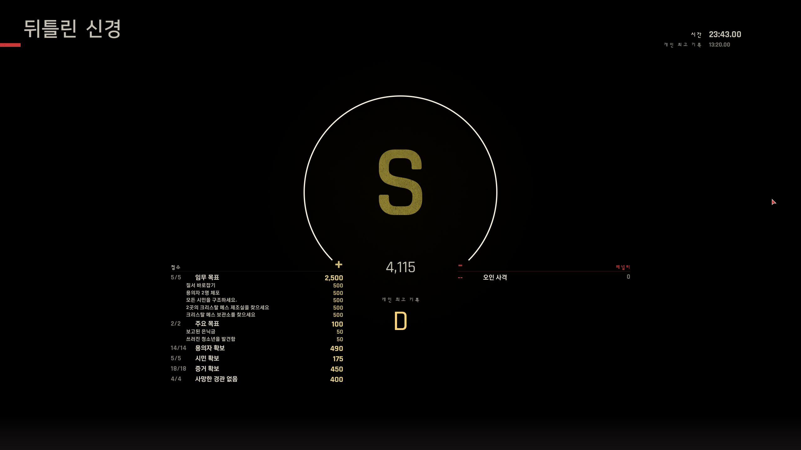 | Ready or Not: Dark Waters S랭크 클리어 (3) | 2025.07.11 |
