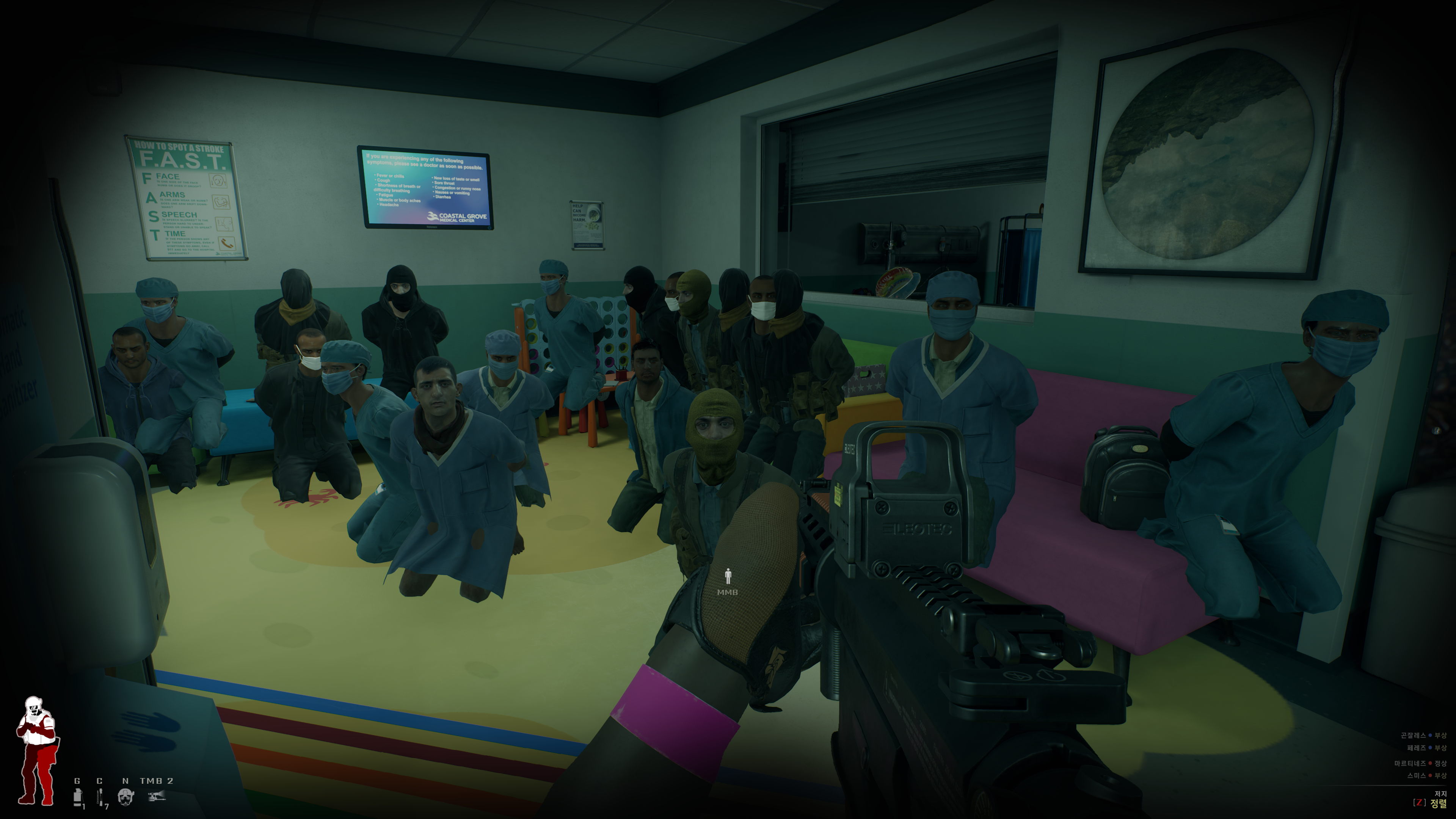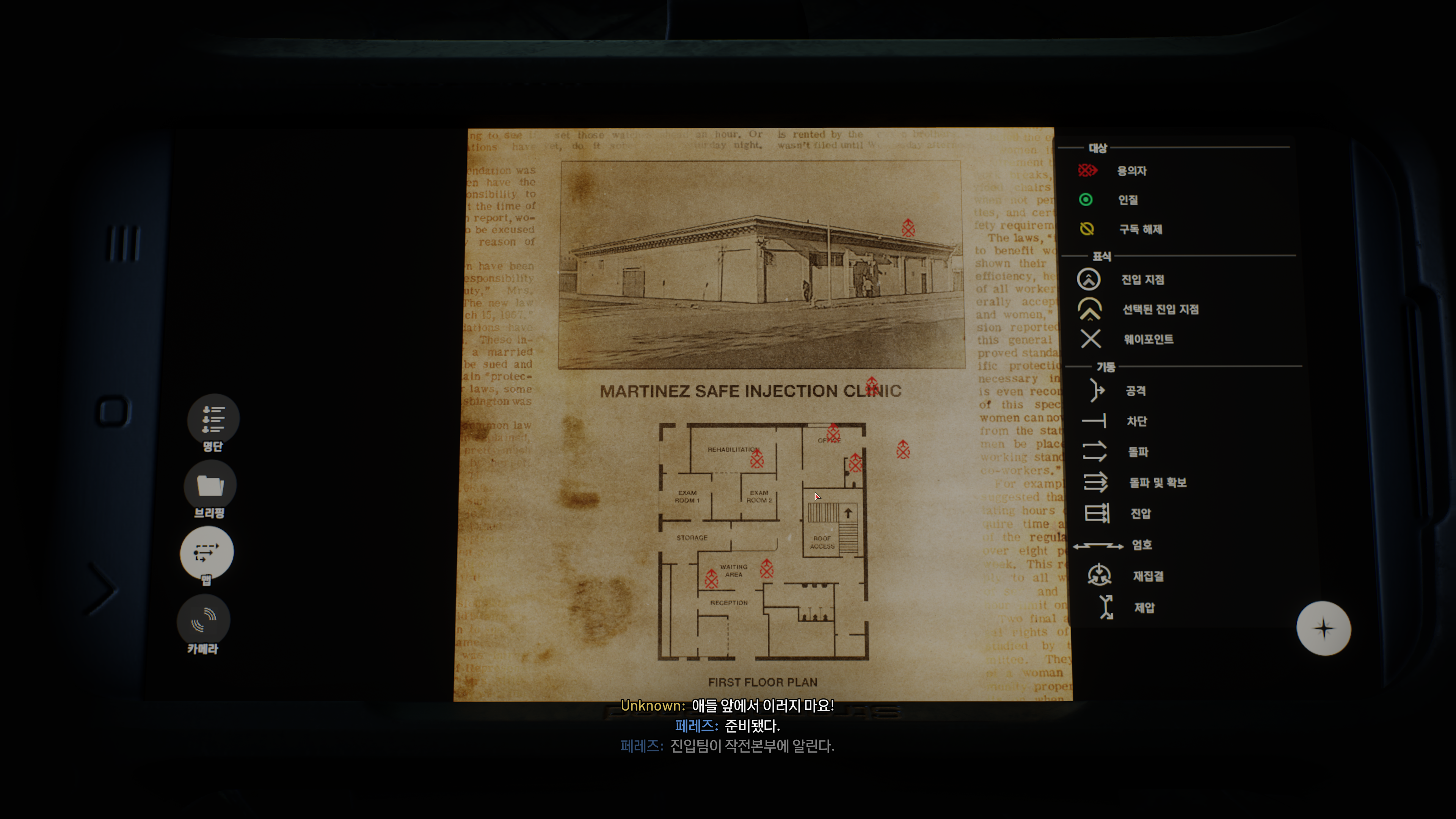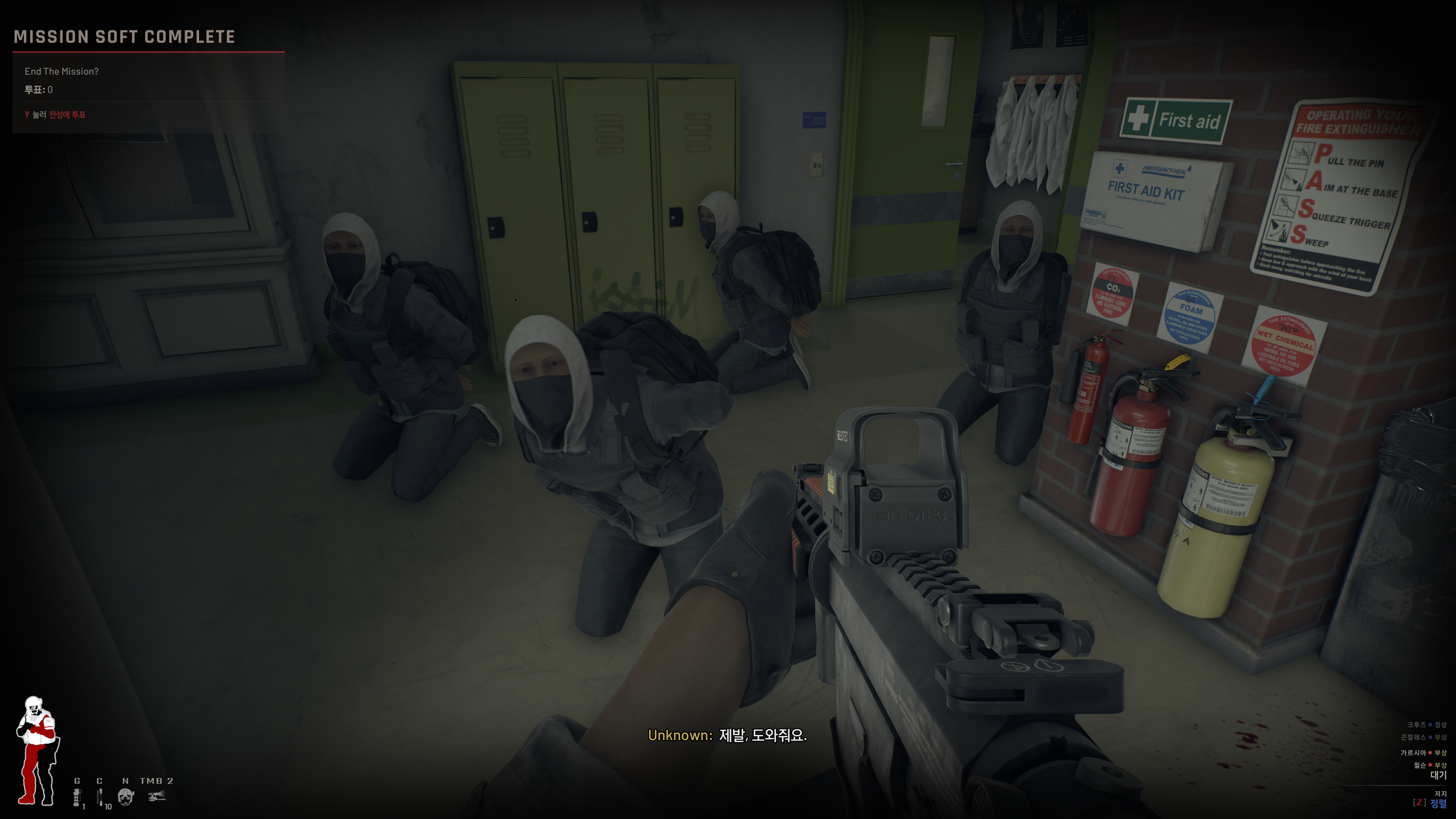 추가로 주의할 점은 창문에 붙으면 적이 쏴대니 절대 붙지말고, 지하실에서 섬광탄, 최루탄 아끼지말고 쓰기, FPS에 자신있는게 아니라면 2층 복도에서 1층 내려가는건 리스크가 너무 커서 금지