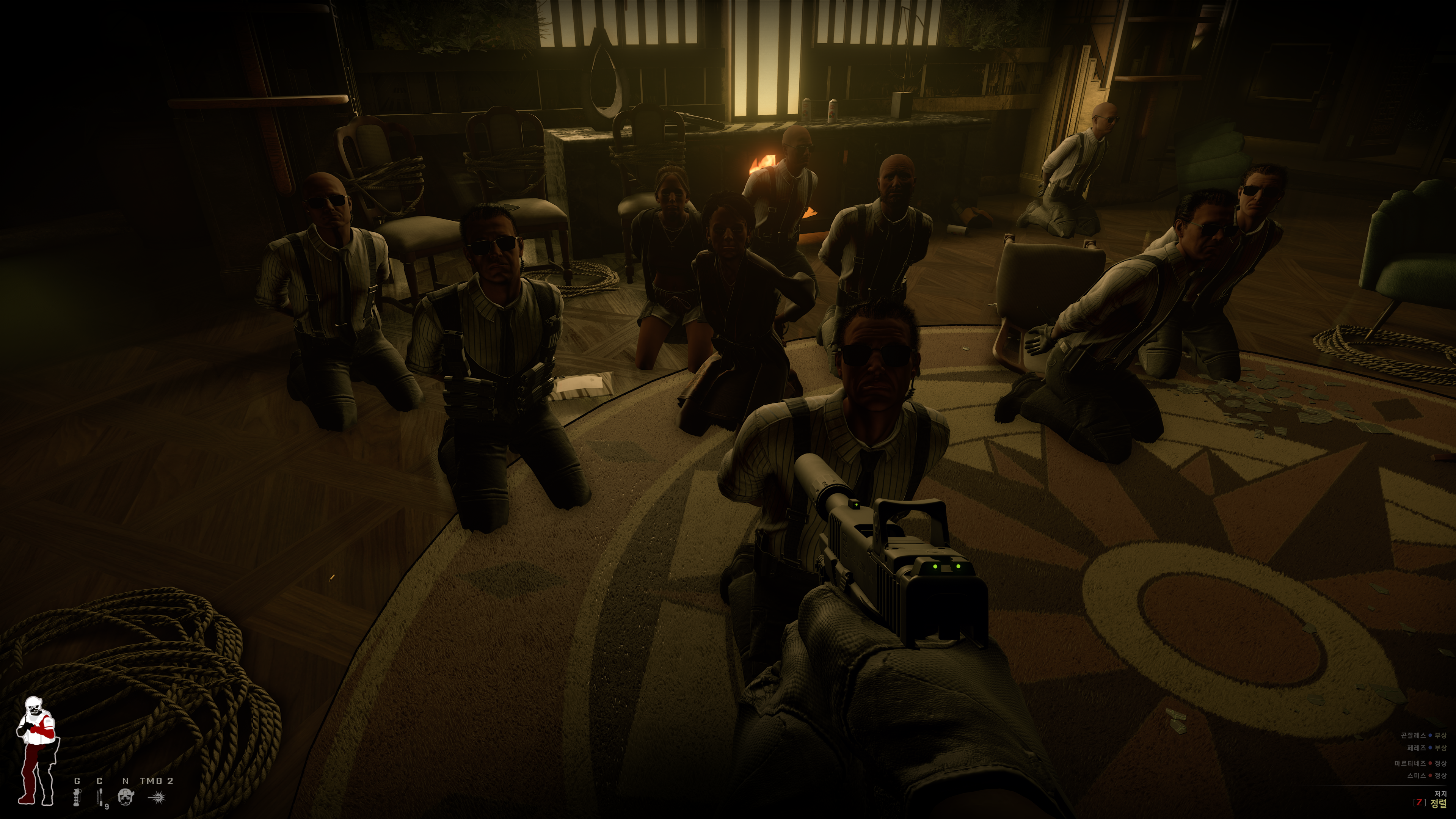 1층은 미러볼로 시야 체크하면서 혼자 테이저건들고 하나씩 짜르는 은신 플레이로 뚫고