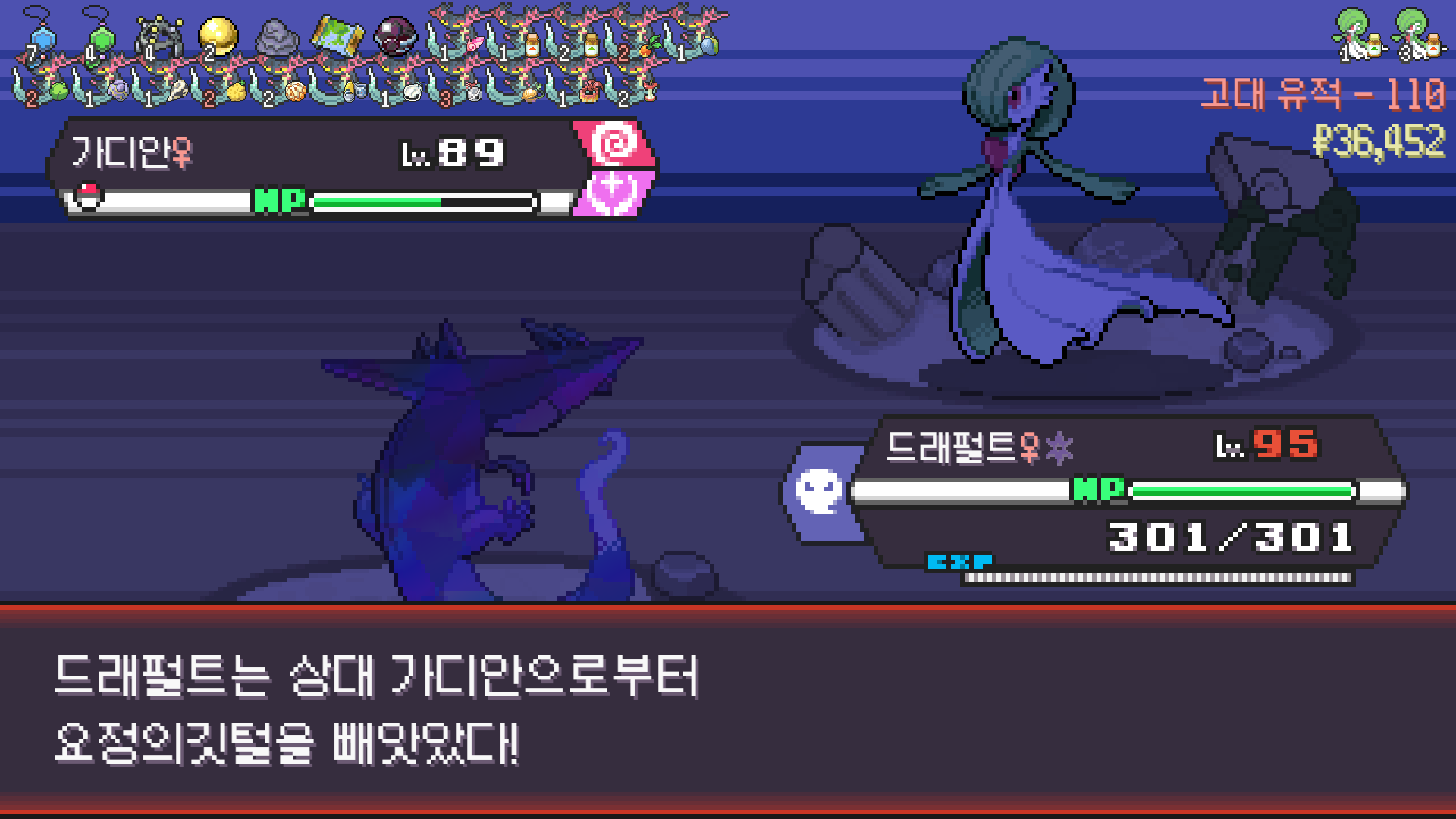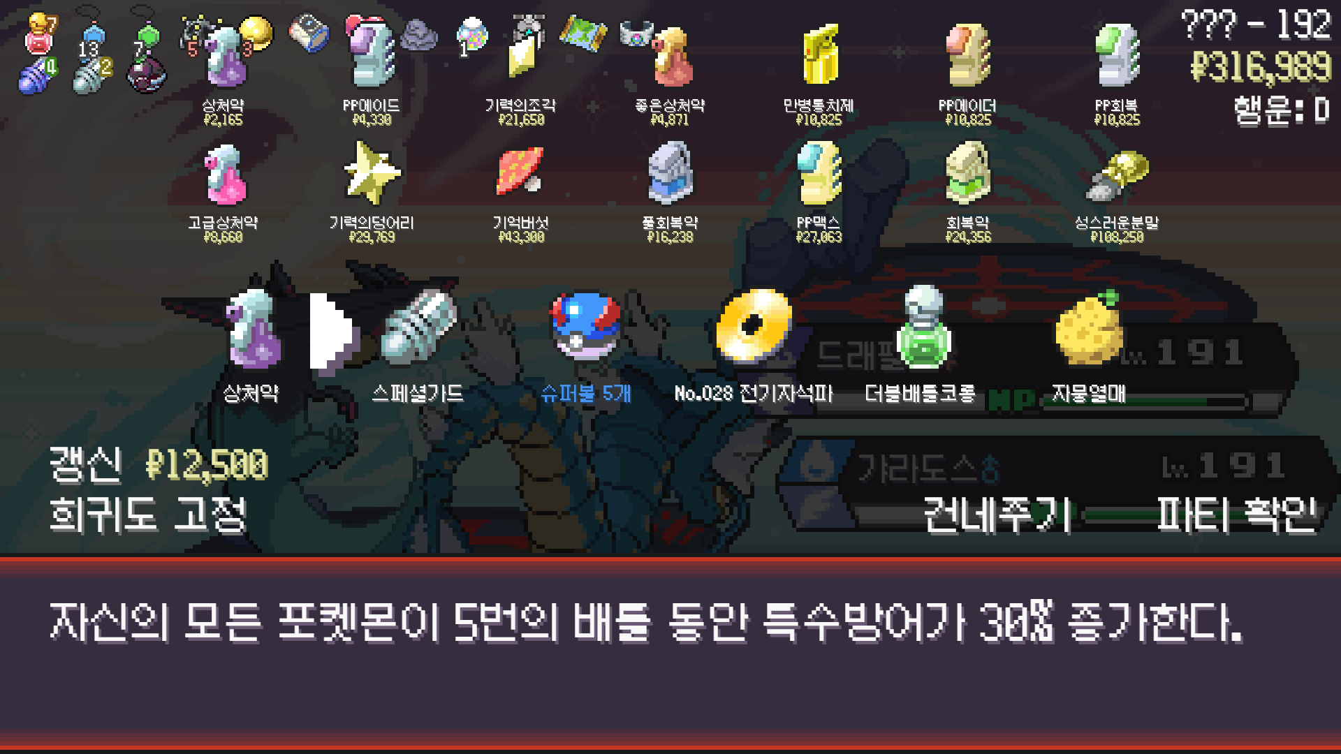 갸라도스에게 비밀이야기 장착