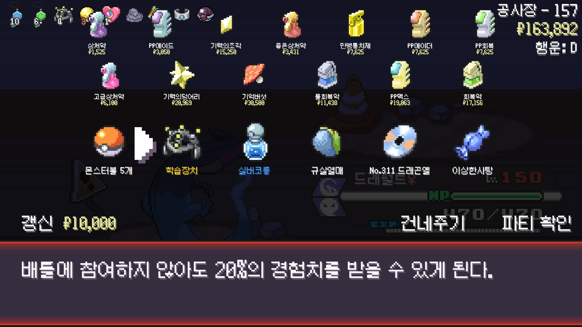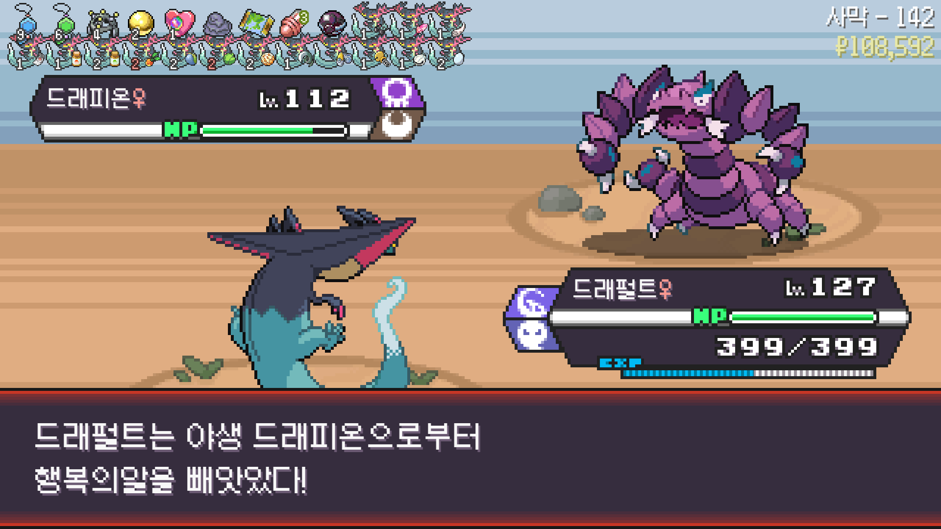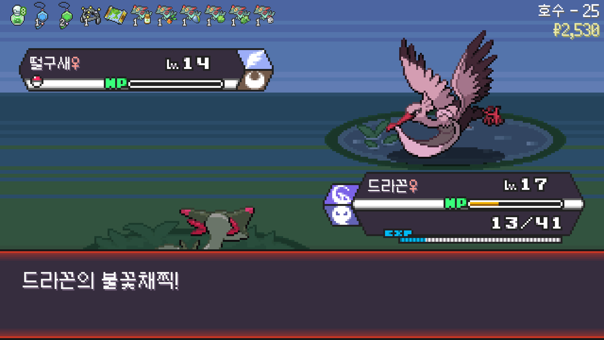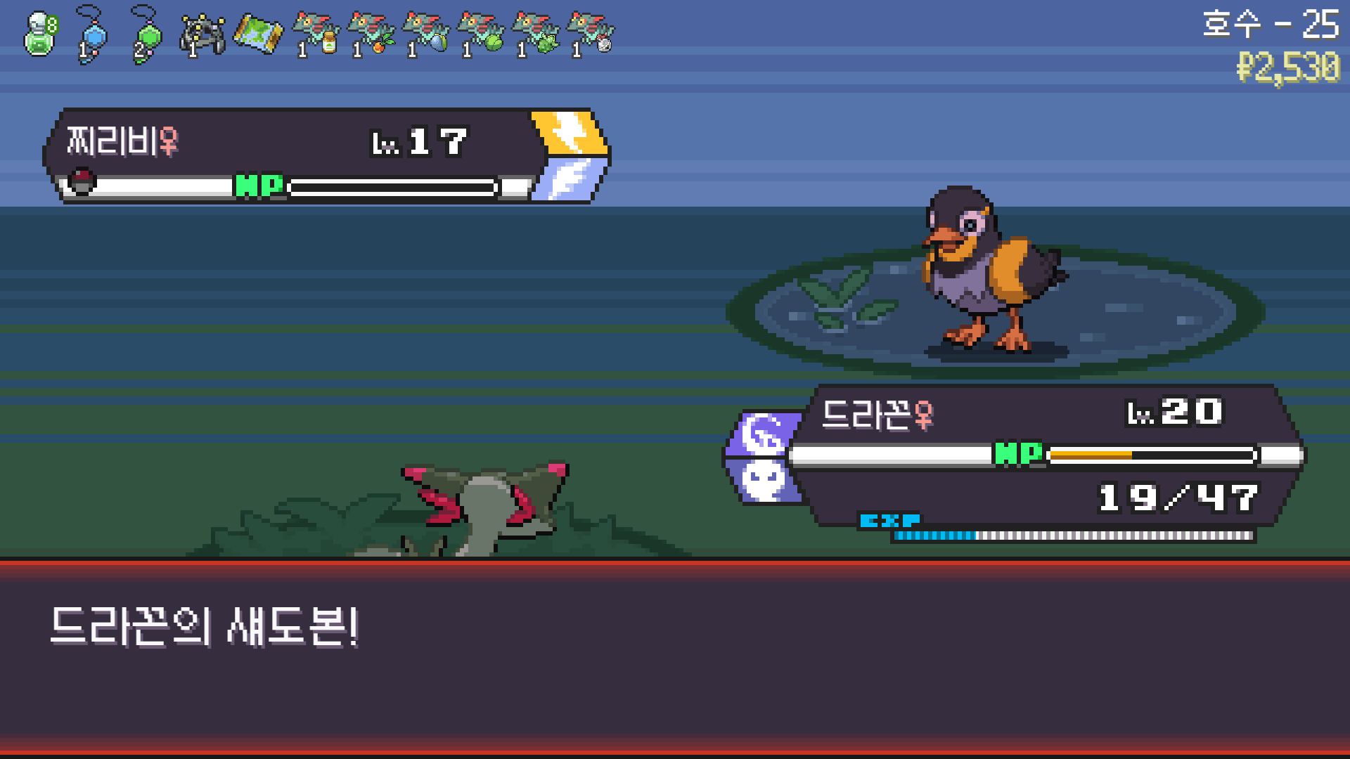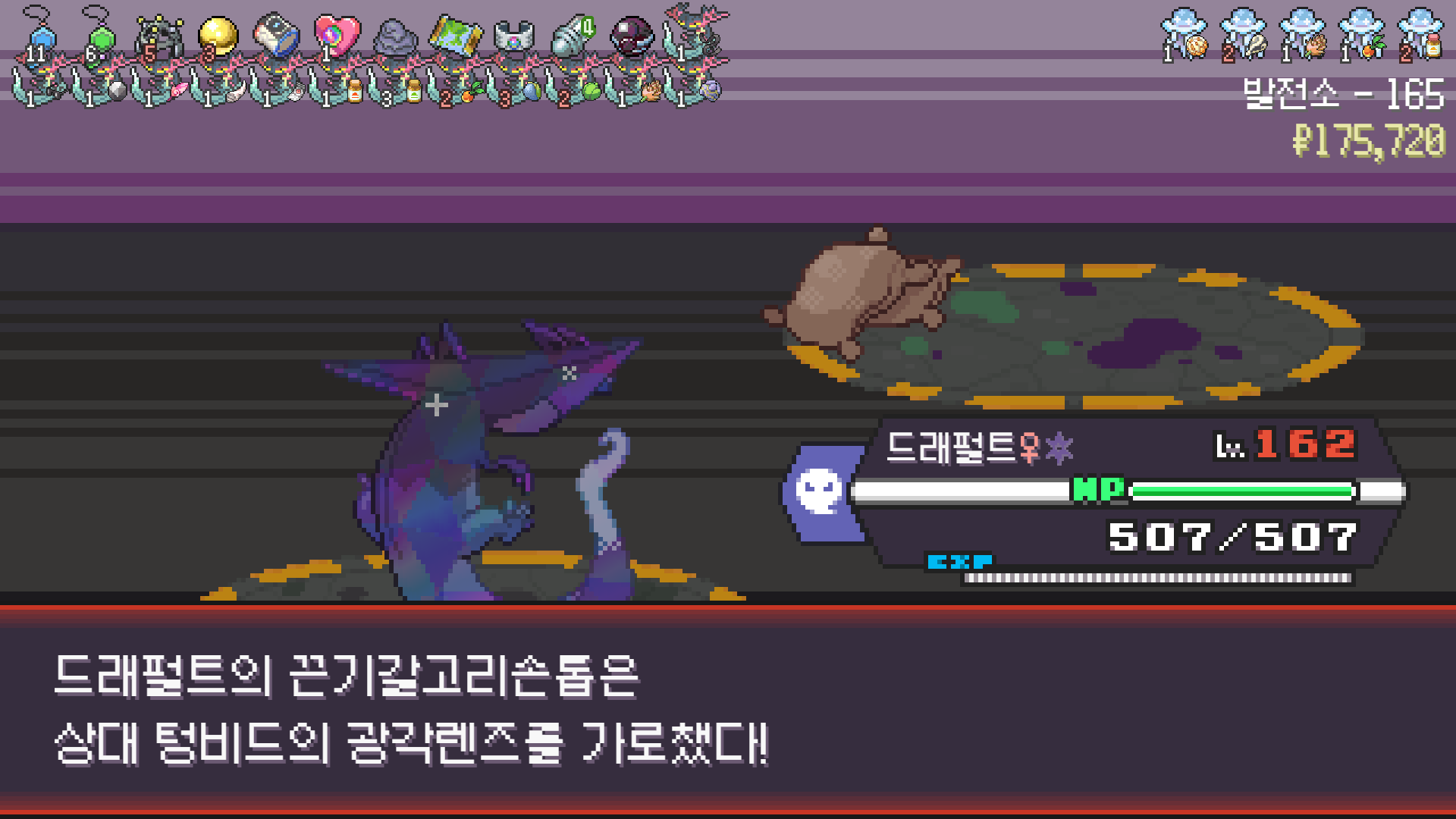 에스퍼 체육관에서 가디안의 요정의깃털을 훔치며 꿈을 키우는 드래펄트