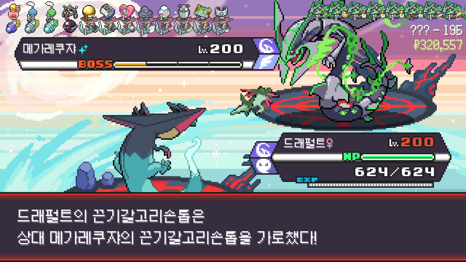 메가레쿠쟈한테 훔치고 완성된 5끈기갈고리손톱