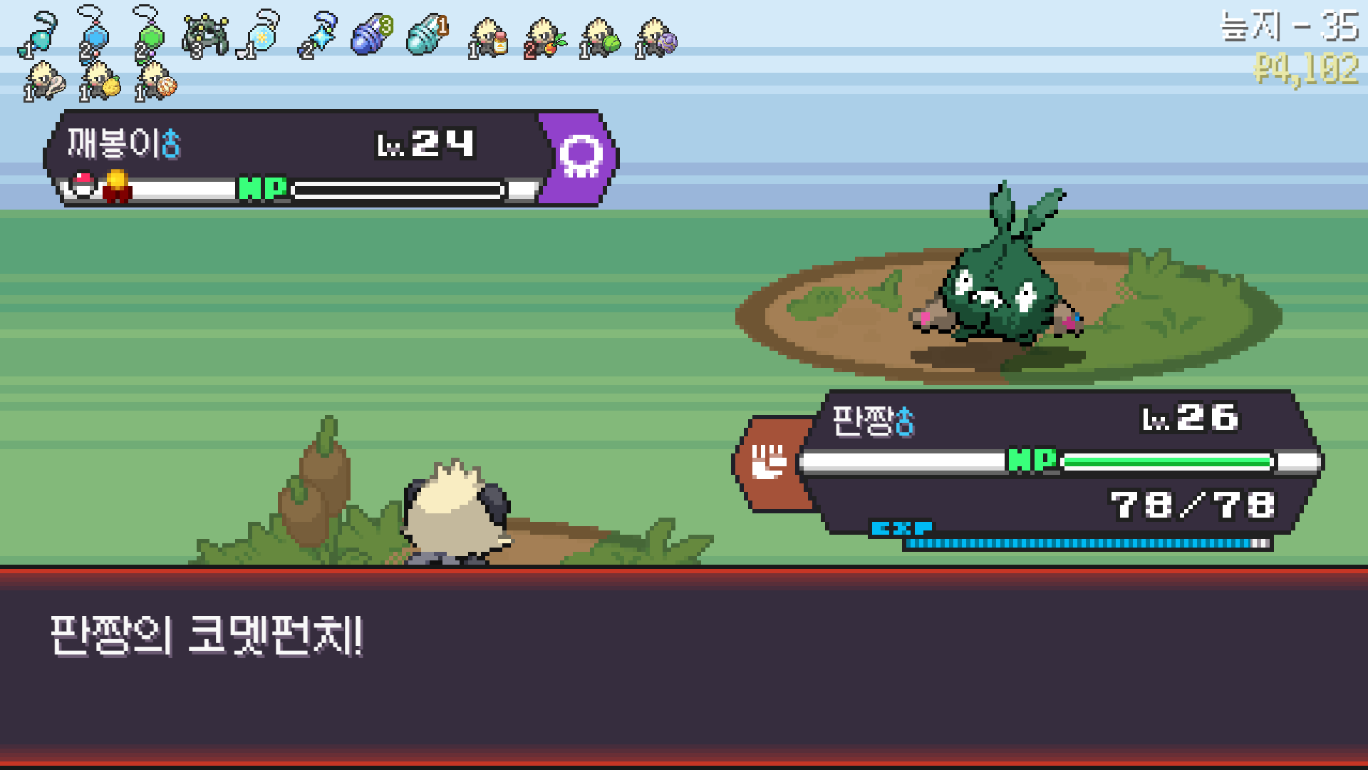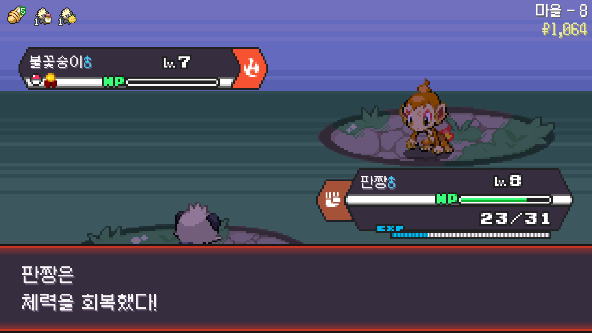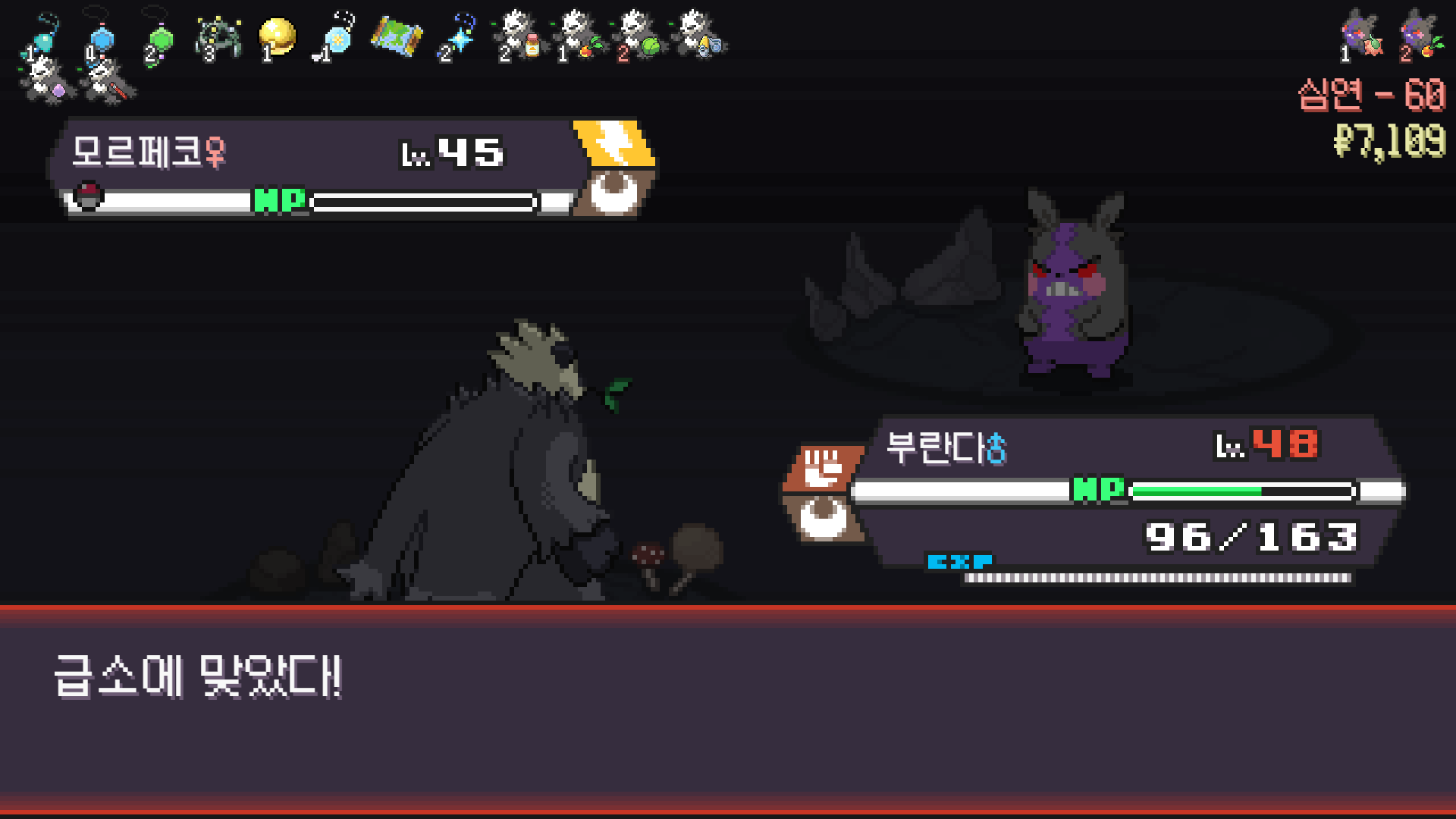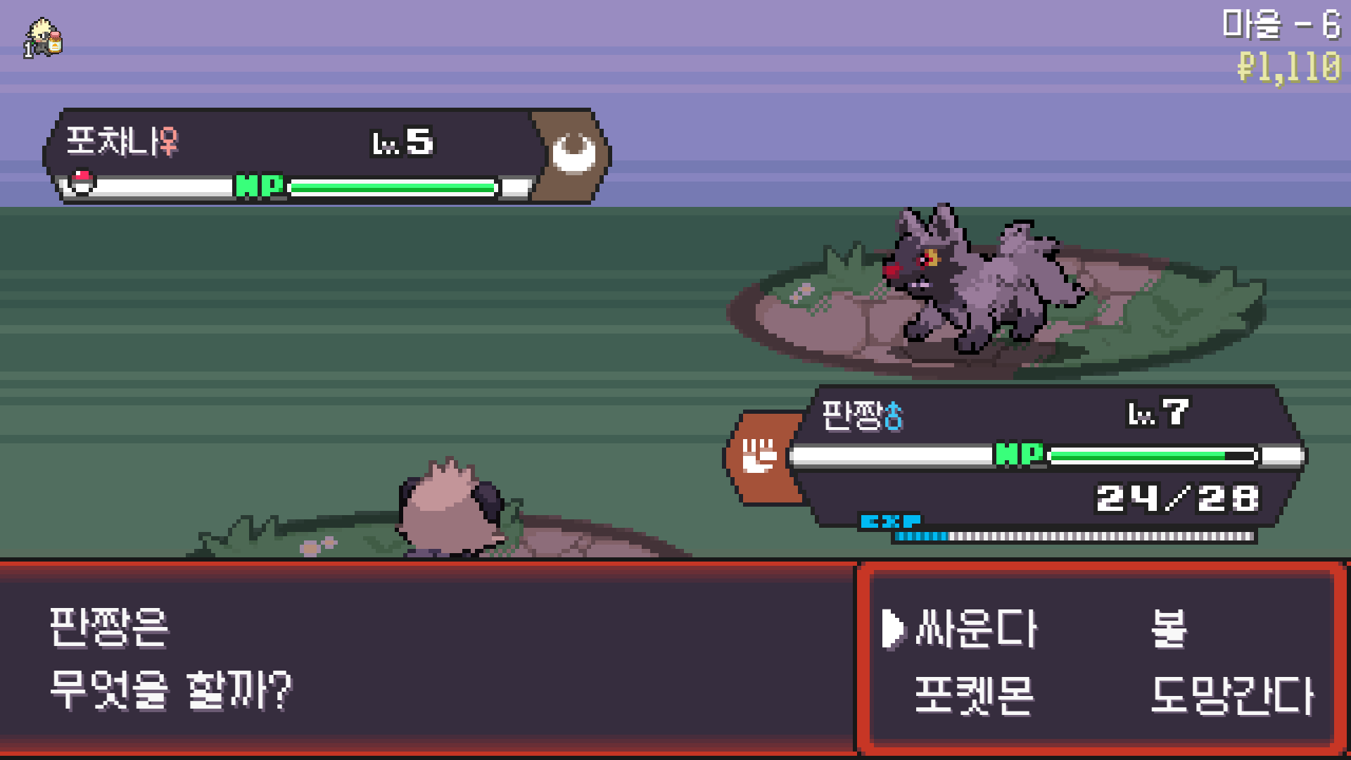 판짱 진화에 악타입 포켓몬 한 마리가 필요해서 잡아두고