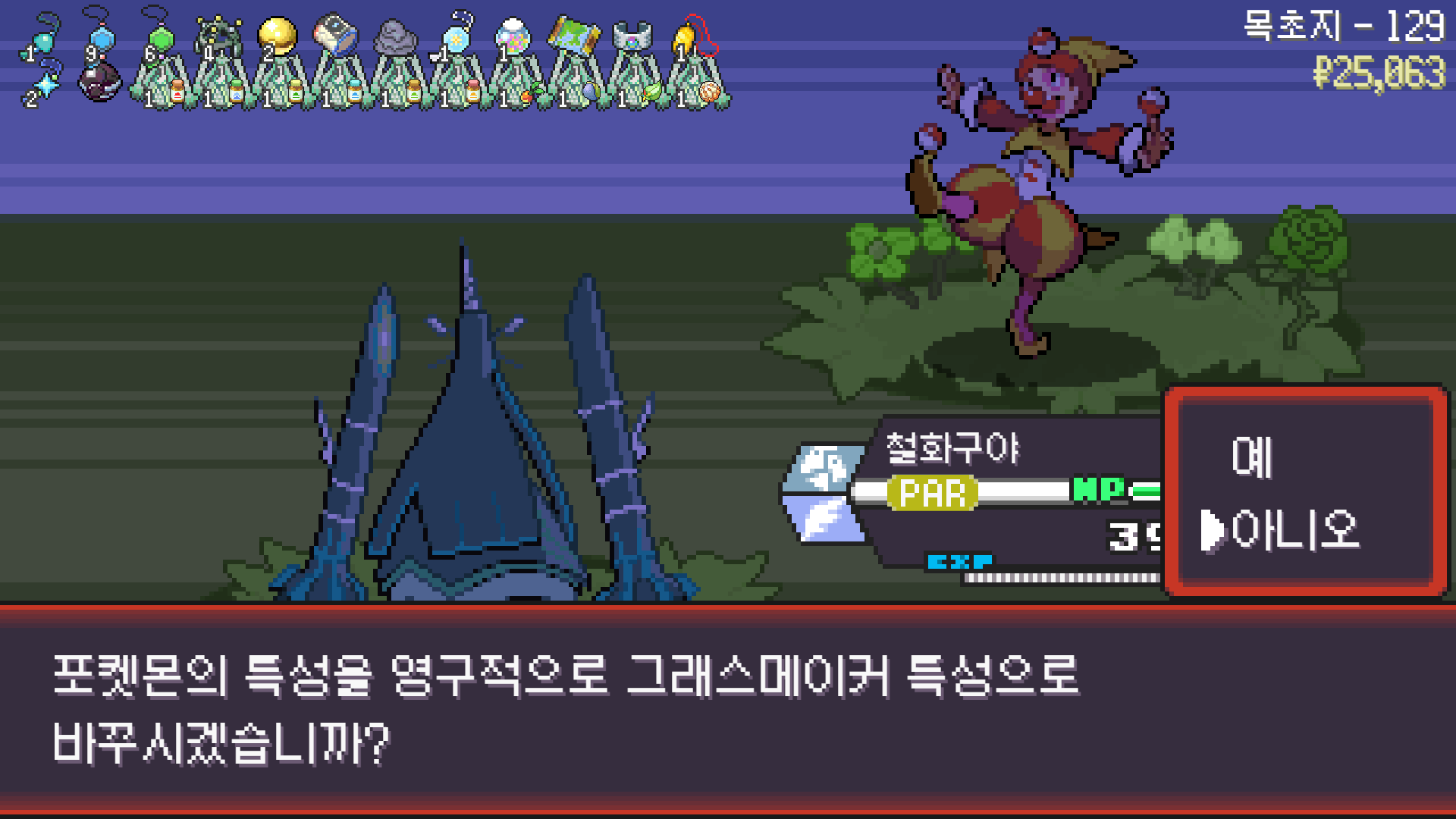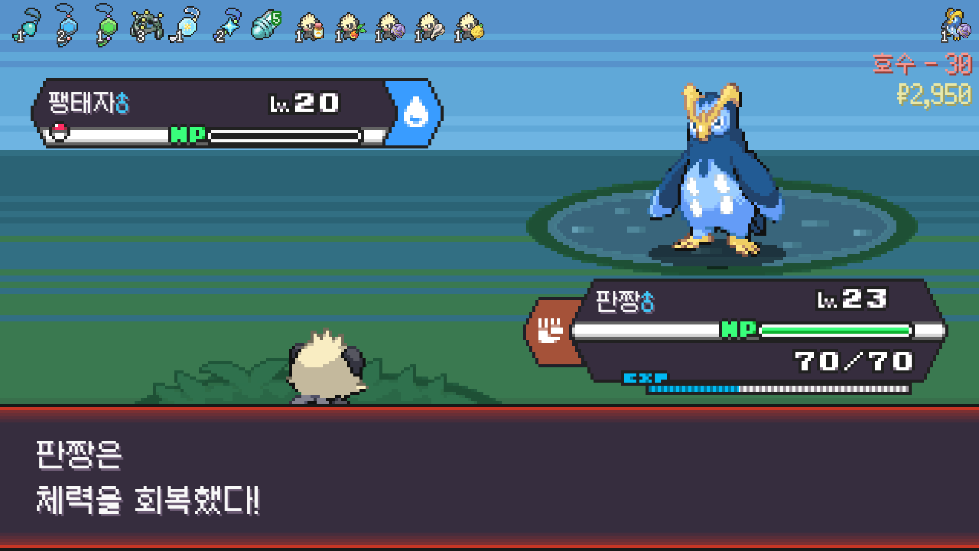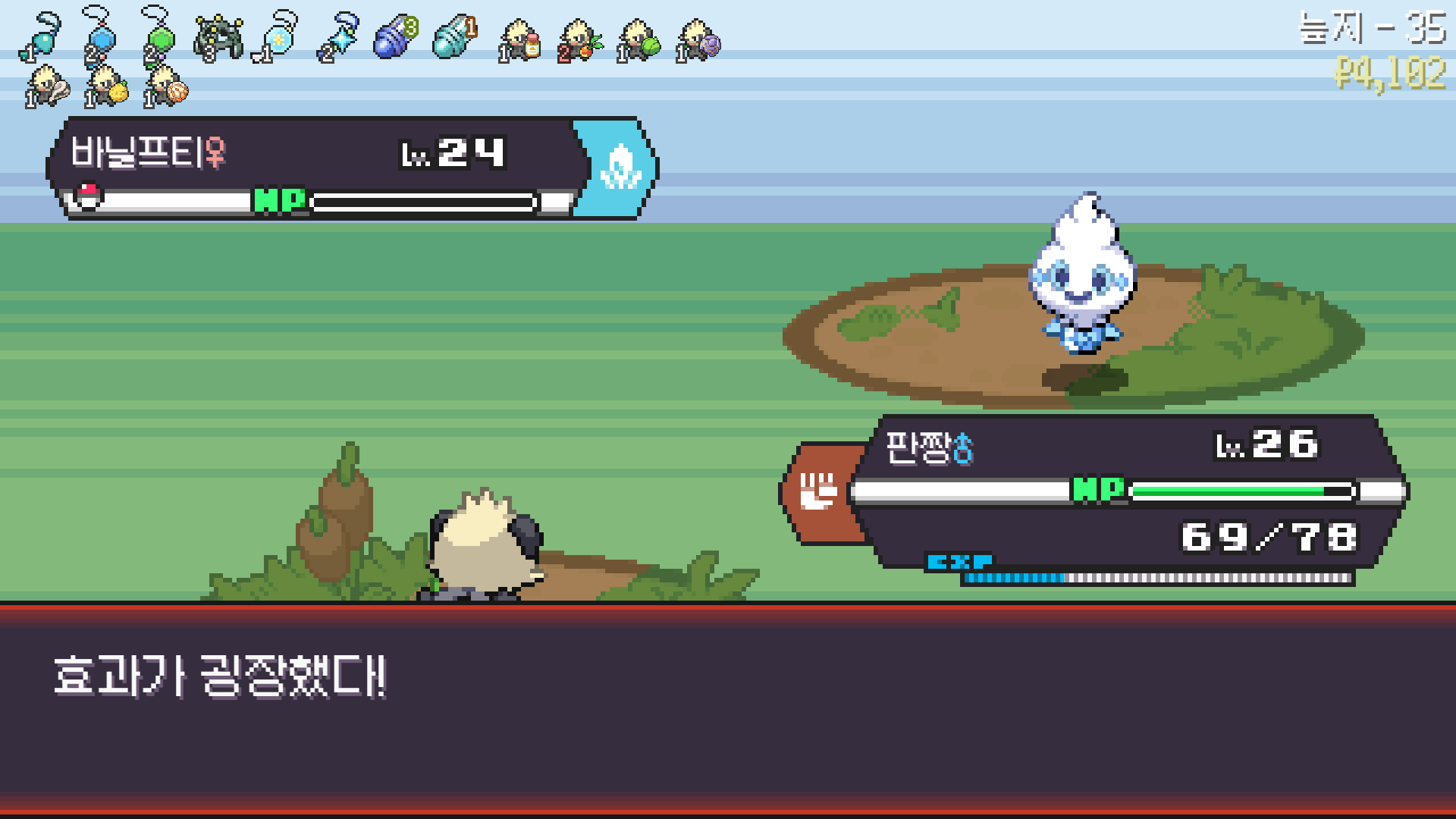판짱 진화에 악타입 포켓몬 한 마리가 필요해서 잡아두고