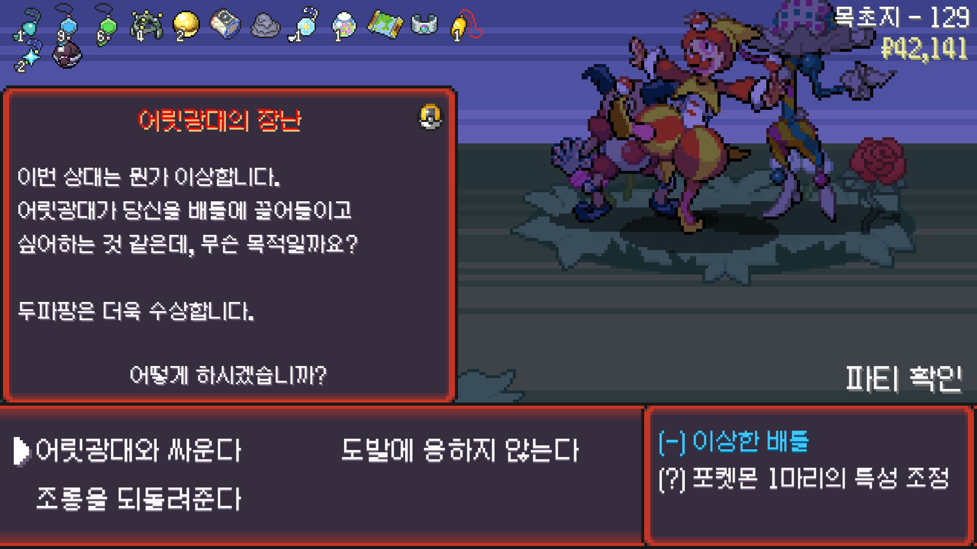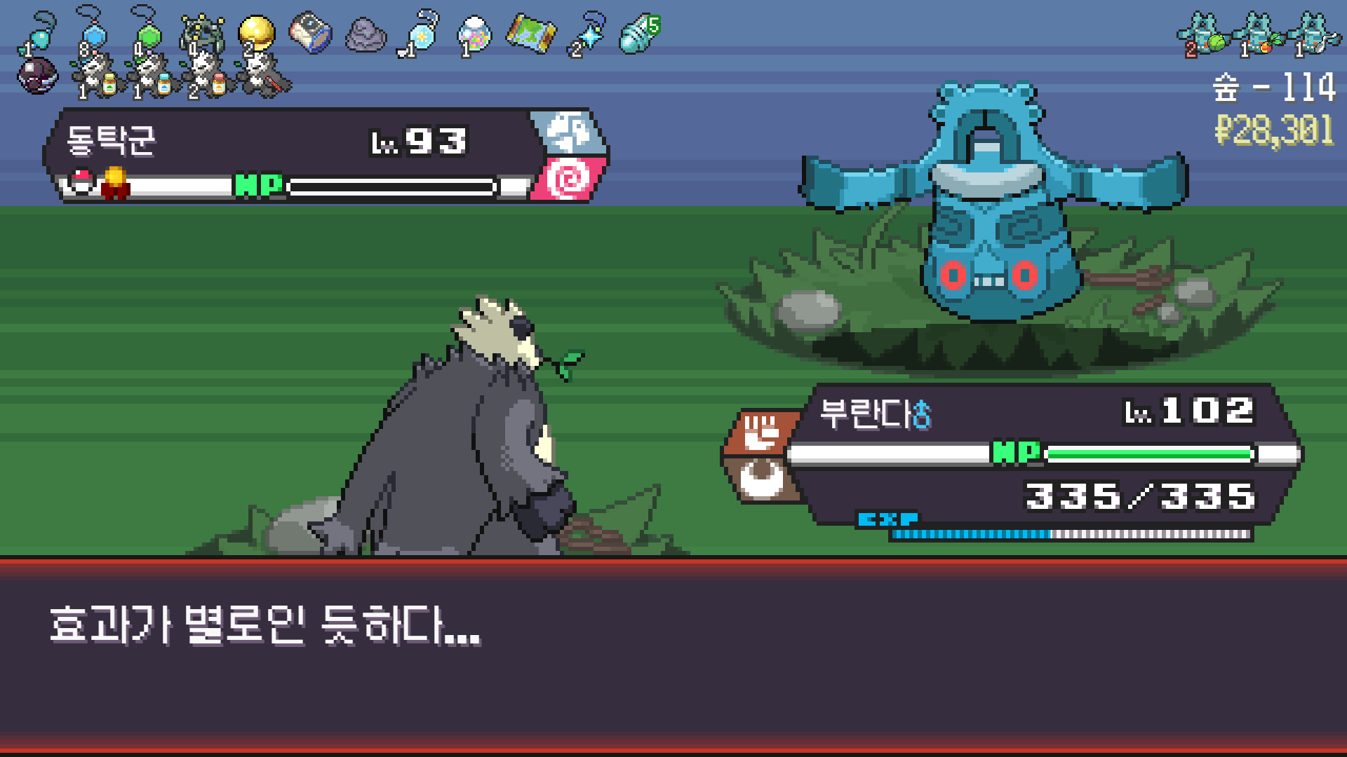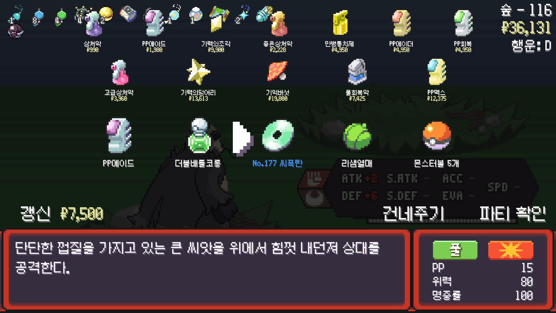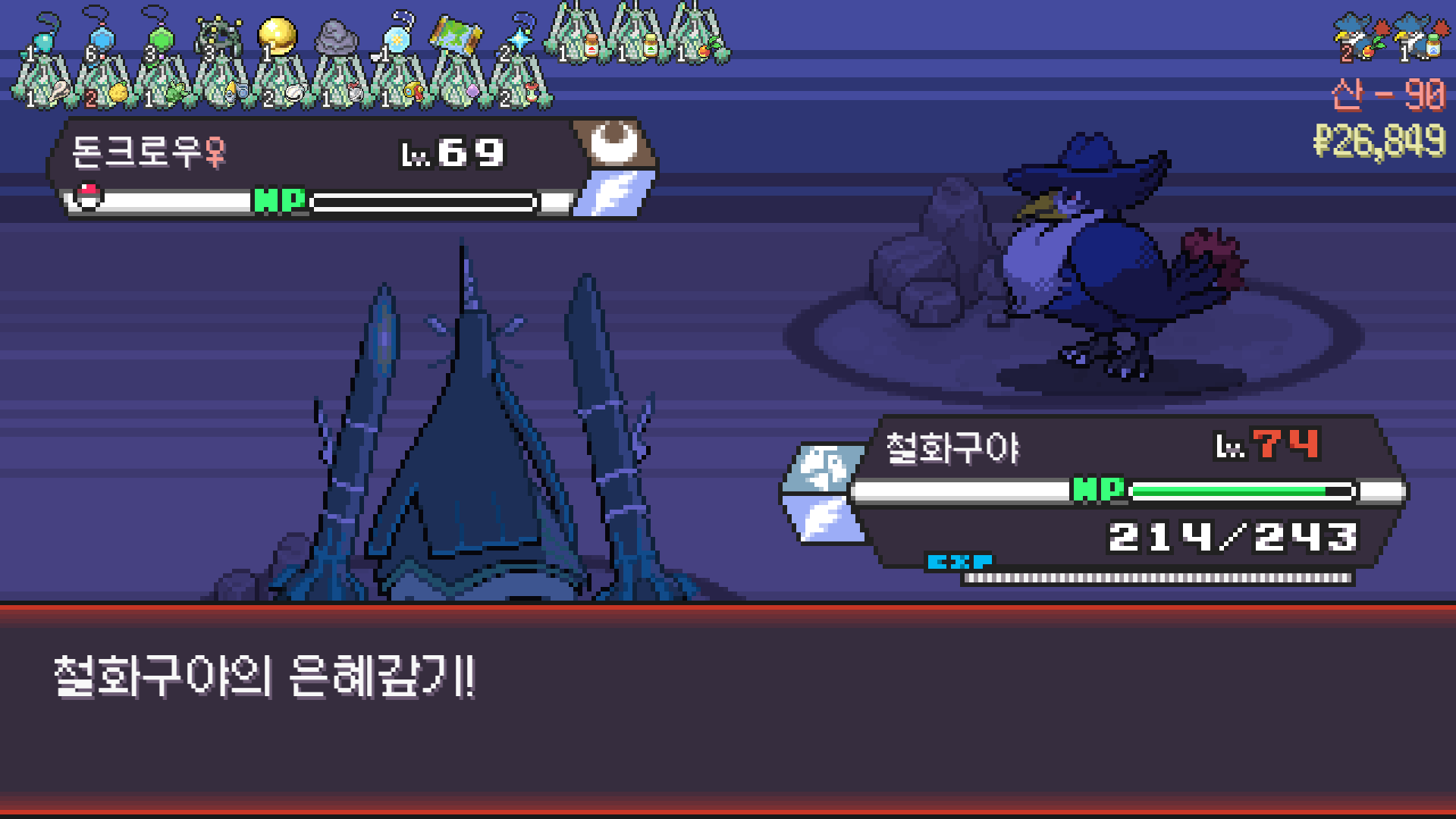 판짱 진화에 악타입 포켓몬 한 마리가 필요해서 잡아두고