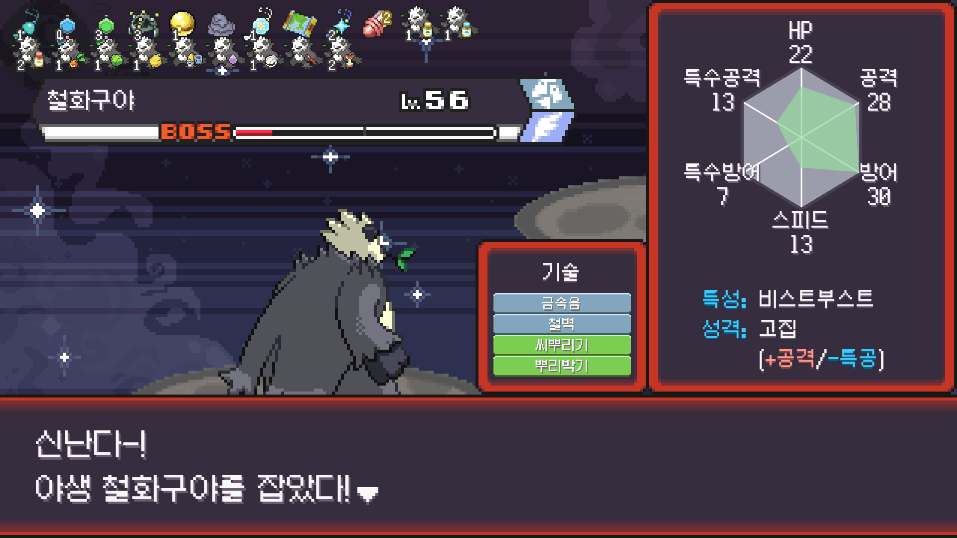 70라 보스로 나온 철화구야 포획