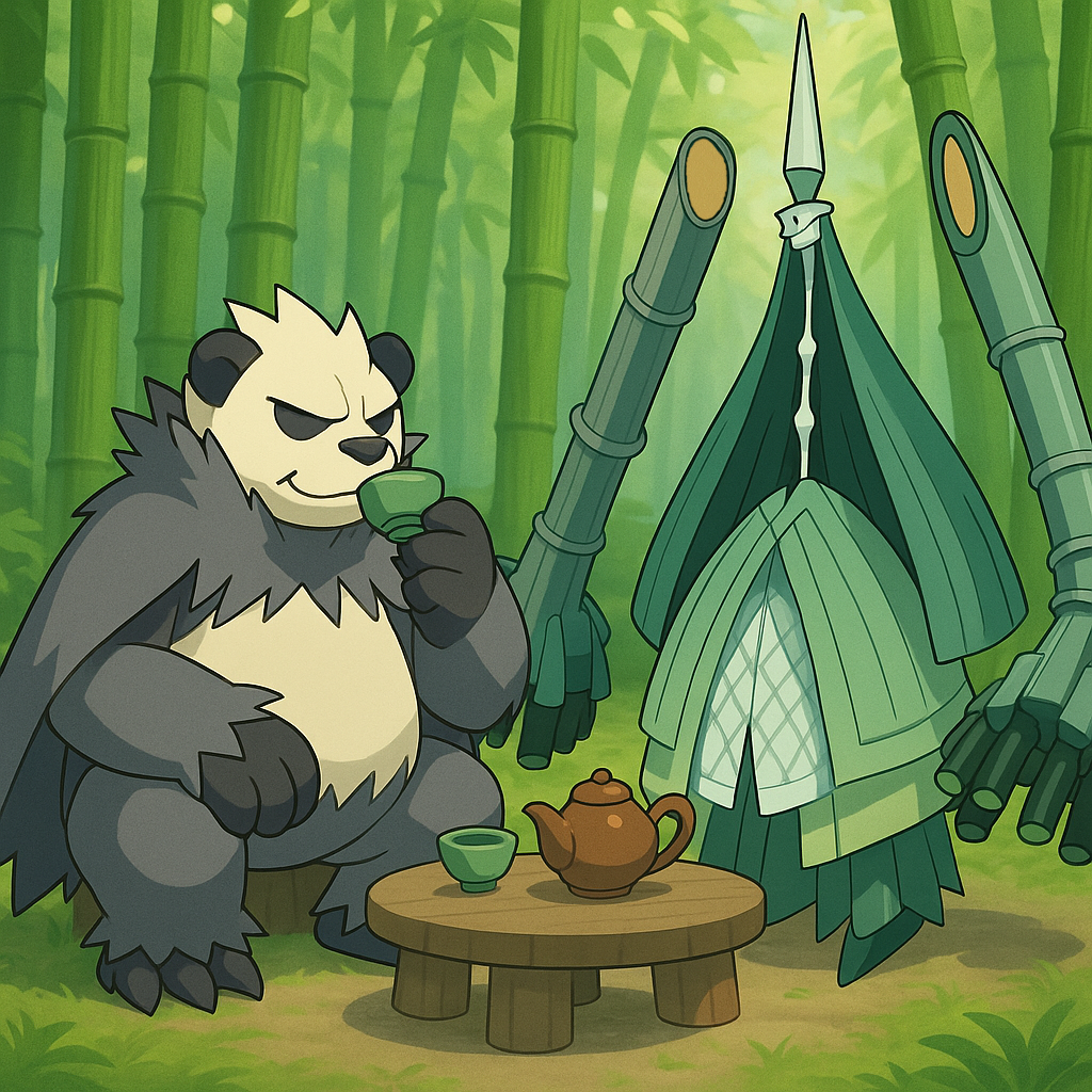 판짱 - 부란다 : (도감 피셜)잎에 물고 있는게 대나무 잎이니 아무튼 판다 + 대나무 포켓몬