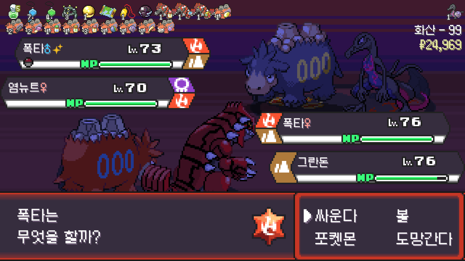 물포켓몬 만나면 사형이라 화산 최단루트로 가면 맞아죽기 딱 좋다