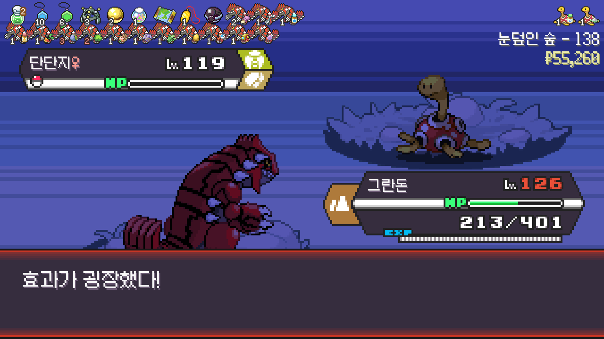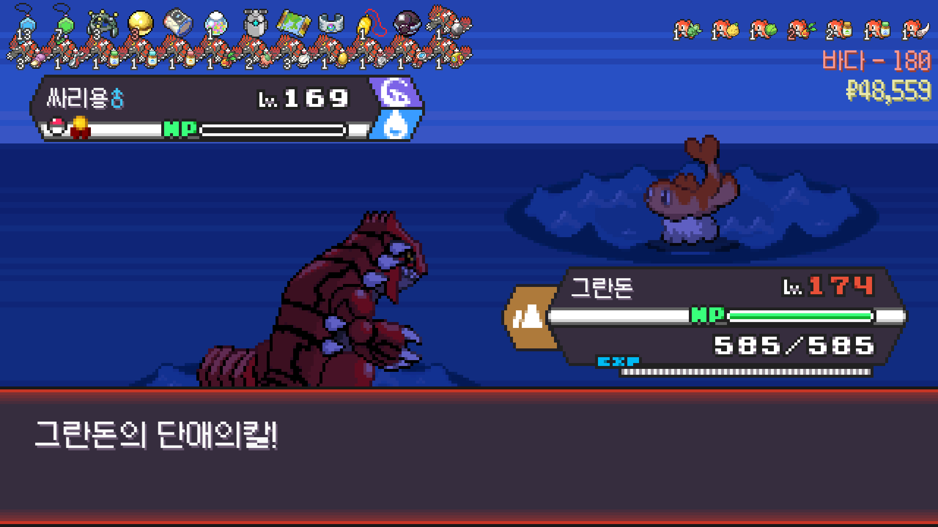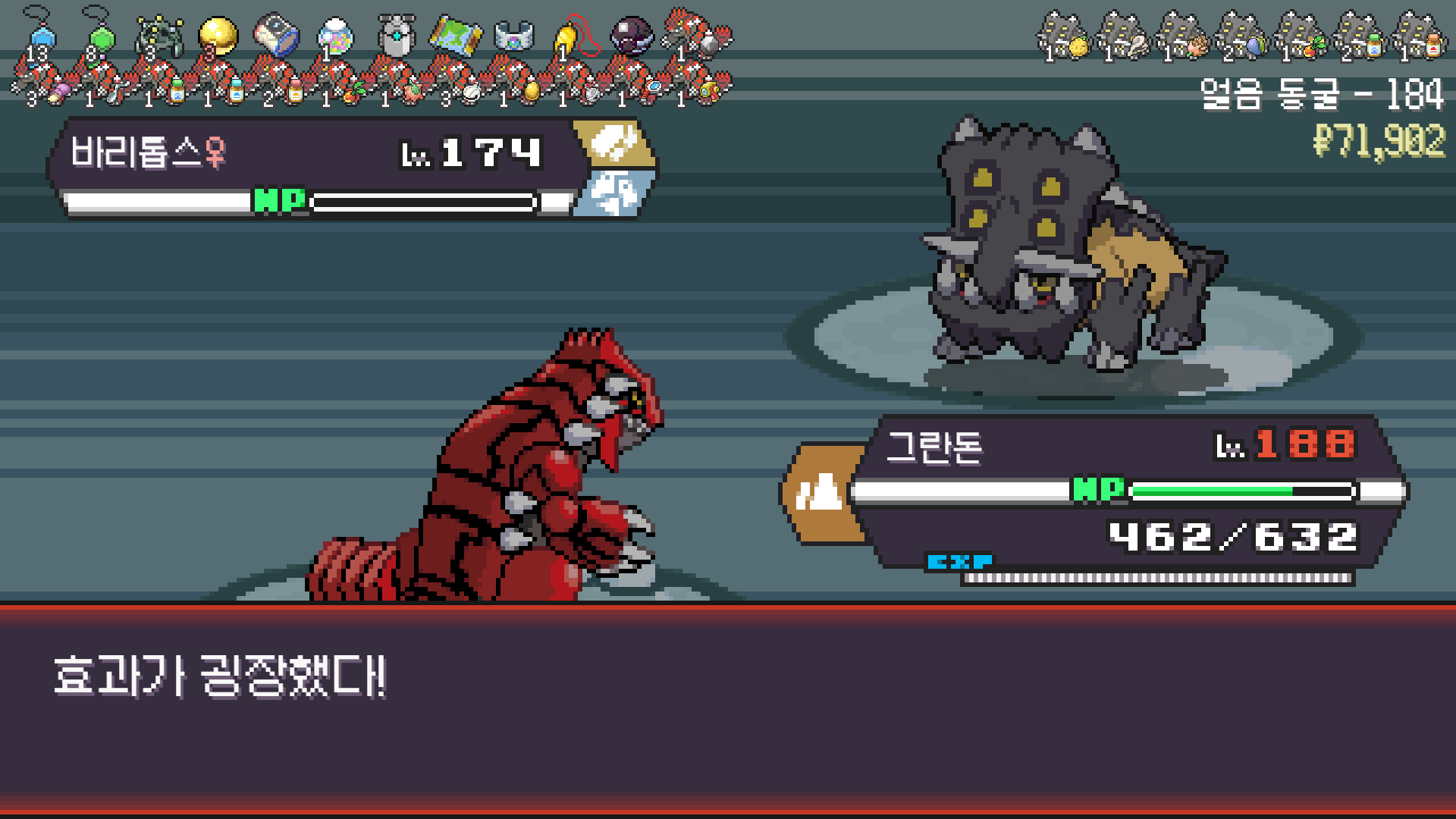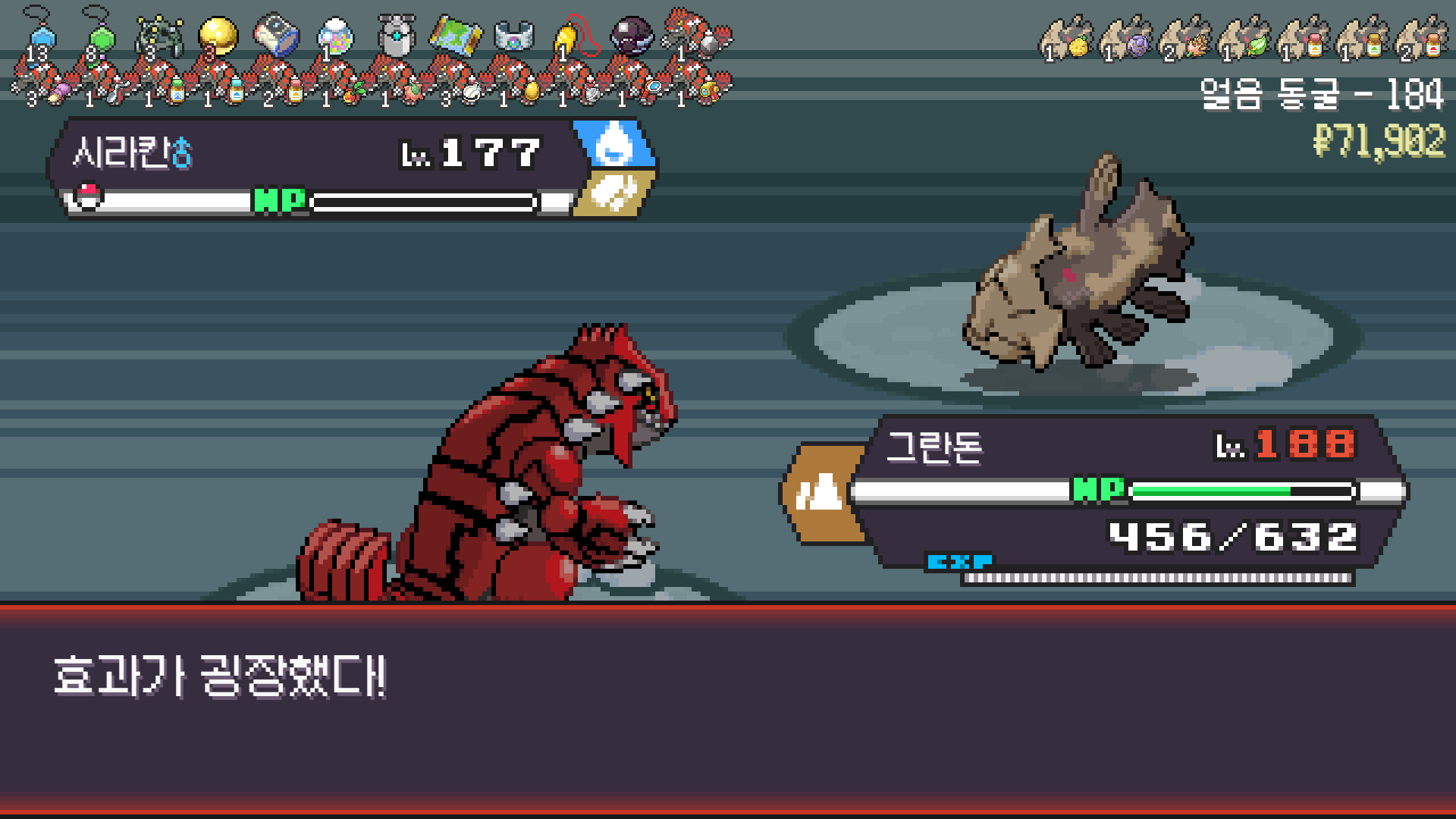 가뭄으로 물타입 약점 알빠노??? 해버리는 그란돈