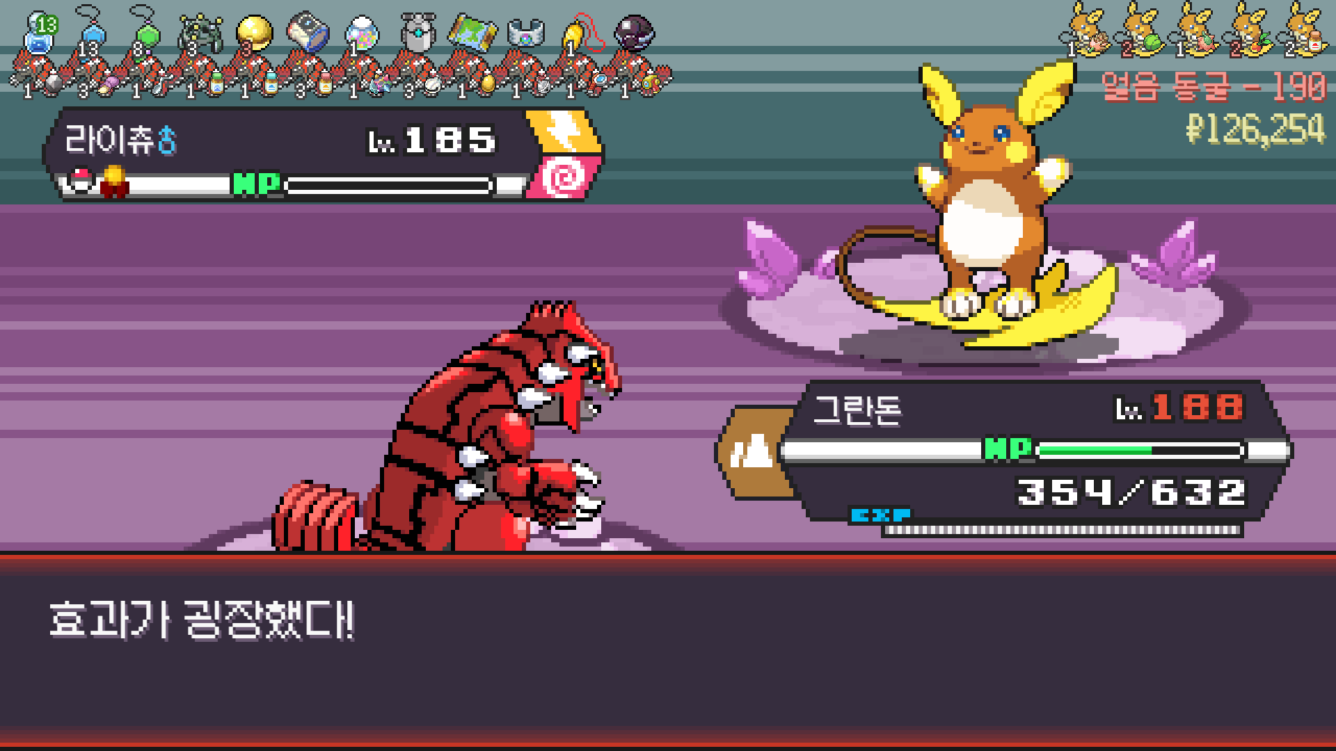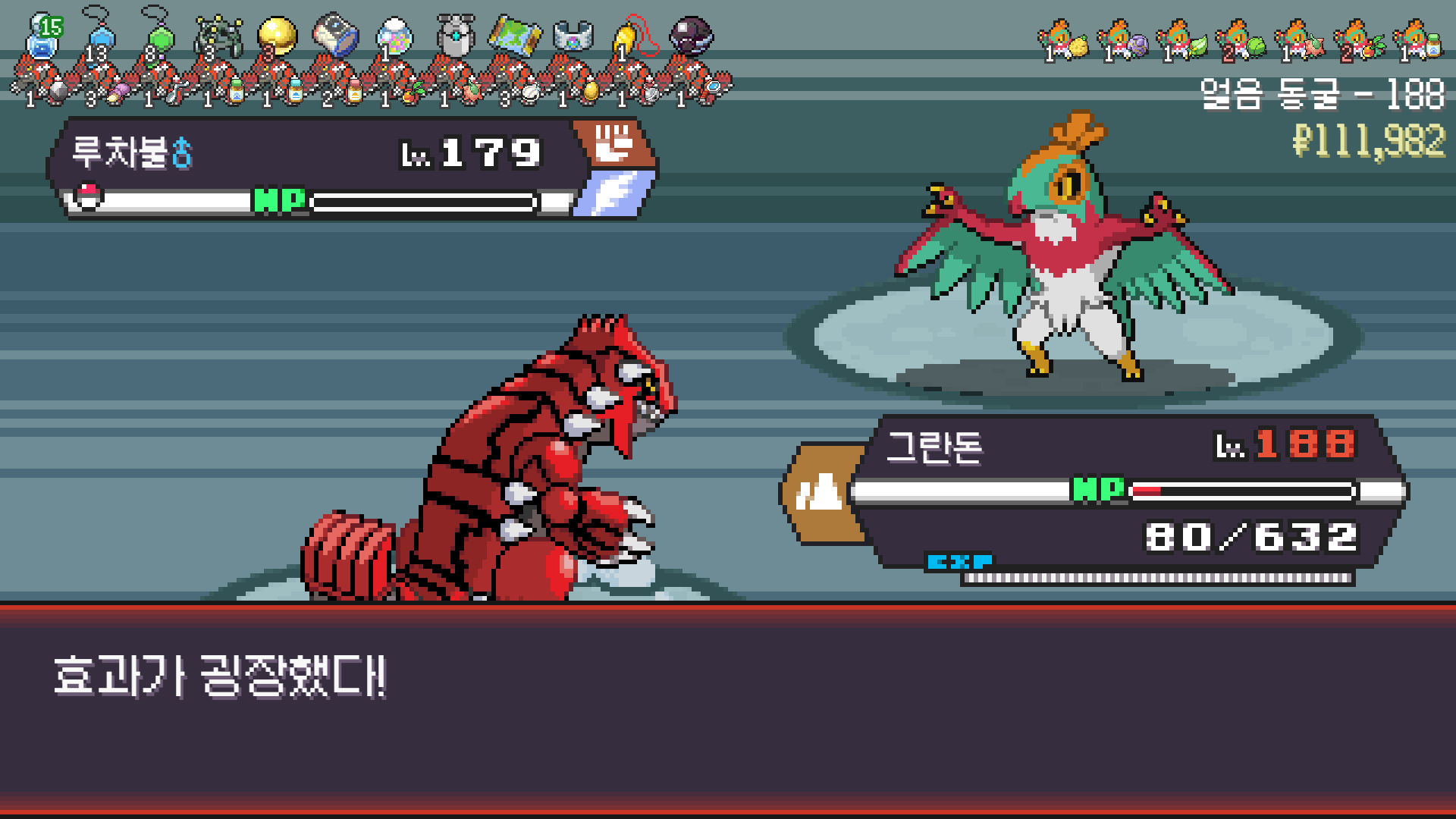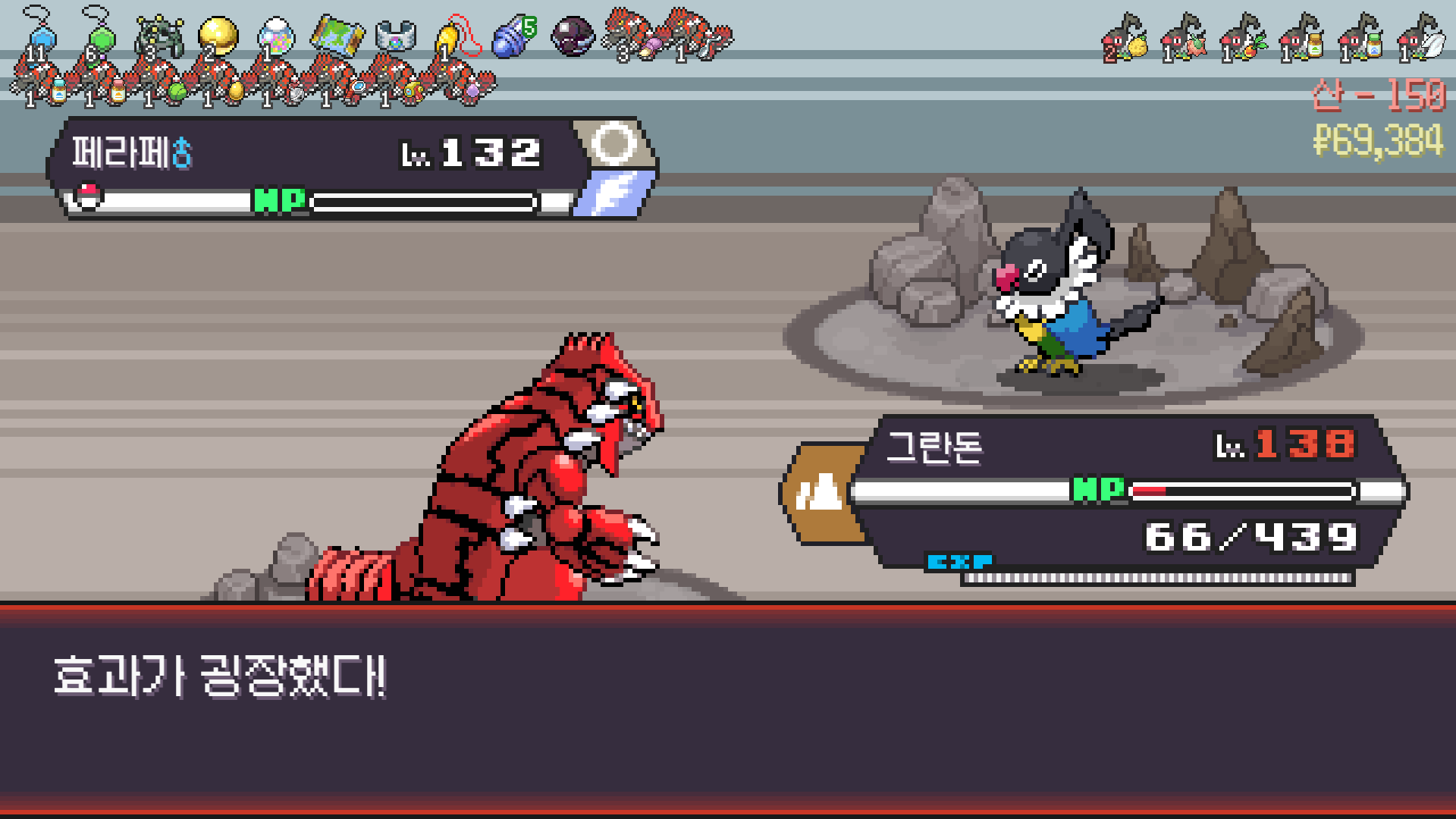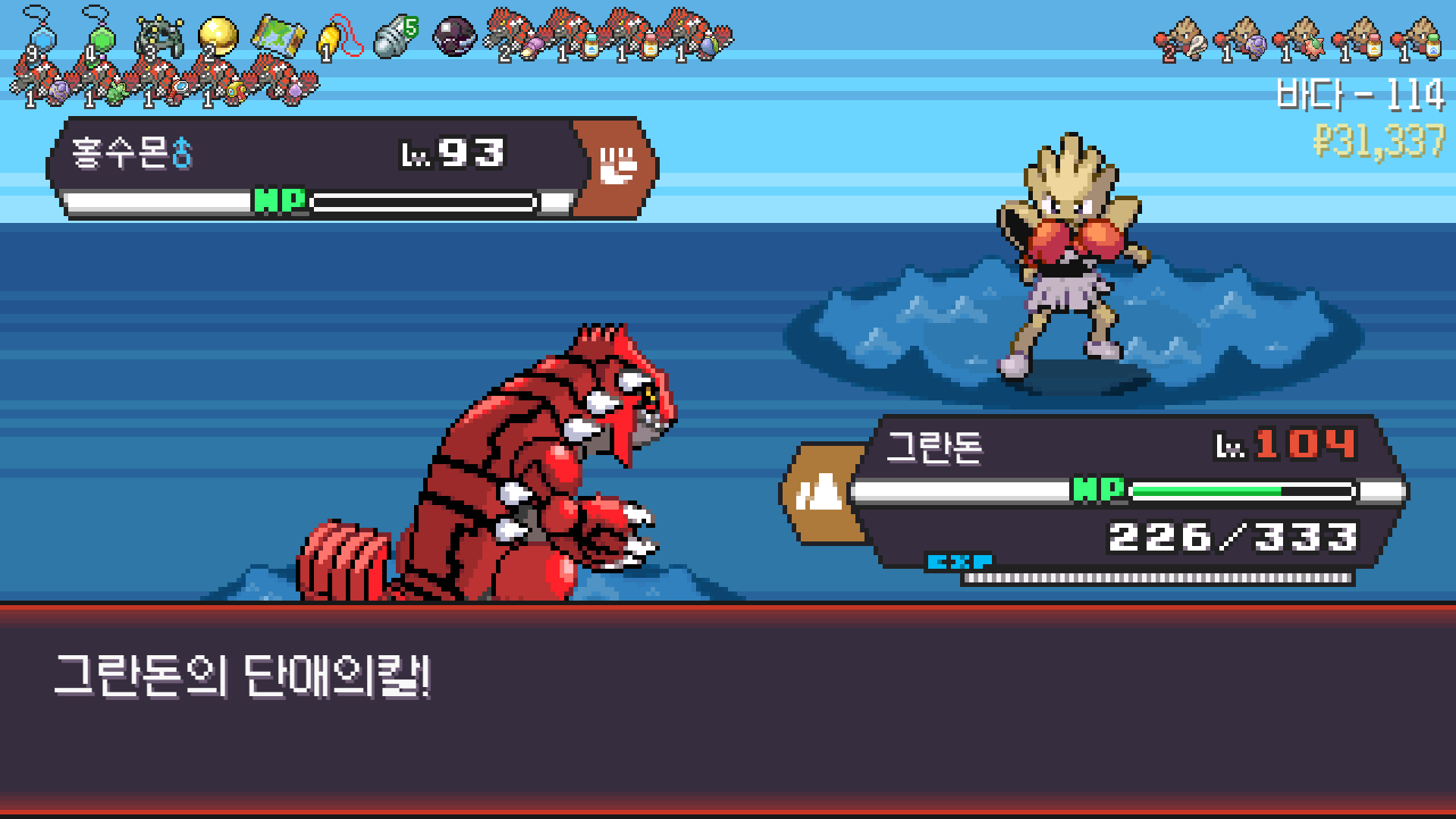가뭄으로 물타입 약점 알빠노??? 해버리는 그란돈