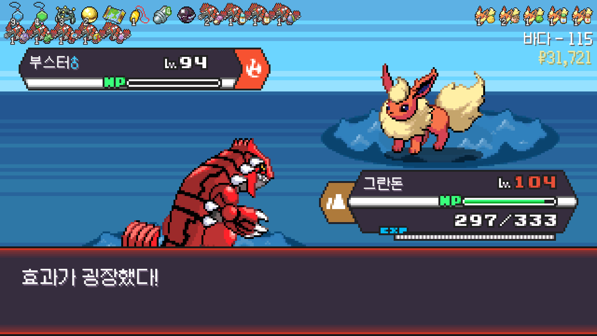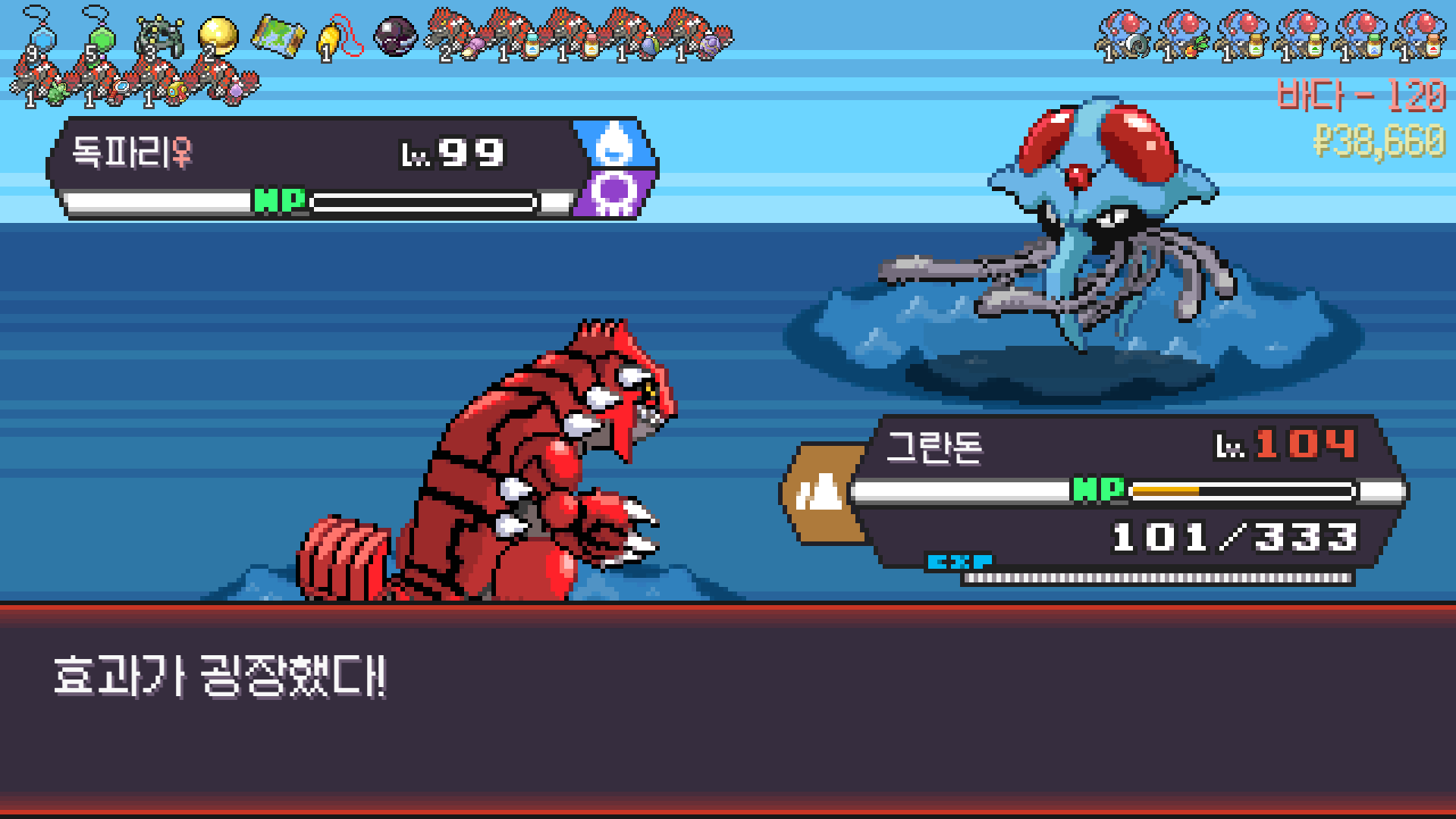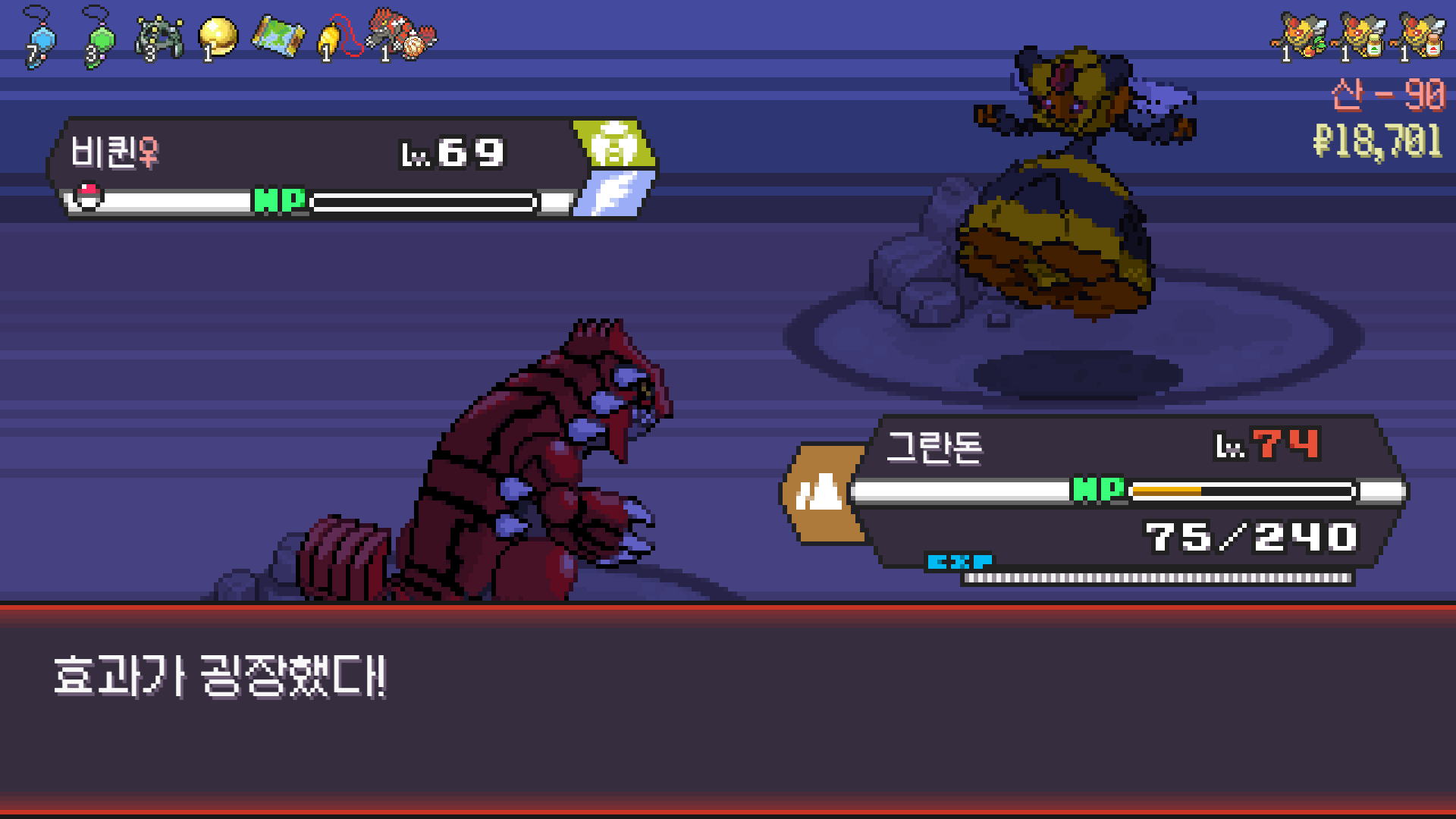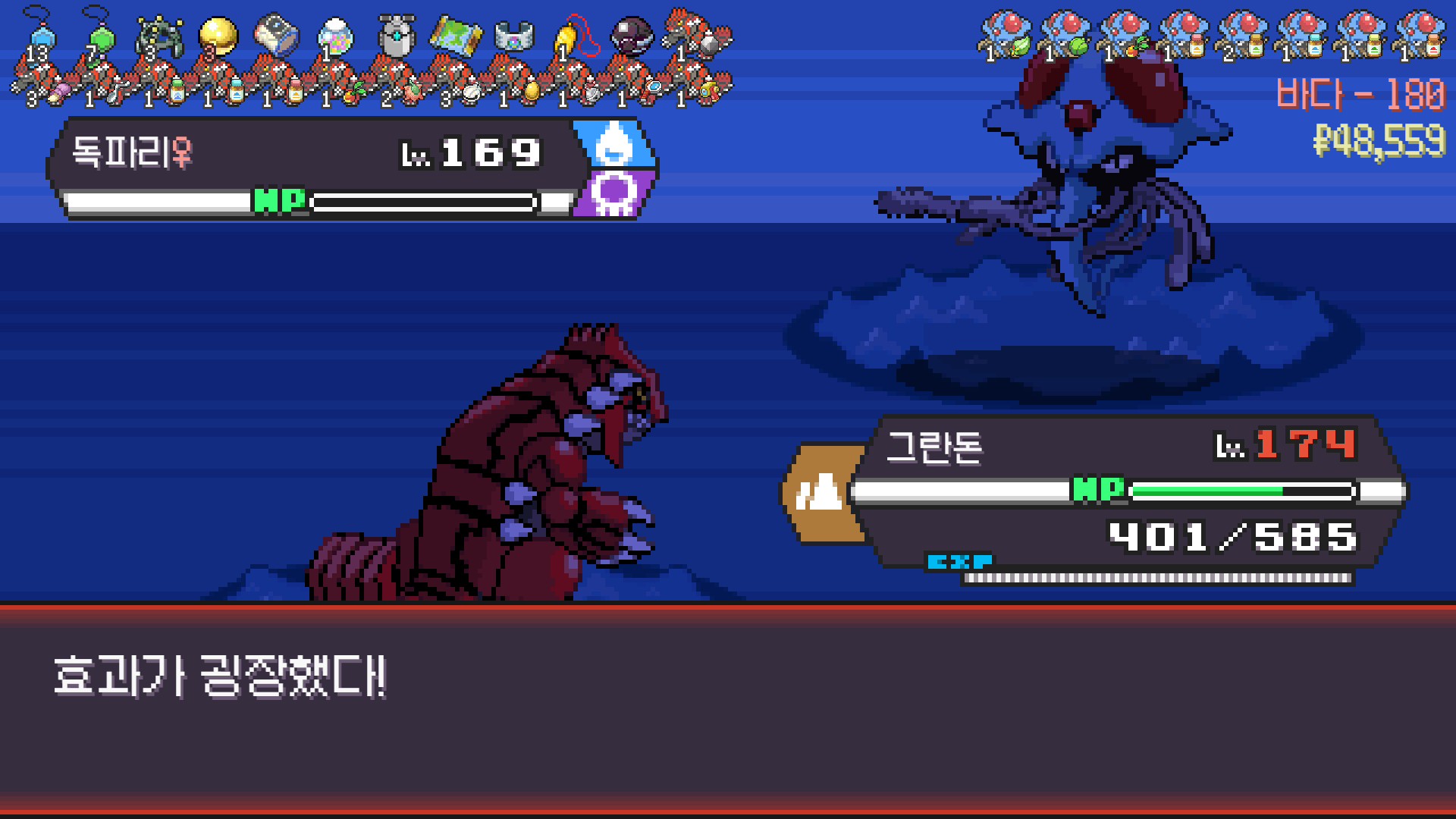 가뭄으로 물타입 약점 알빠노??? 해버리는 그란돈