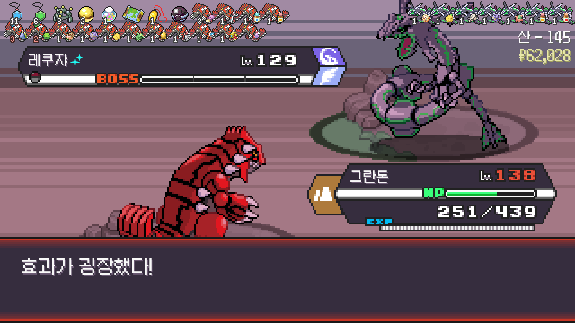 안타깝게 주홍구슬이 안 나와서 성사되지 못 한 원시그란돈 vs 메가레쿠쟈